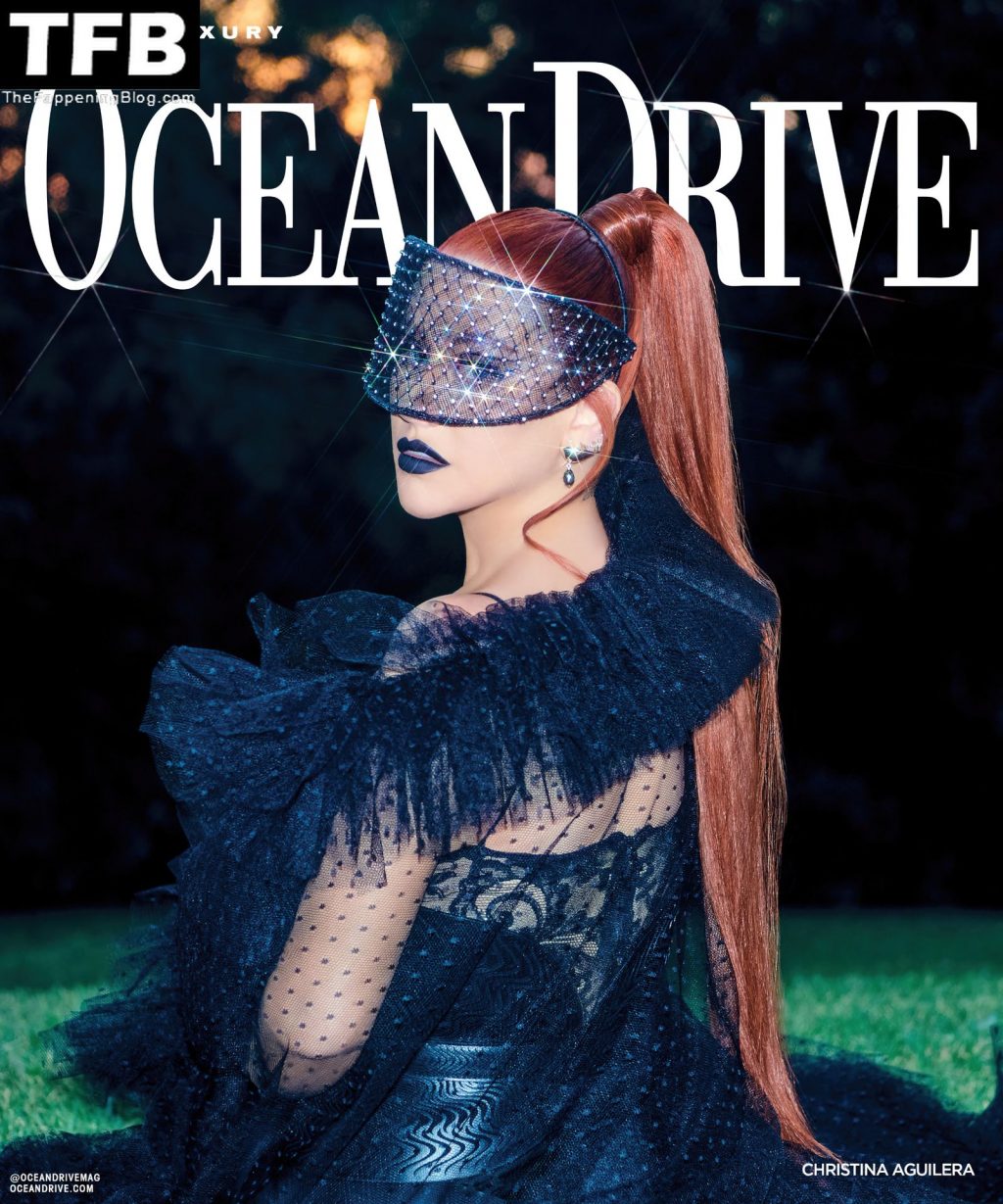 Певица Кристина Агилера позирует для главной статьи журнала Ocean Drive, демонстрируя своё красивое декольте в новой сексуальной фотосессии (2022).