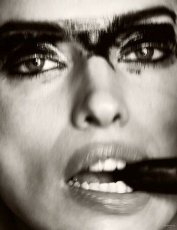 Одна из самых впечатляющих фотографий изображает Кристину Агилеру почти обнажённой, с руками, прикрывающими грудь.
