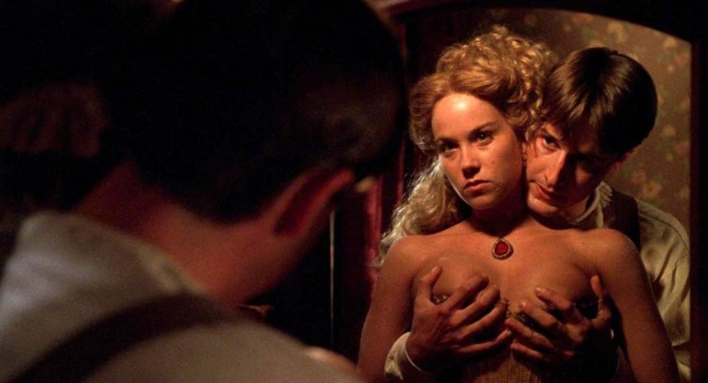 Смотрите нескрытую сексуальную сцену Кристины Эпплгейт из фильма «Дикий Билл» (1995), где вы можете увидеть ещё молодую актрису в корсете, который делал её грудь ещё более “выразительной”. Её возлюбленный стоит за ней и держит грудь Кристины, пока они оба стоят перед зеркалом, глядя друг другу в глаза. Кристина каким-то образом избегала настоящей наготы на экране, и в 2019 году ей 47 лет.