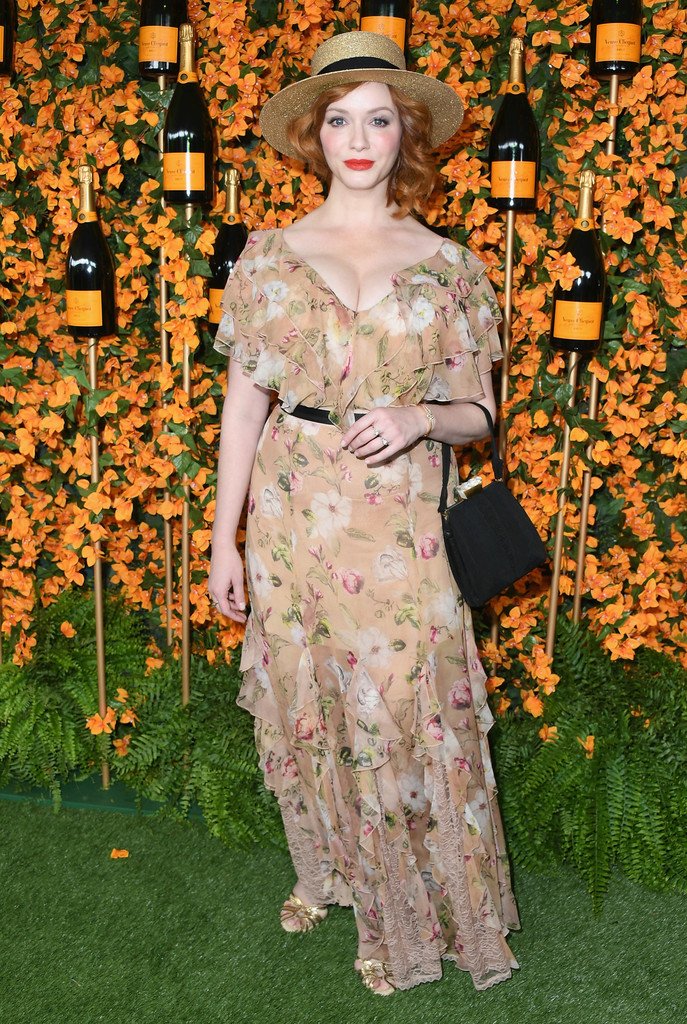 Кристина Хендрикс продемонстрировала свой знаменитый сексуальный декольте на Veuve Clicquot Polo Classic 2018 в Лос-Анджелесе, 06.10.2018. Кристина Рене Хендрикс — 43-летняя американская актриса кино и телевидения, известная по роли Джоан Холлоуэй в телесериале «Безумцы». За эту роль актриса получила три номинации на премию Эмми.