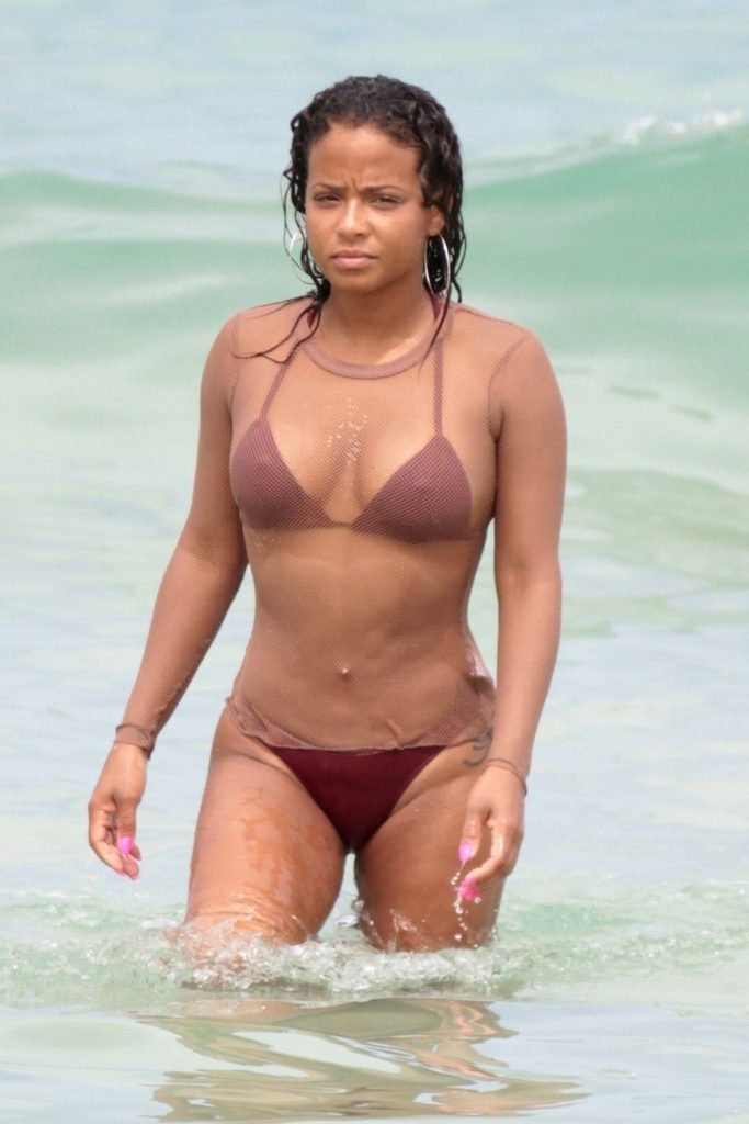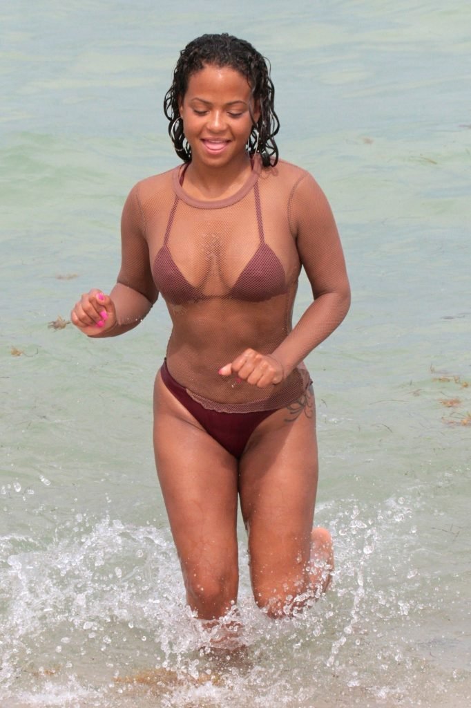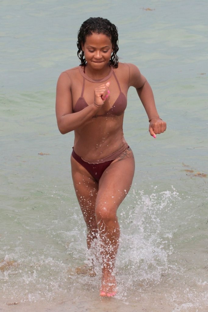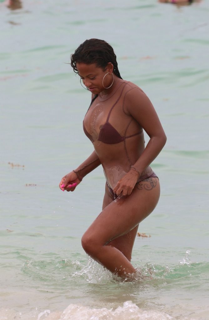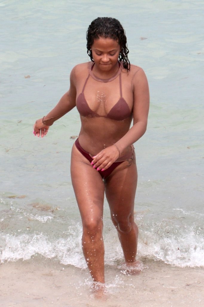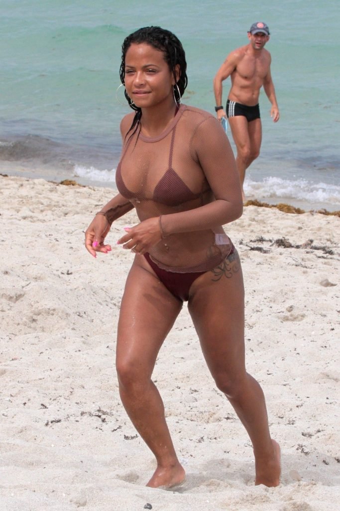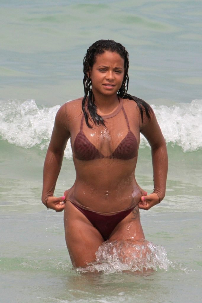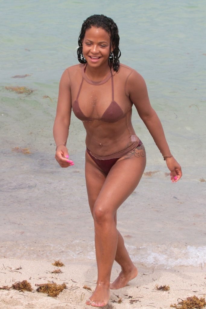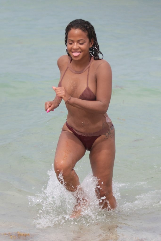 Американская певица, автор песен и актриса Кристина Милиан появляется на пляже в коричневом бикини, 22.07.2017.