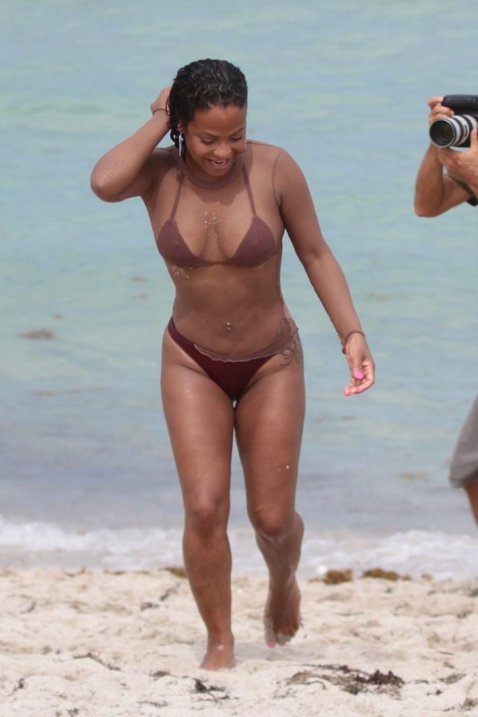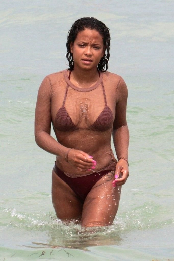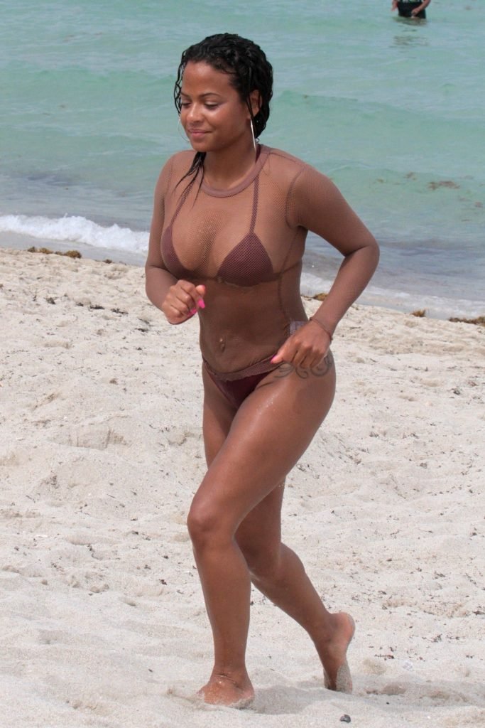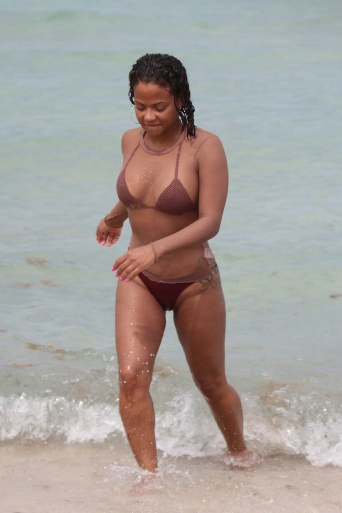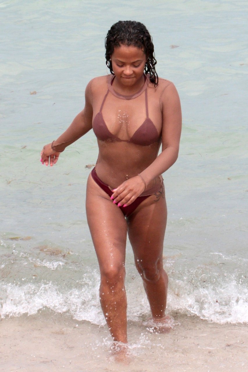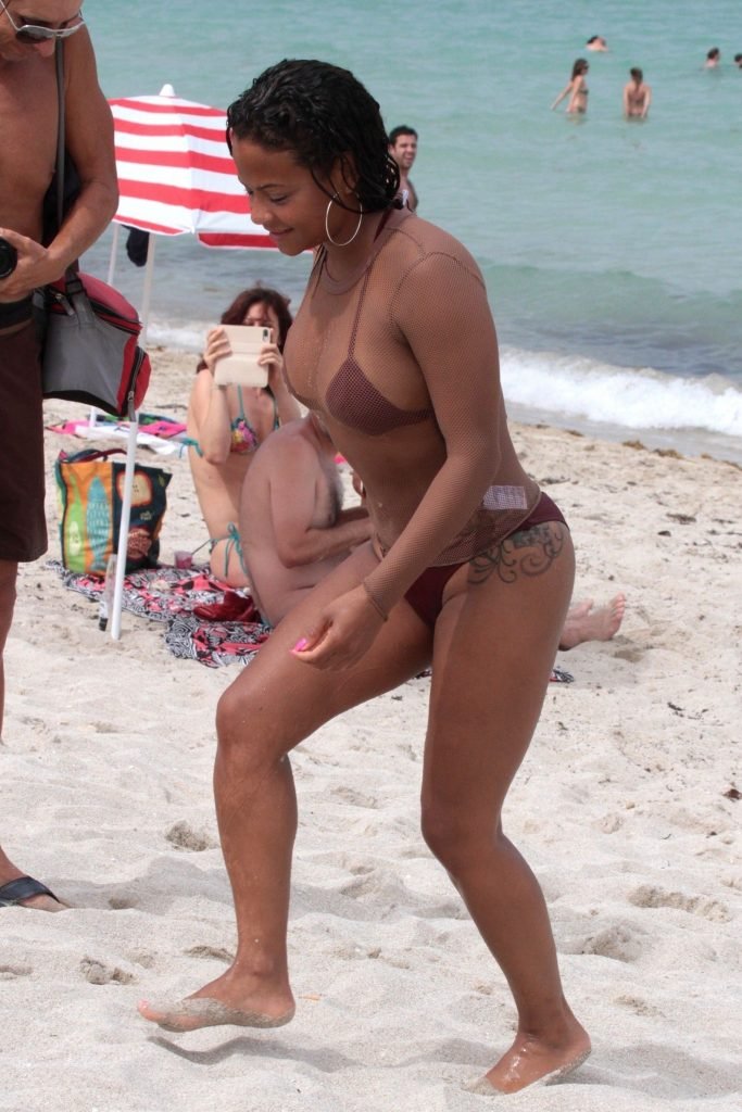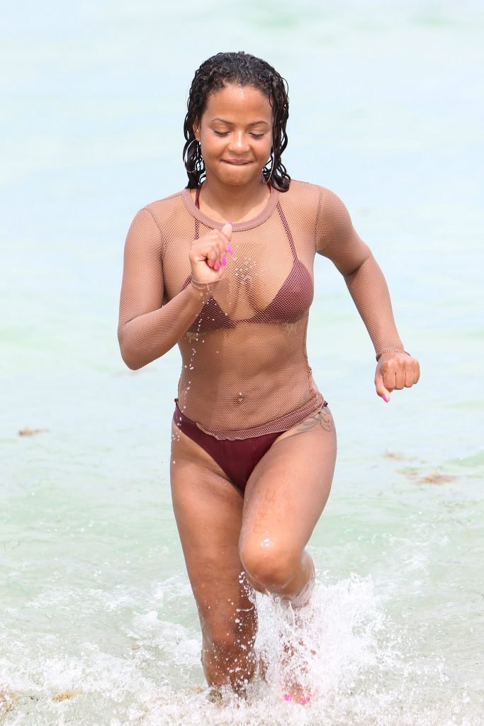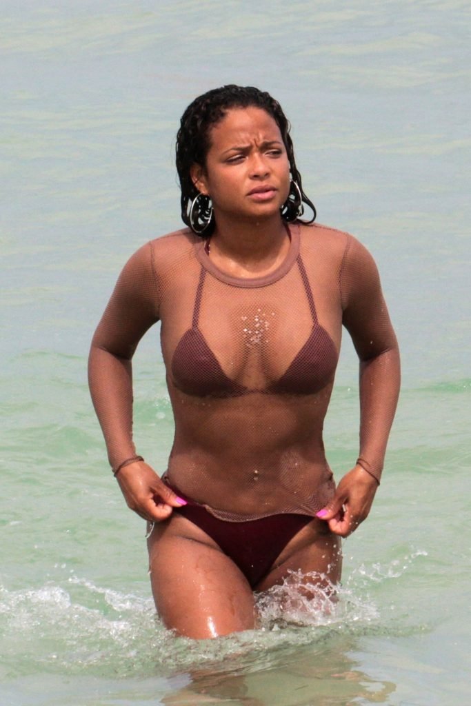 Американская певица, автор песен и актриса Кристина Милиан появляется на пляже в коричневом бикини, 22.07.2017.