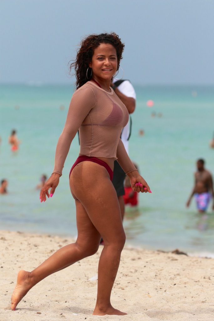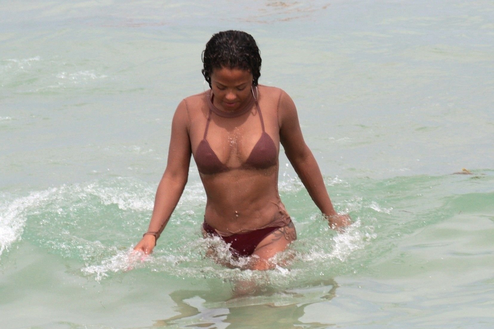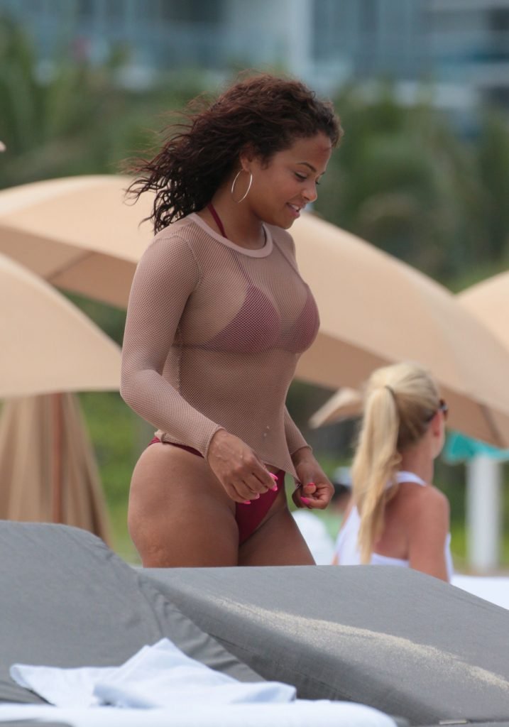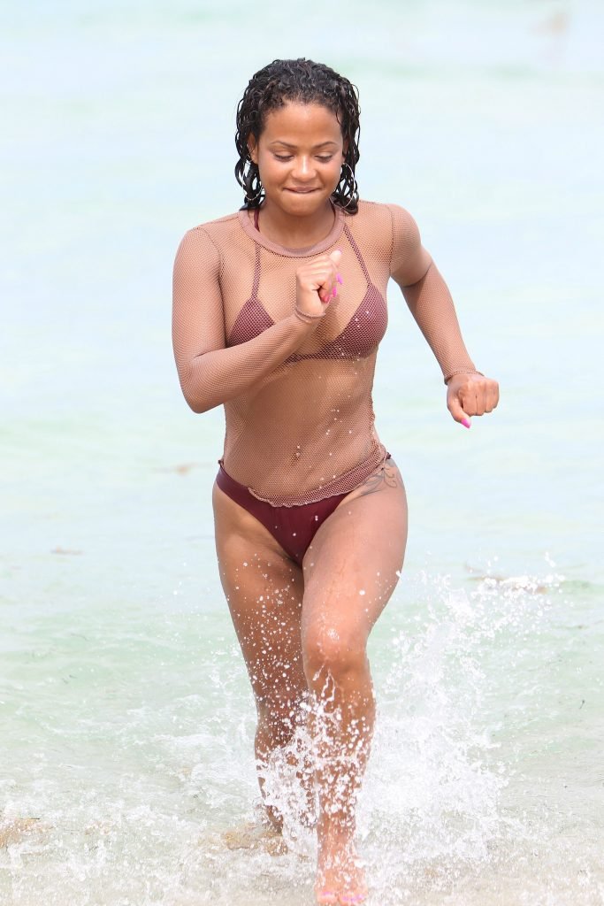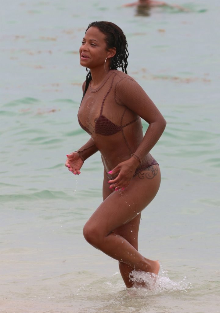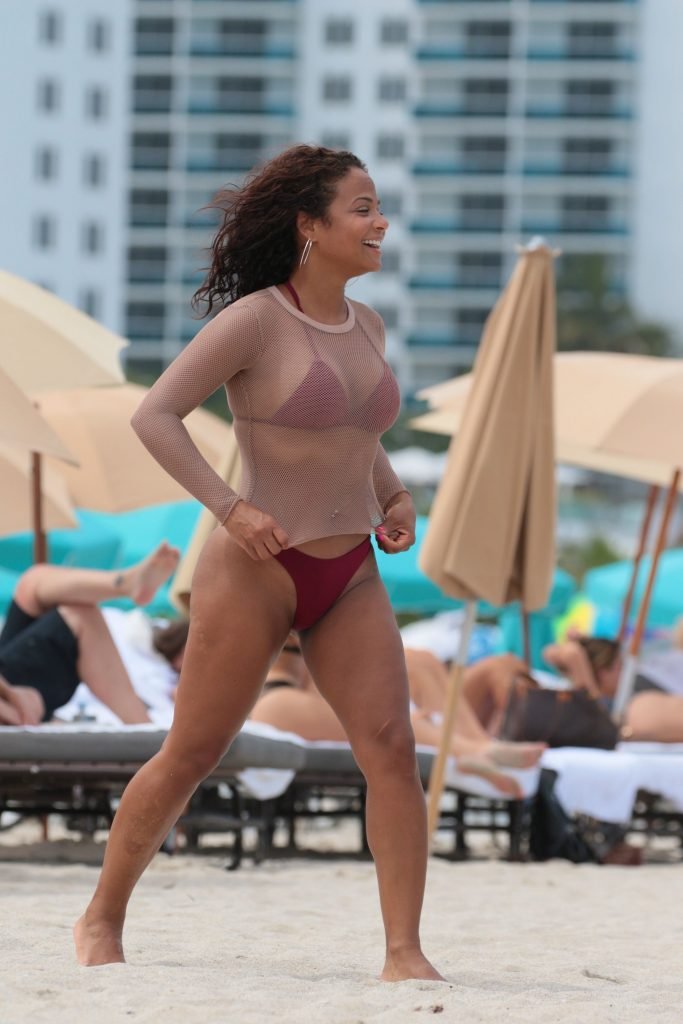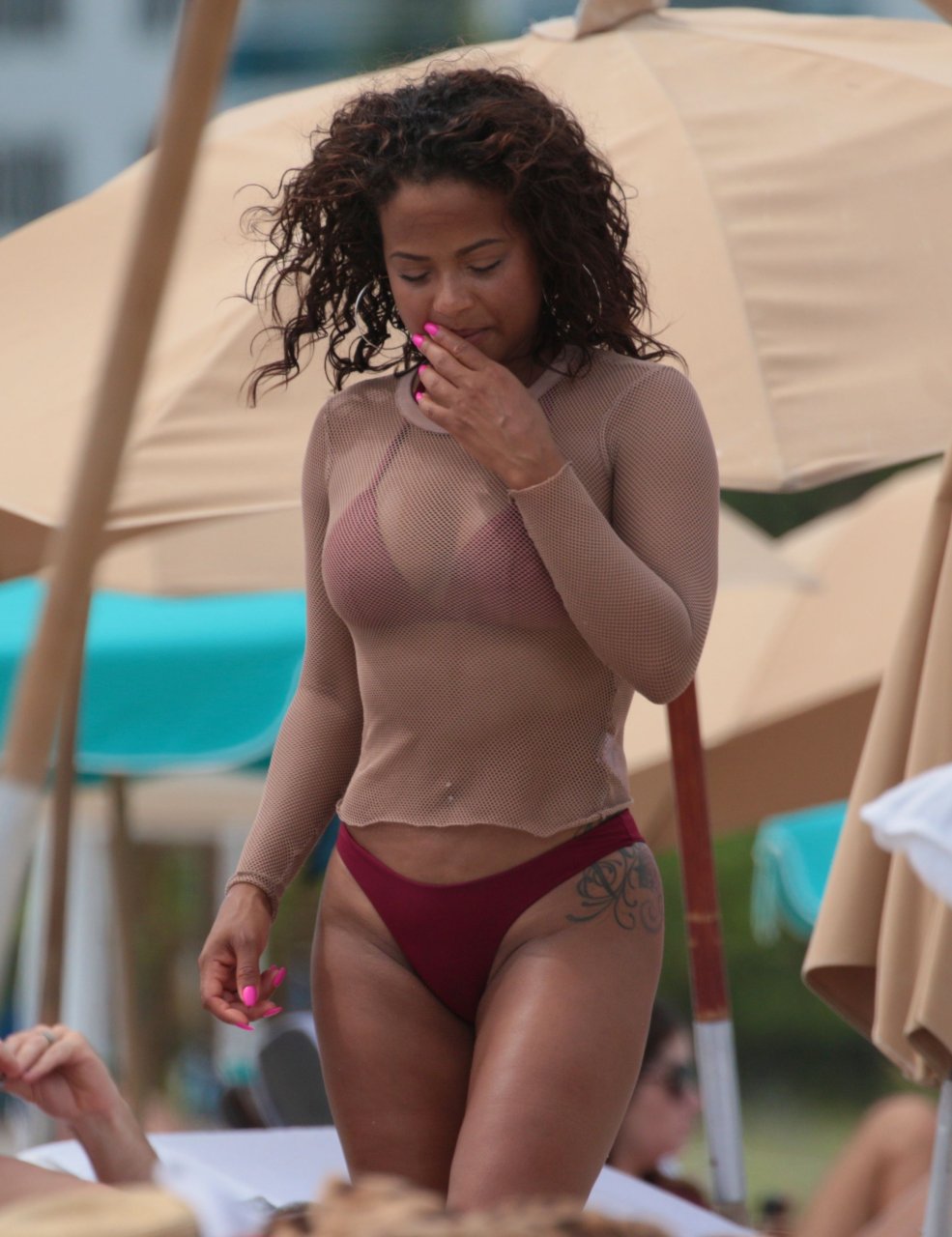 Американская певица, автор песен и актриса Кристина Милиан появляется на пляже в коричневом бикини, 22.07.2017.