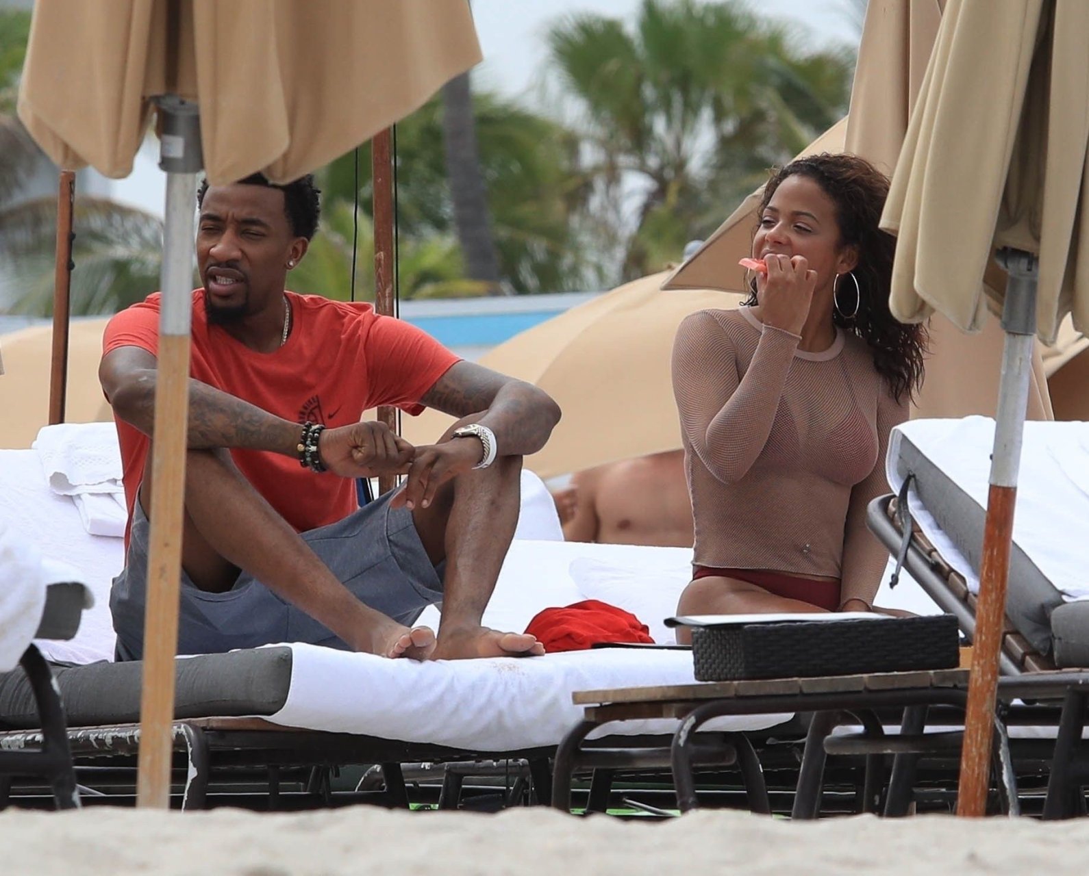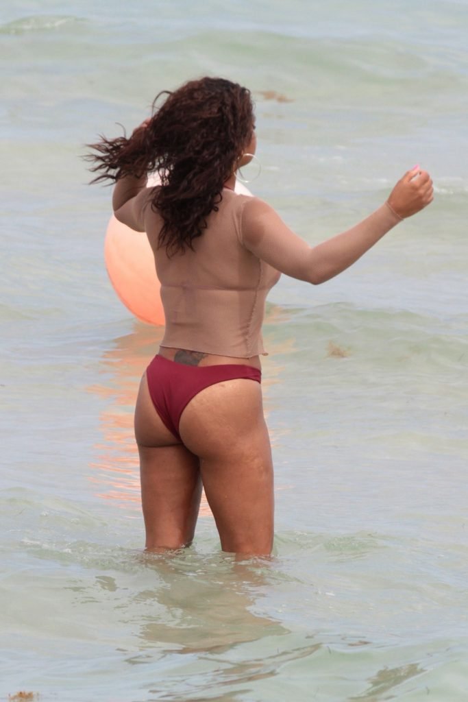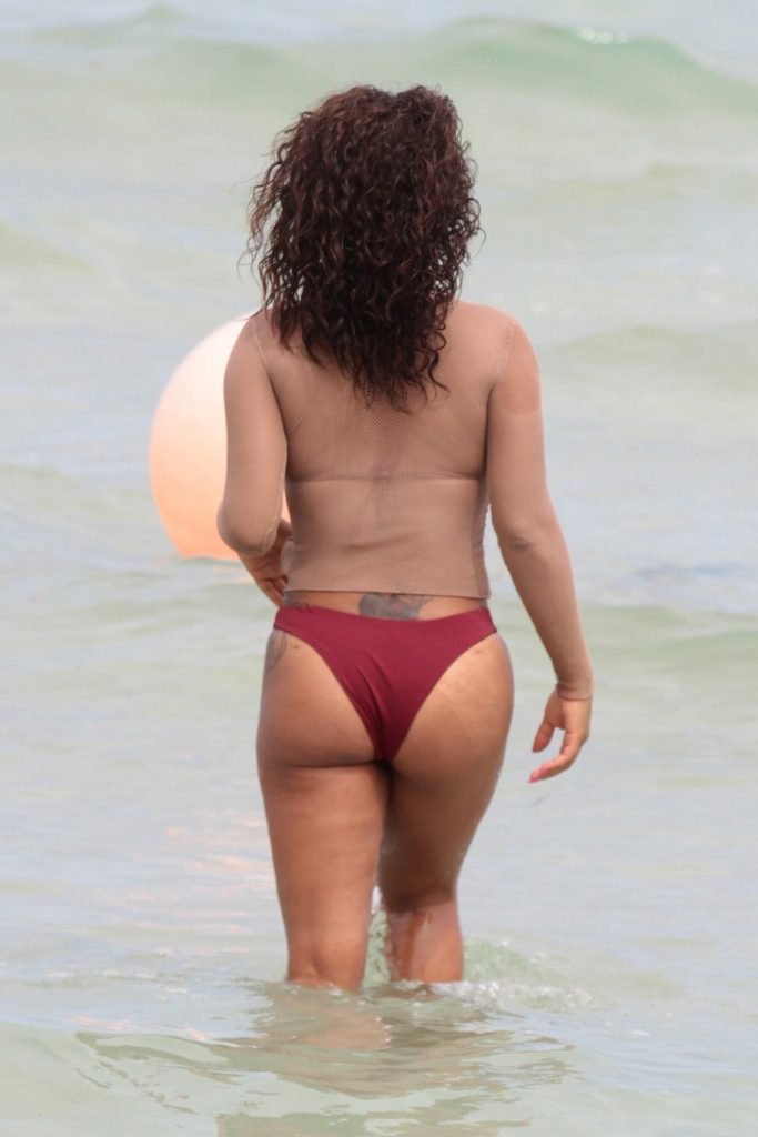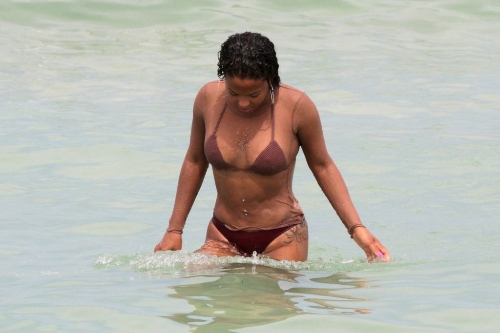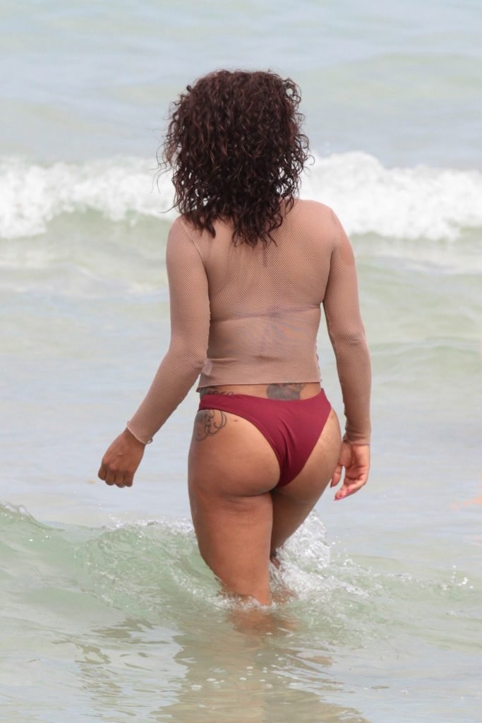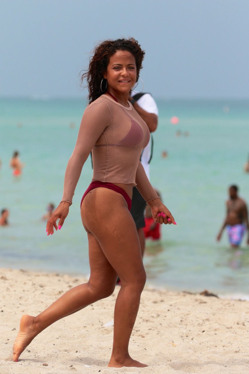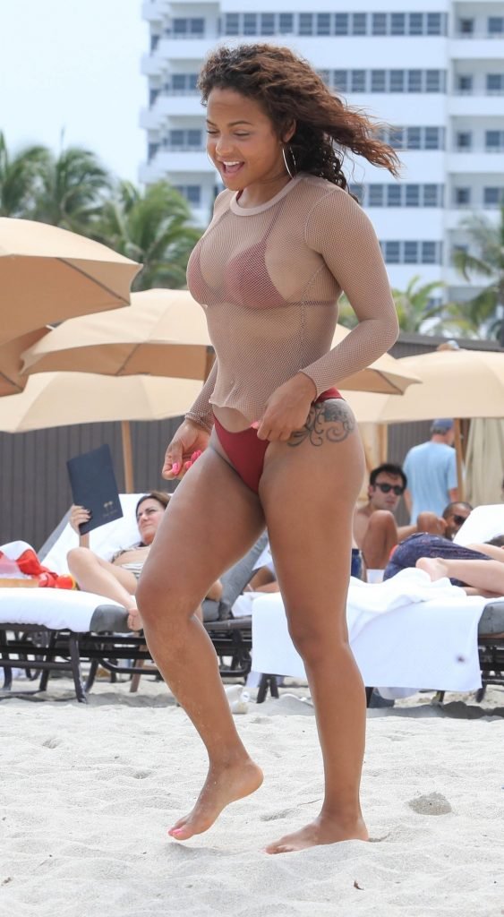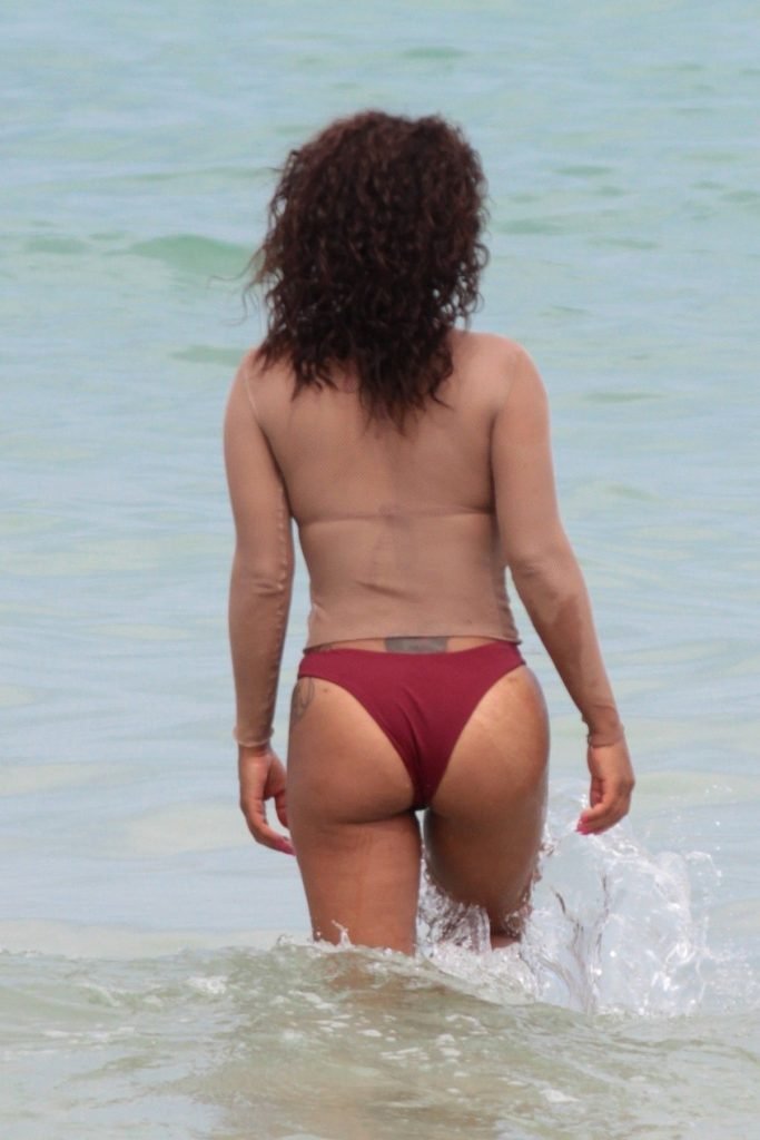 Американская певица, автор песен и актриса Кристина Милиан появляется на пляже в коричневом бикини, 22.07.2017.