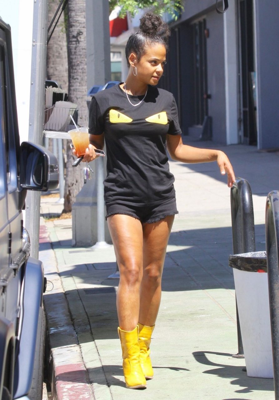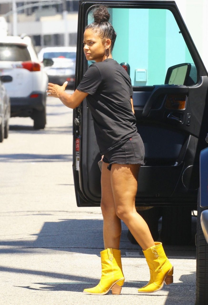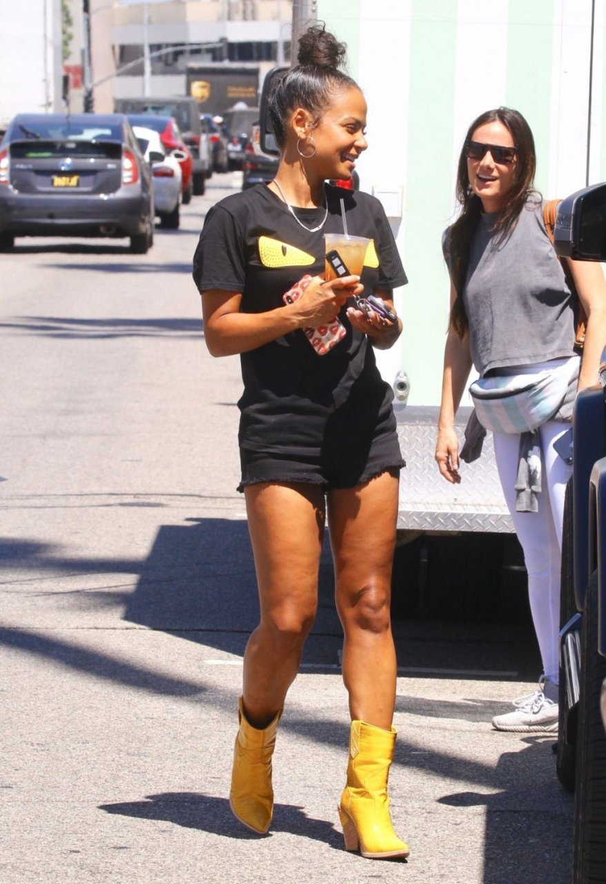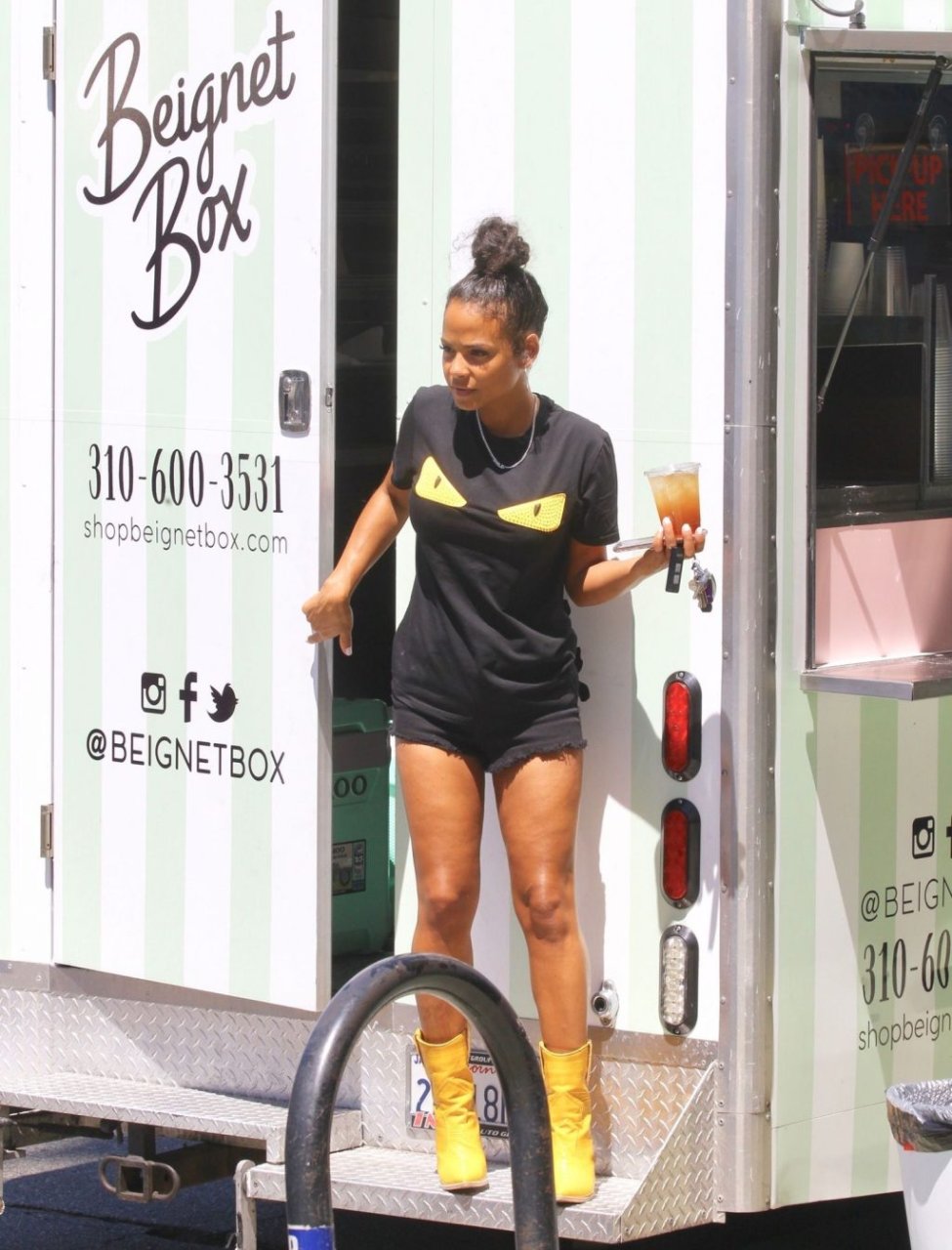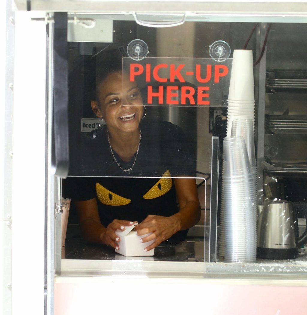 Длинноногая Кристина Милиан, которая ждет ребенка от бойфренда Мэтта Покоры, помогает клиентам у своего фудтрака Beignet Box в Студио-Сити, 01.08.2019.