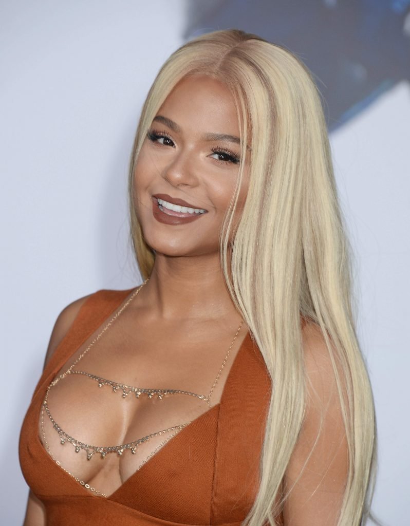 Мне не нравится блондинка; ей больше идет тёмный цвет волос, но в платье она выглядит великолепно.