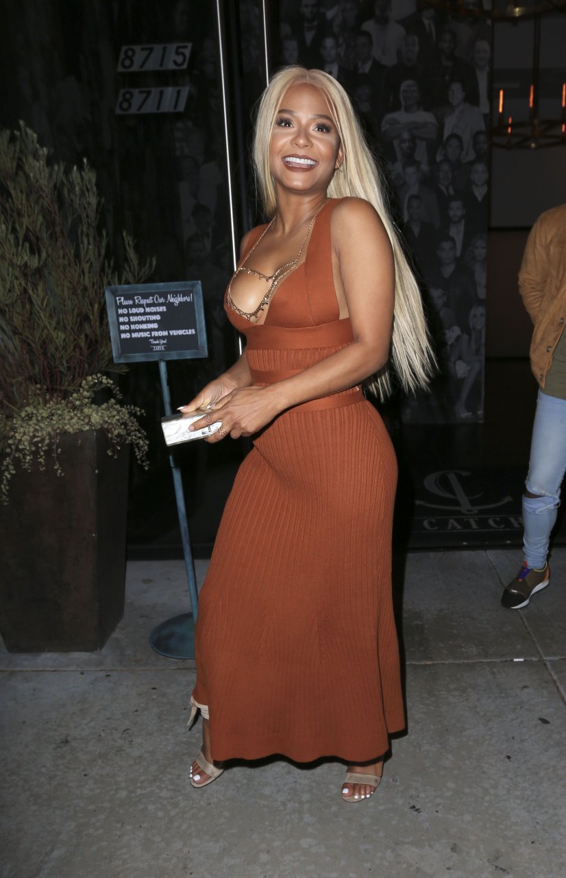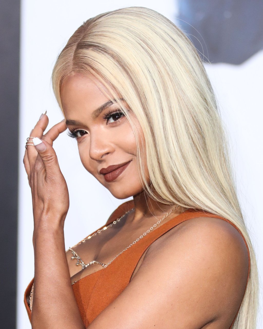 Мне не нравится блондинка; ей больше идет тёмный цвет волос, но в платье она выглядит великолепно.