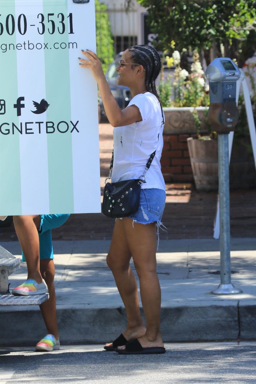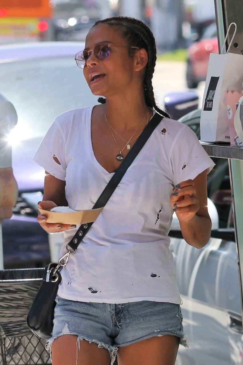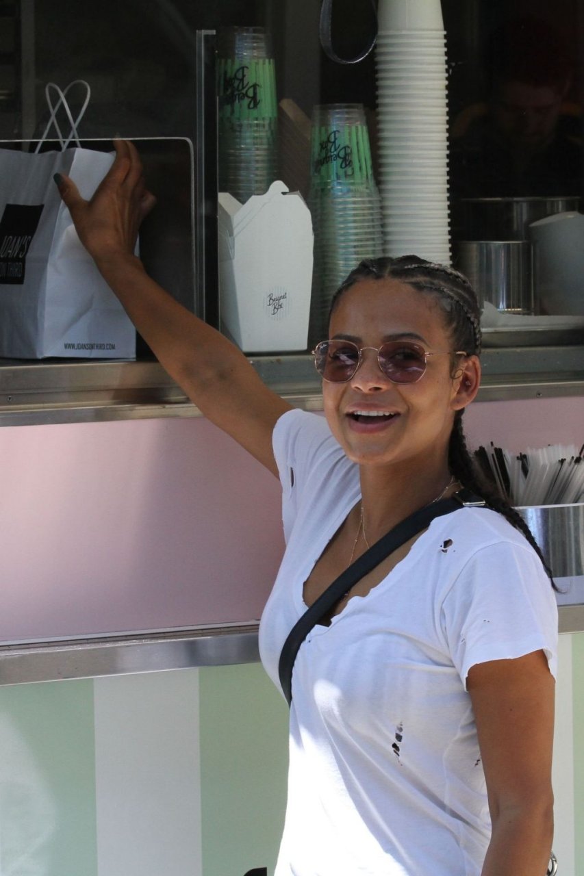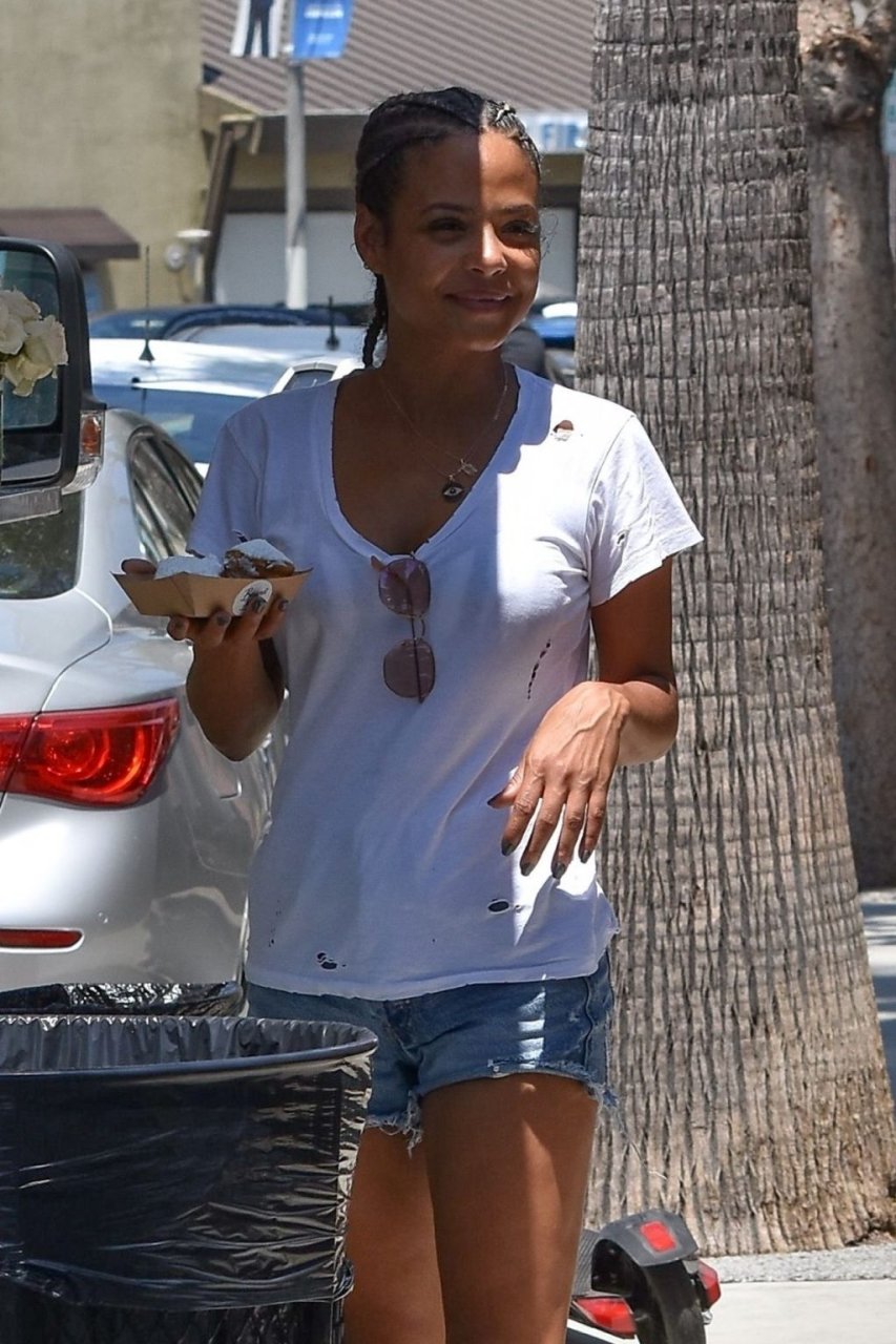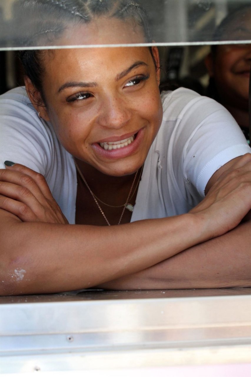 Актриса Кристина Милиан улыбается, демонстрируя свои кулинарные навыки в своем мобильном киоске Beignet Box в Студио-Сити, 12.06.2019. После обеда с дочерью в Joan’s on Third, она делится своими вкусными бенье с фотографами.