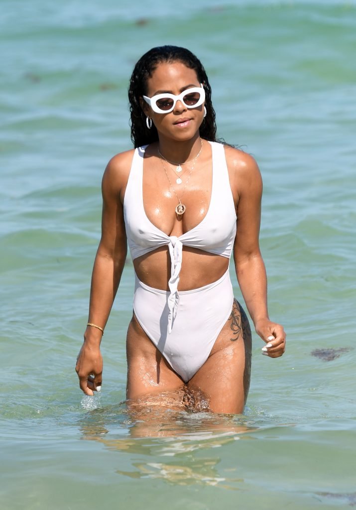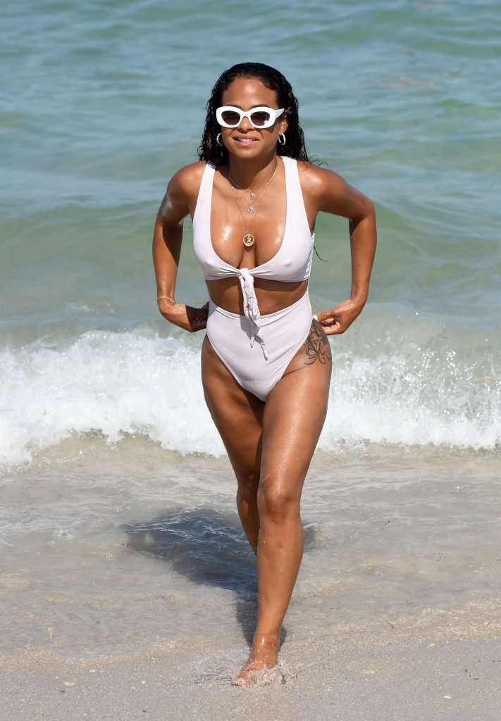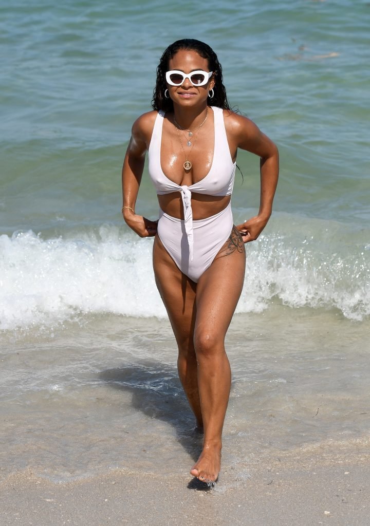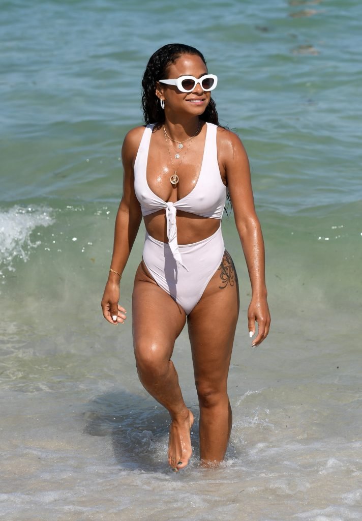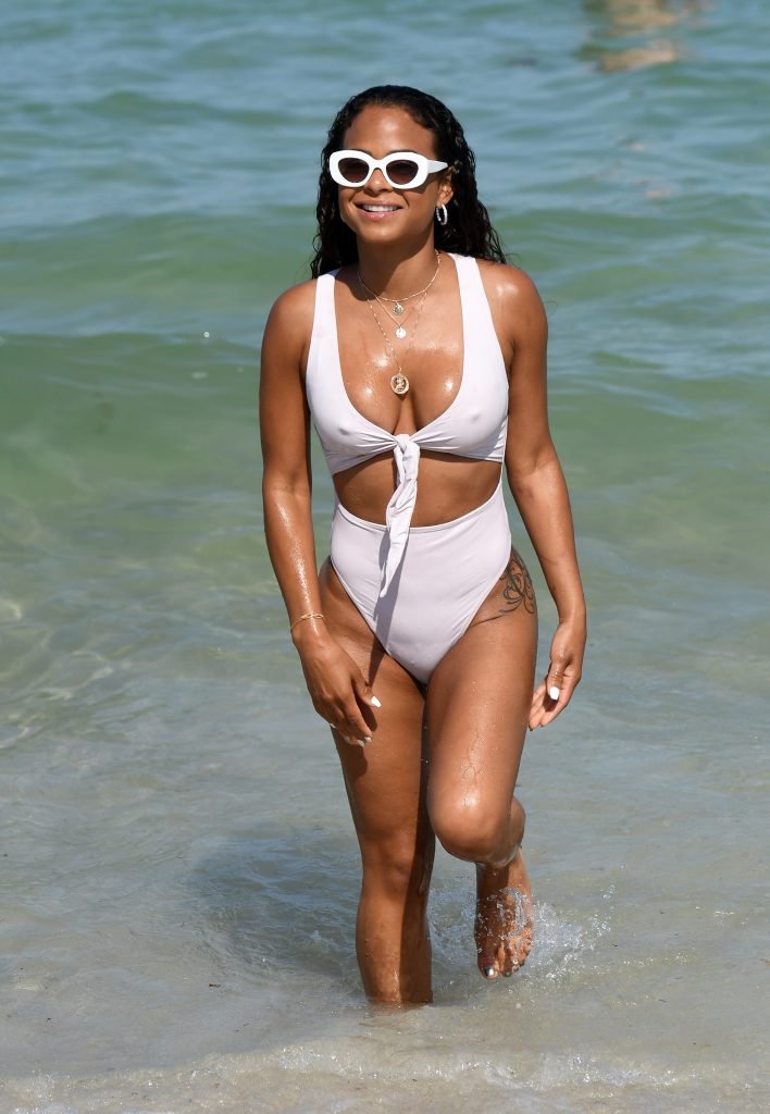 Американская певица Кристина Милиан похудела и выглядит лучше. Результат своей работы она решила показать, появившись на пляже в Майами в белом бикини, 29.04.2018. Обратите внимание на декольте Кристины и её попку!