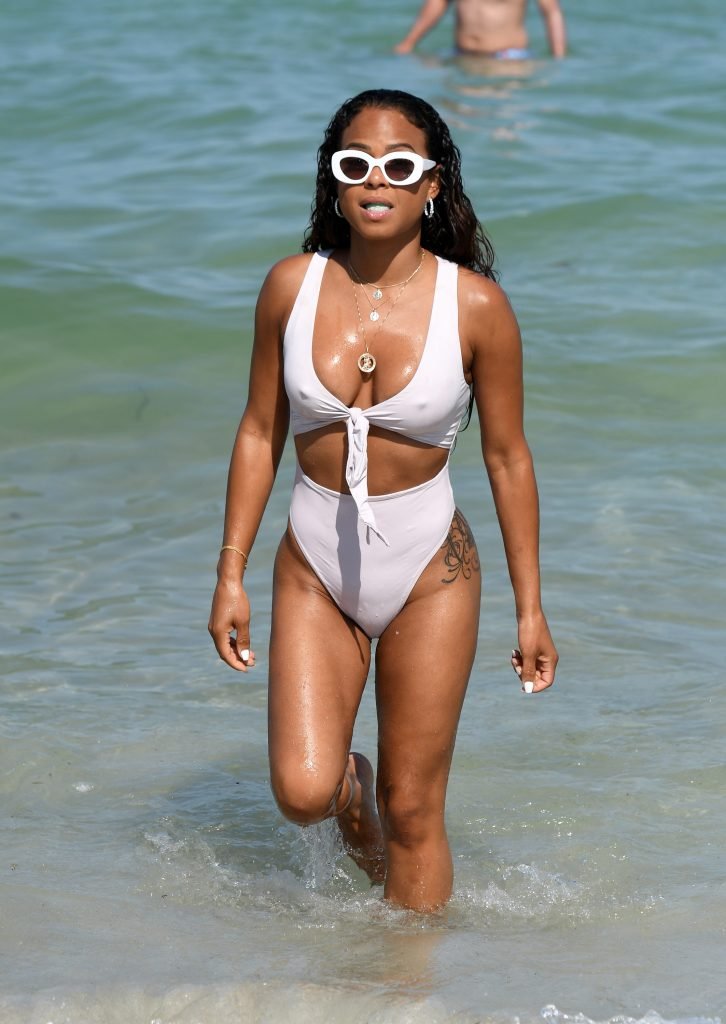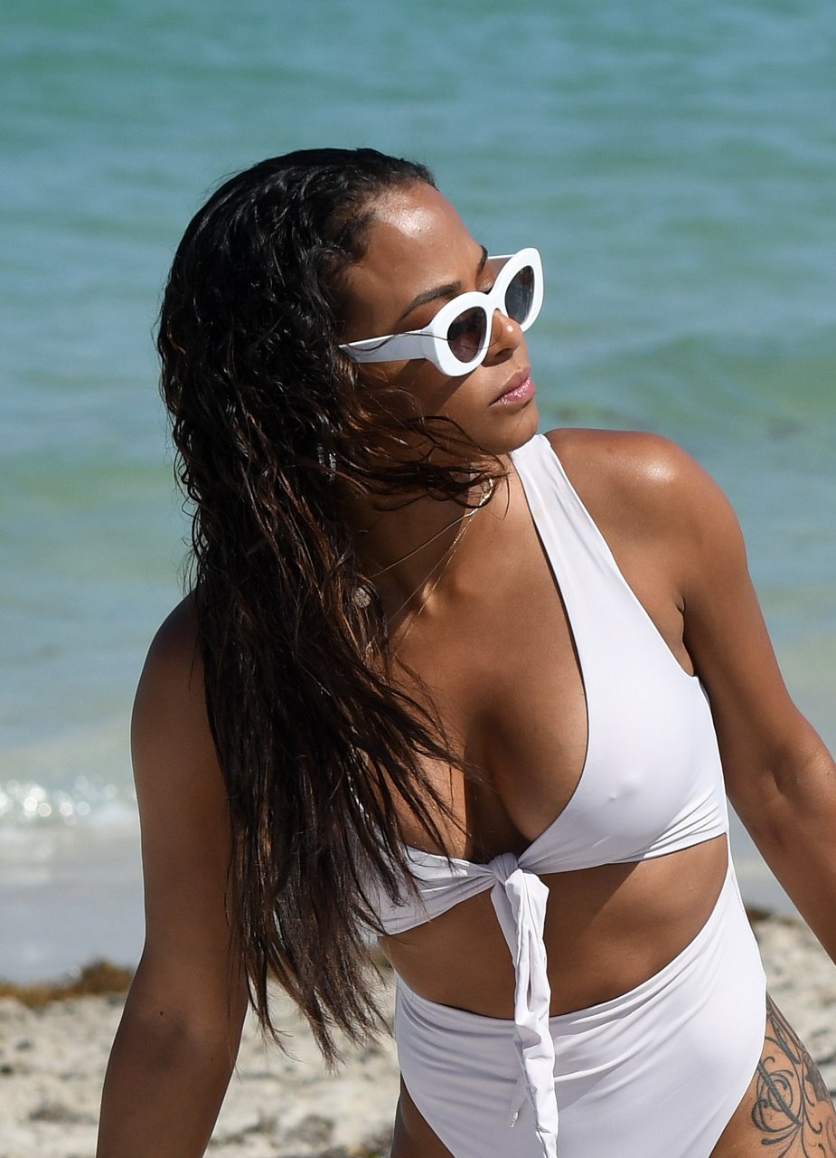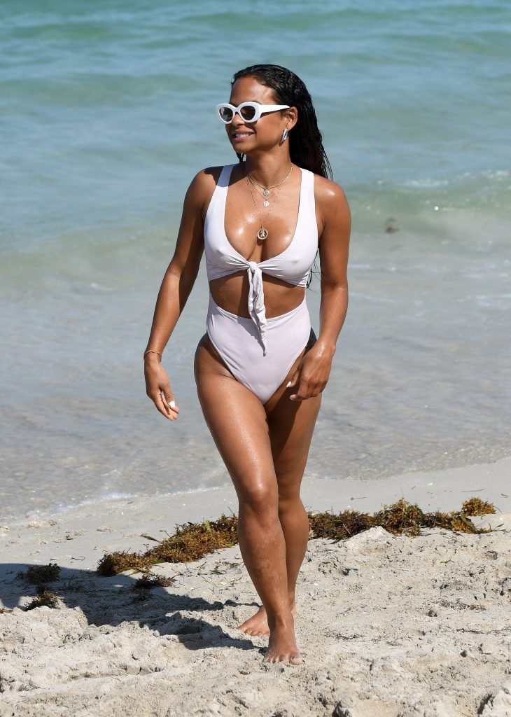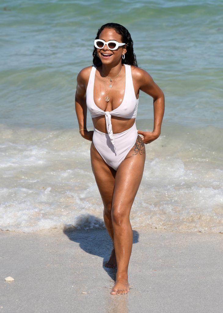 Американская певица Кристина Милиан похудела и выглядит лучше. Результат своей работы она решила показать, появившись на пляже в Майами в белом бикини, 29.04.2018. Обратите внимание на декольте Кристины и её попку!