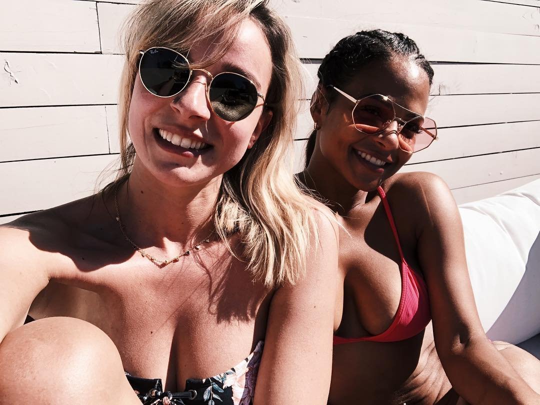 Кристина Милиан делает селфи в розовом бикини, наслаждаясь солнечным днем с друзьями в Лос-Анджелесе, Калифорния – Instagram, 29.03.2018. Кристина Милиан — американская актриса (Гриффины). Возраст – 36.