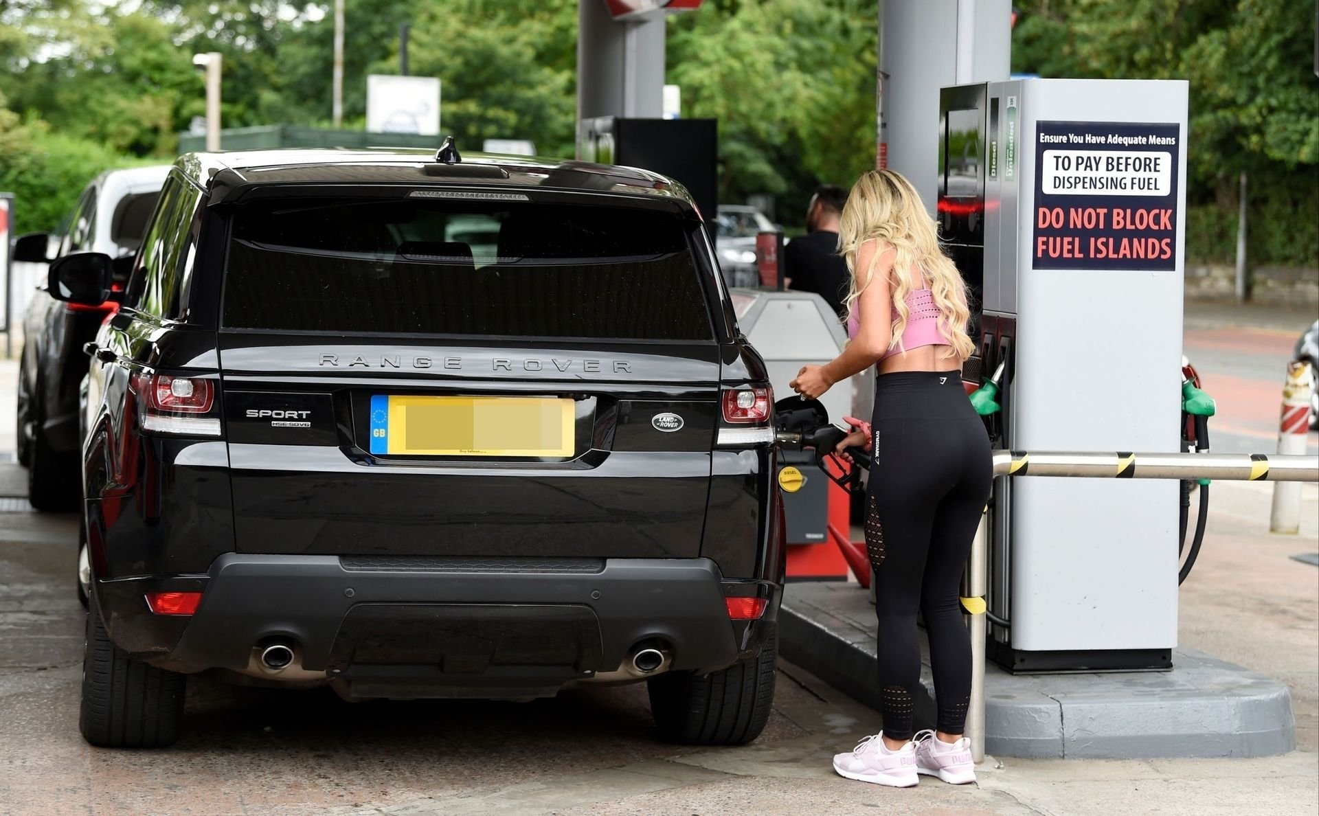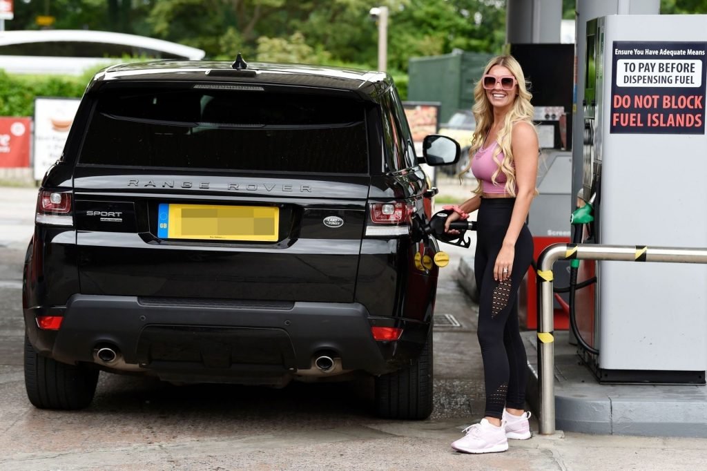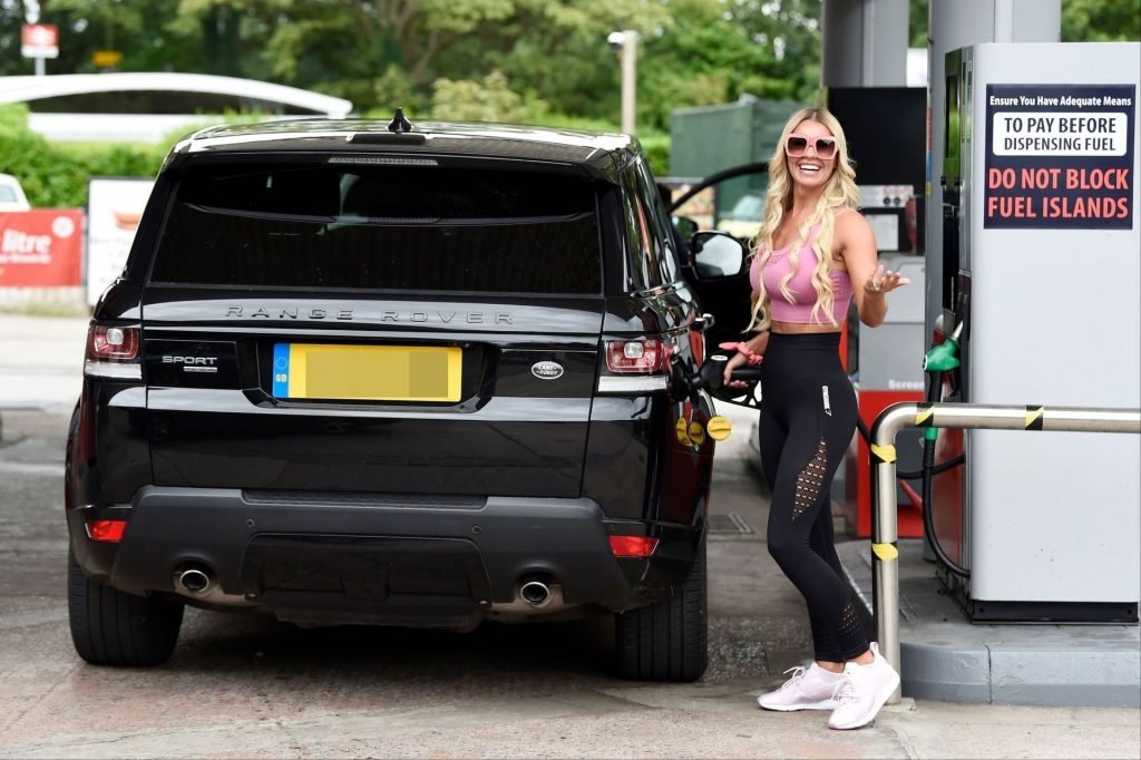 Жена Пэдди МакГуиннесса, Кристин МакГуиннесс, выглядит спортивно в спортивной одежде, когда ее сфотографировали, заправляющей свой Range Rover 4X4 на местной заправке в Олдерли Эдж, Чешир, 18.07.2019.