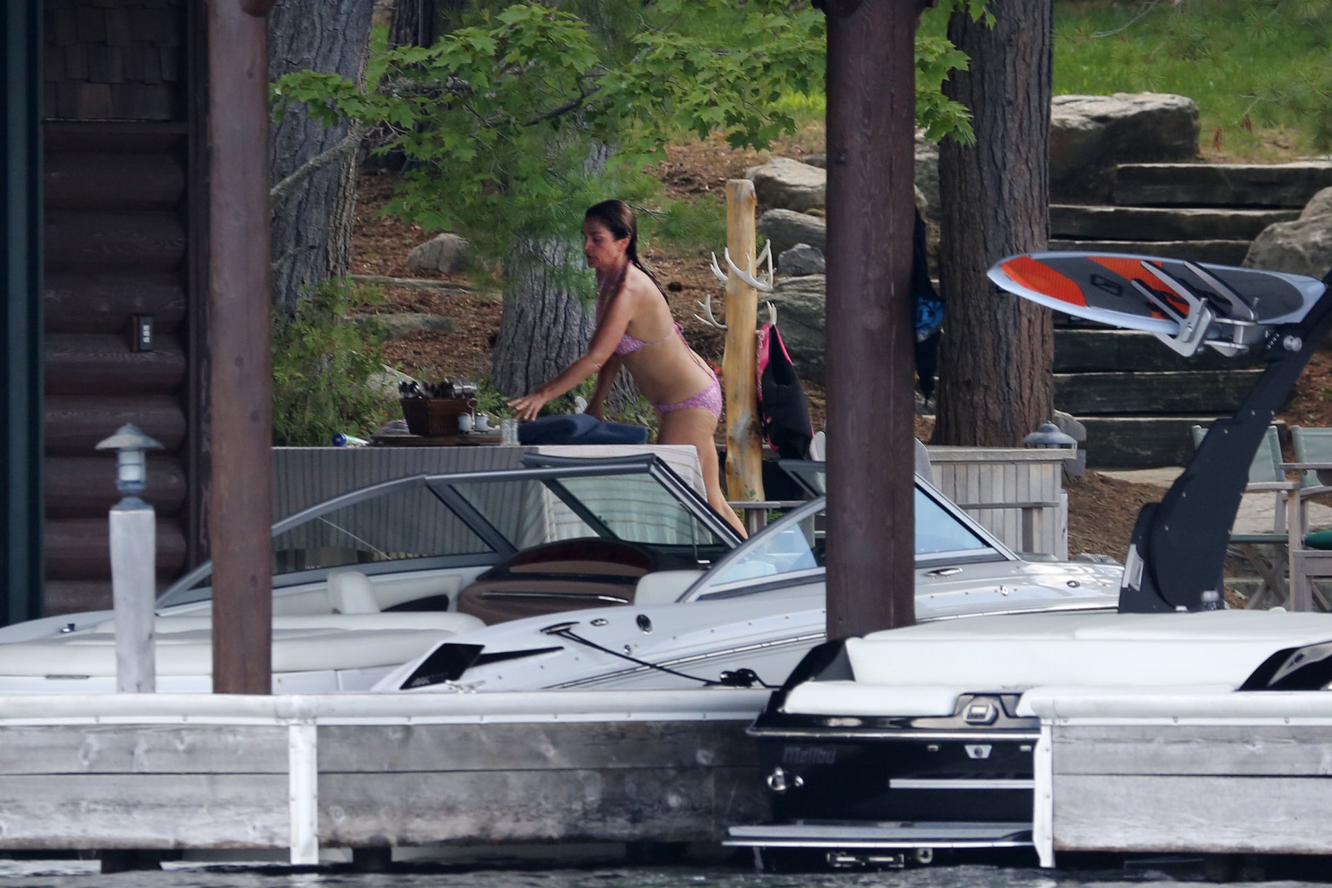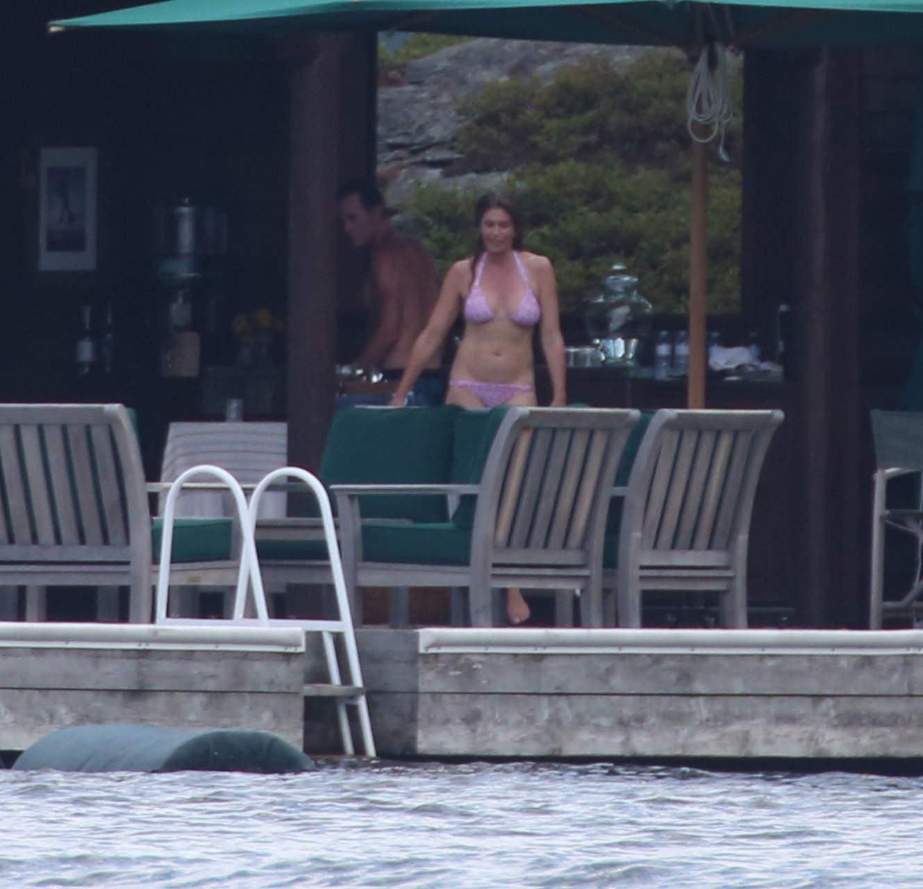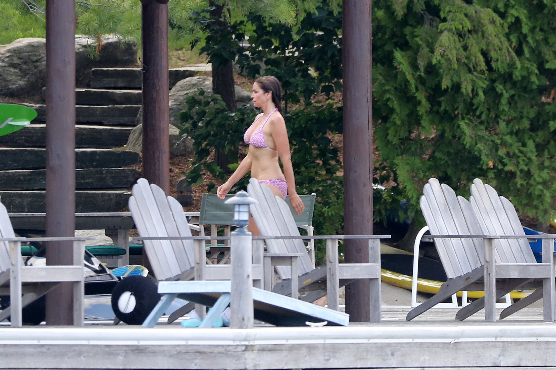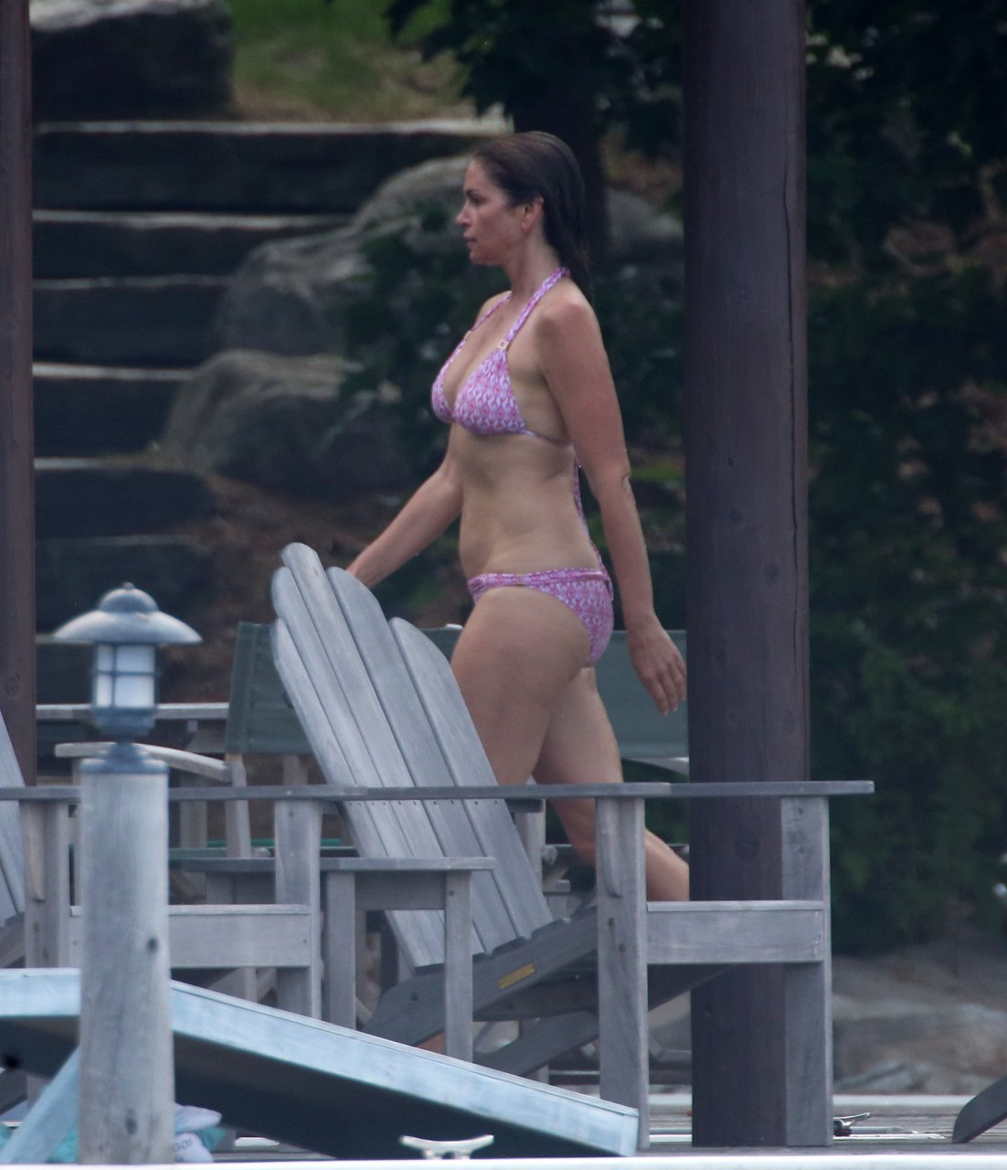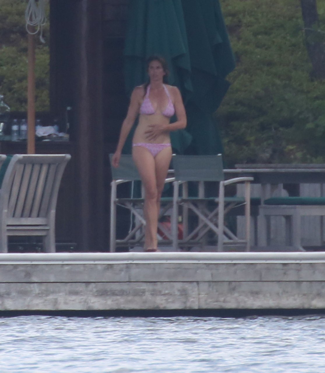 Модель Синди Кроуфорд (52) была замечена в своем загородном доме в Маскоке, Канада, когда она вместе с мужем Рэнди Гербером плавала поздним днем, 11.07.2018.