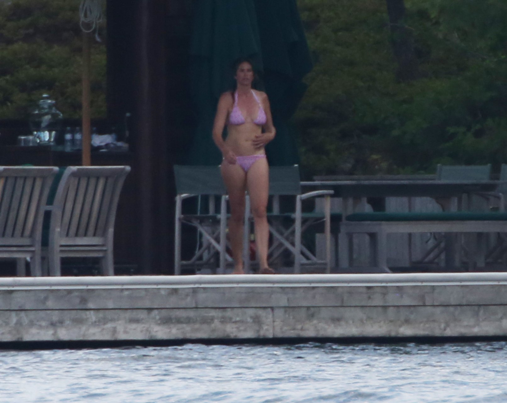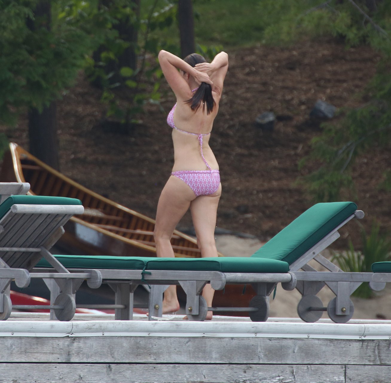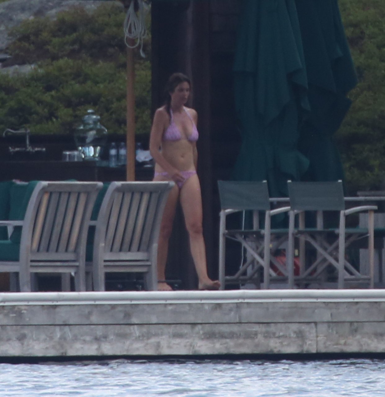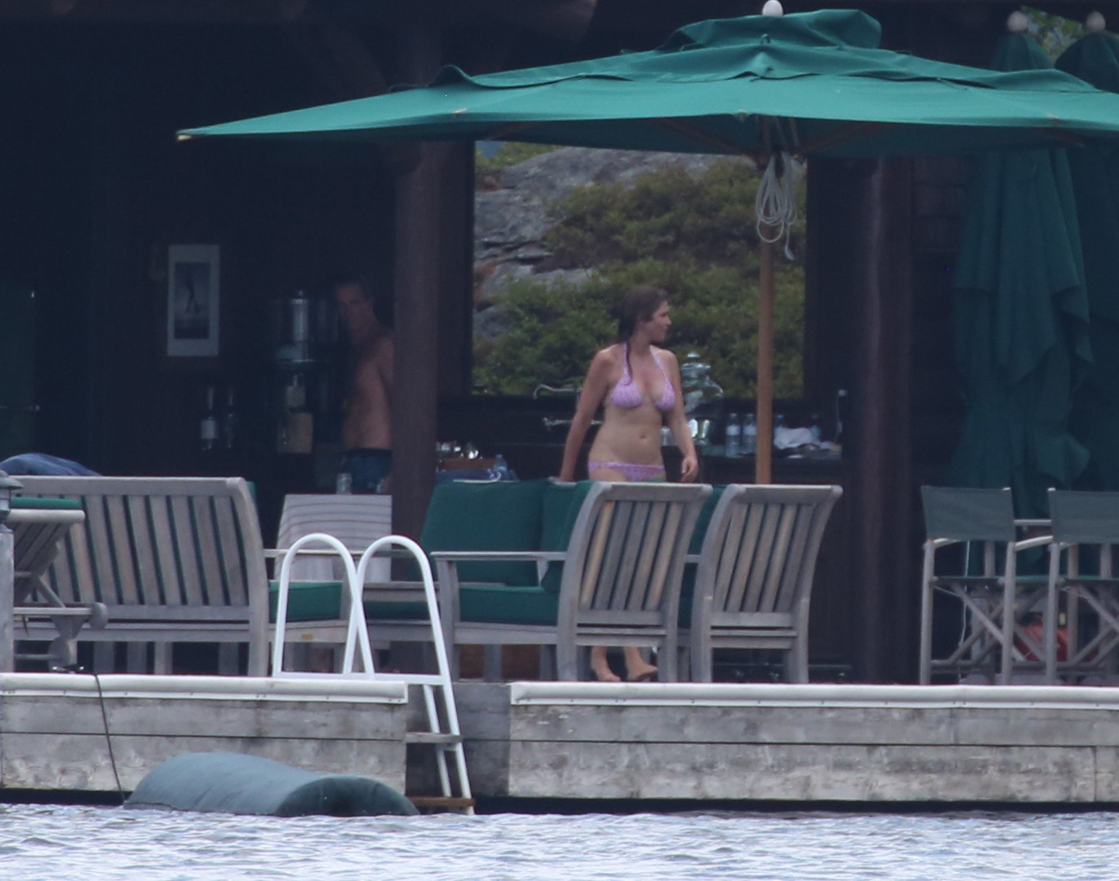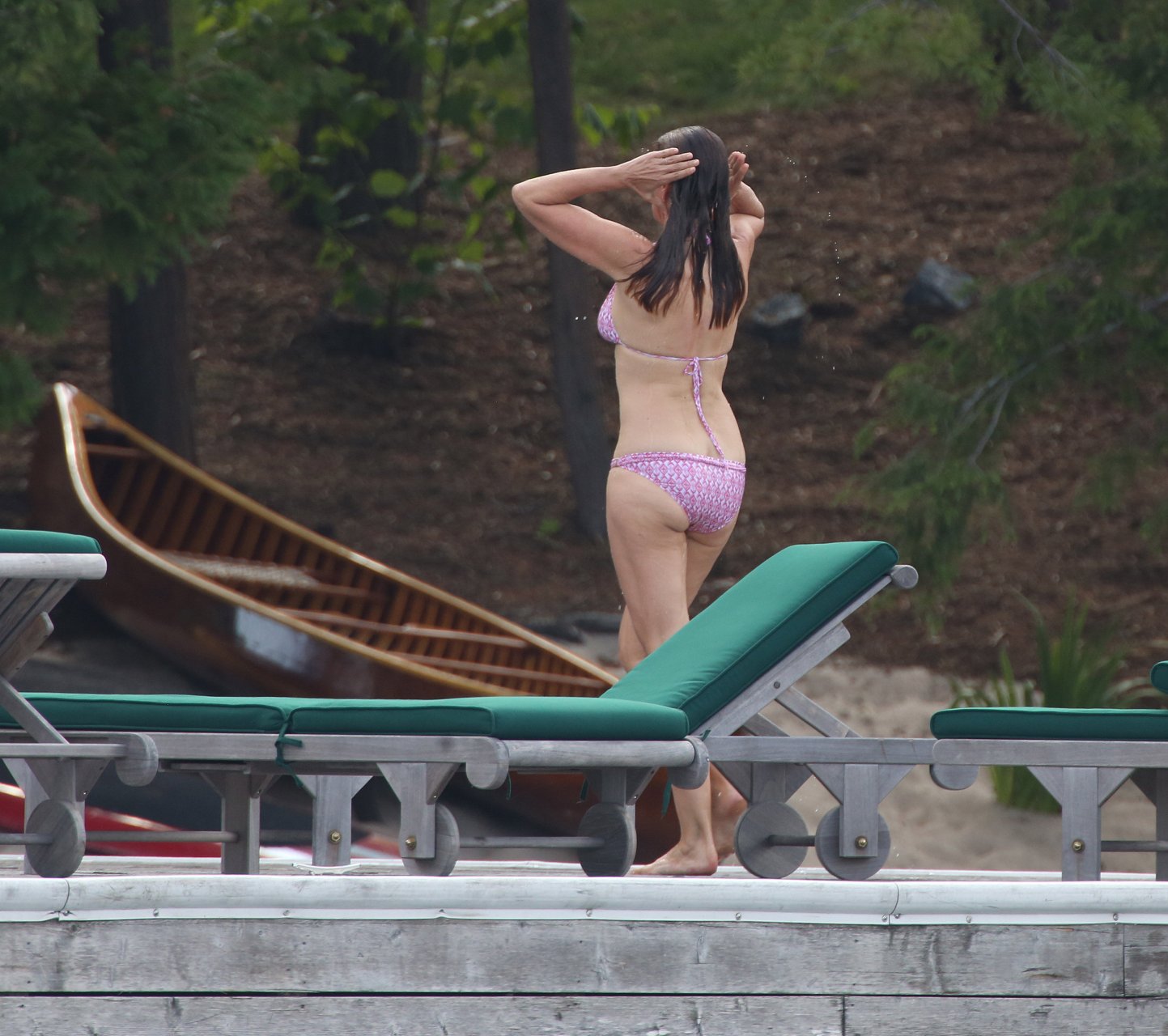 Модель Синди Кроуфорд (52) была замечена в своем загородном доме в Маскоке, Канада, когда она вместе с мужем Рэнди Гербером плавала поздним днем, 11.07.2018.