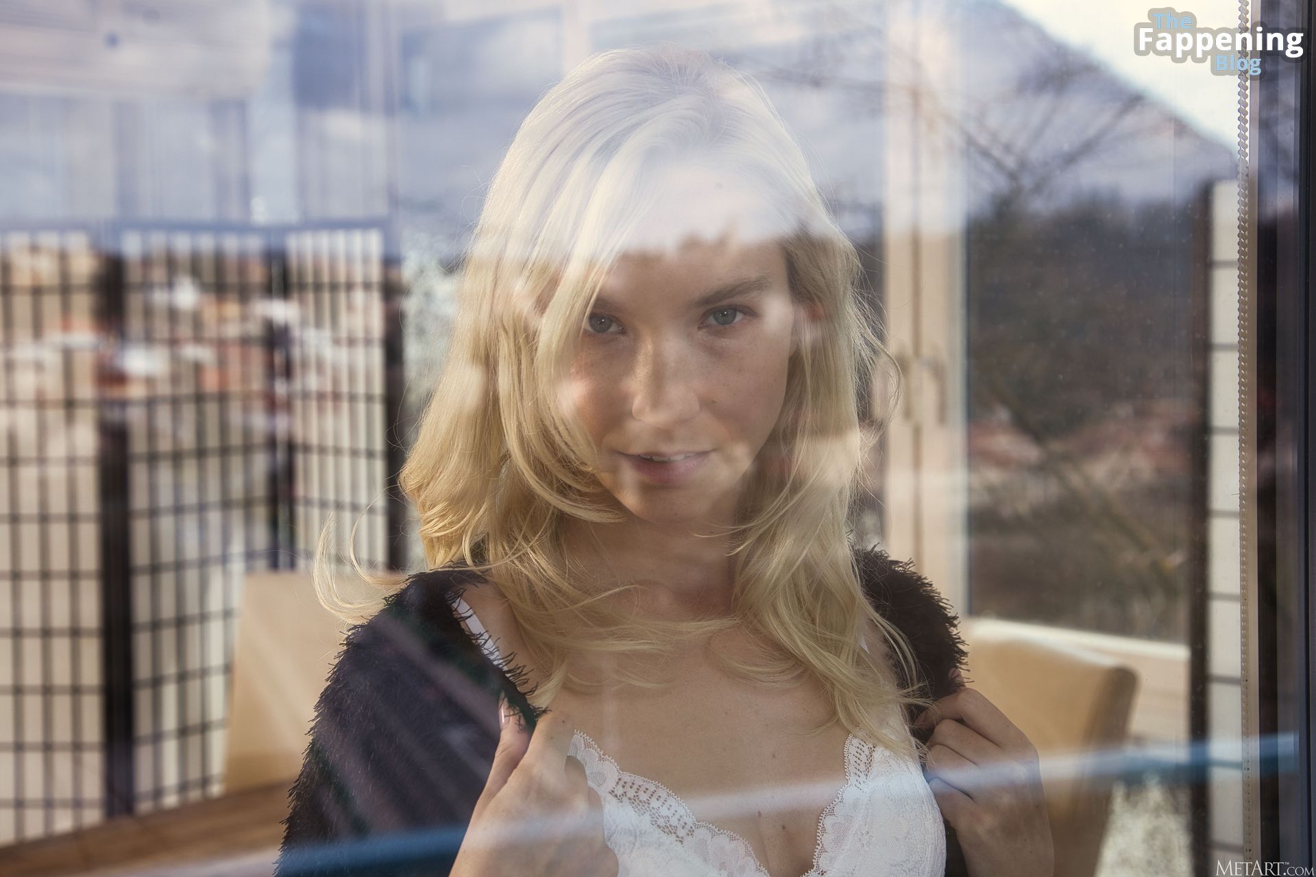 Зацени эти фото горячей блондинки Клэр Рус, которая полностью обнажается, оставшись только в чёрных чулках и демонстрируя свои прелести. На ней крутой комплект белого белья и чёрные чулки, от которых она быстро избавляется, чтобы показать своё подтянутое тело и соблазнительный образ.