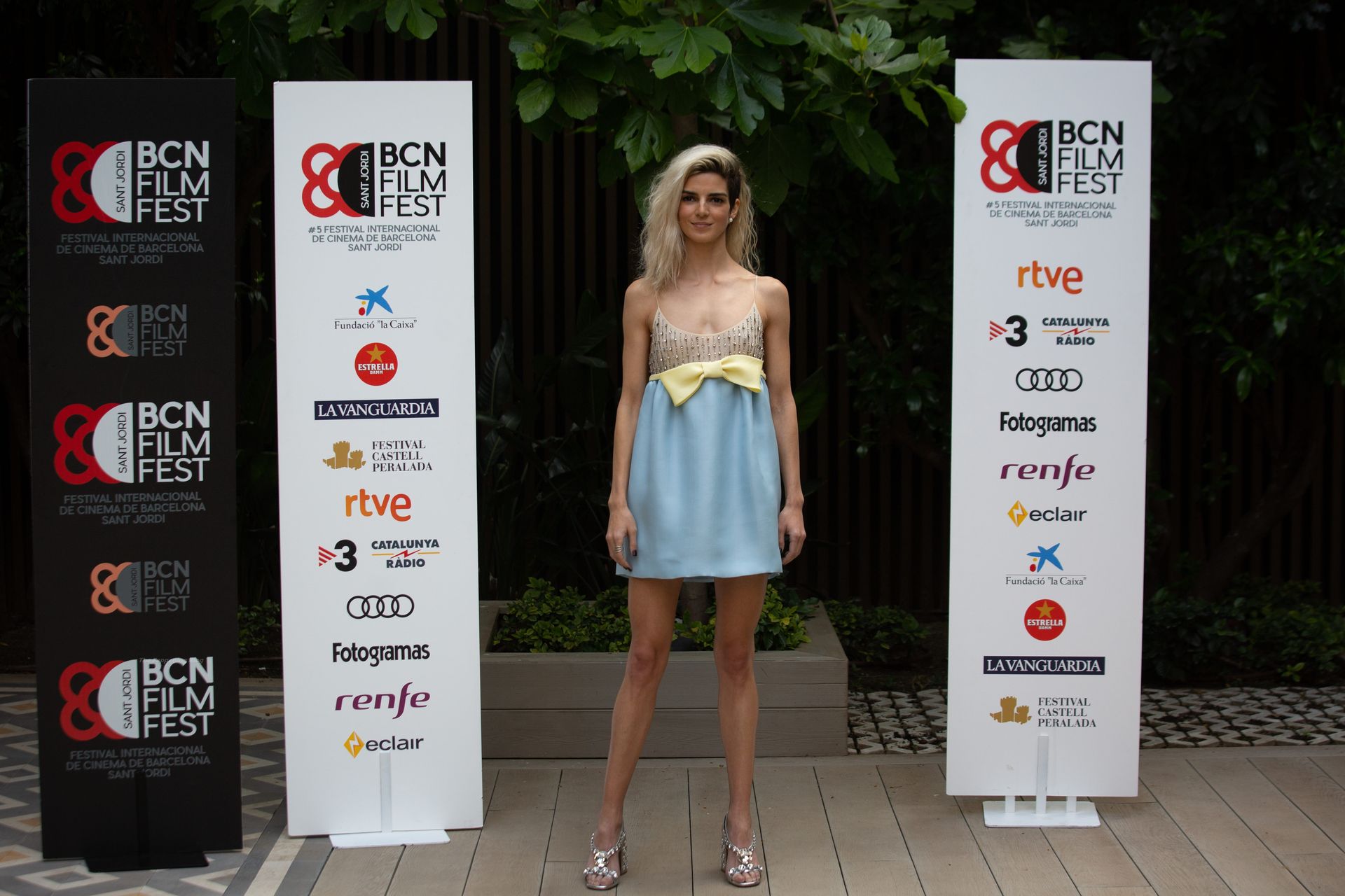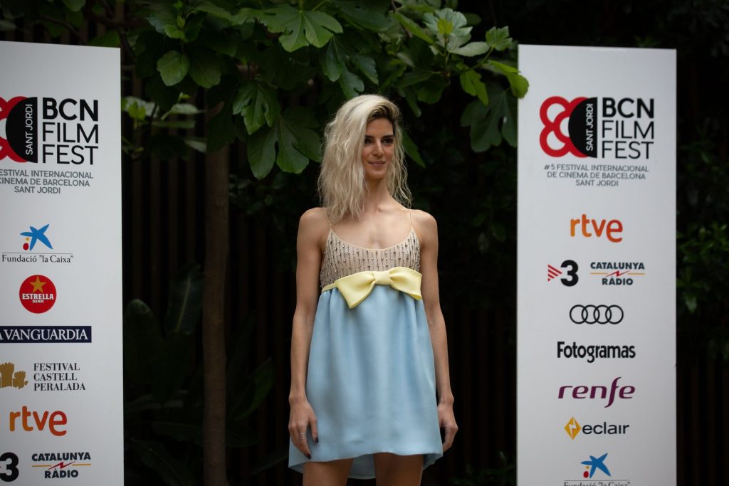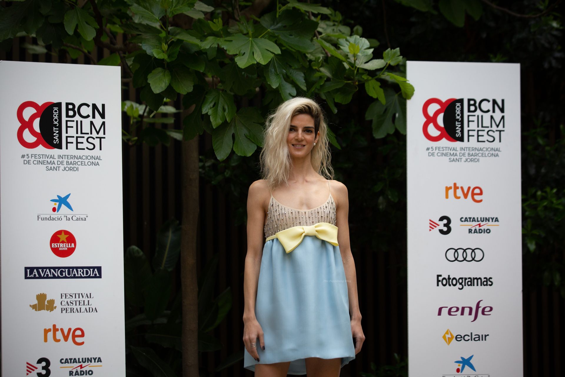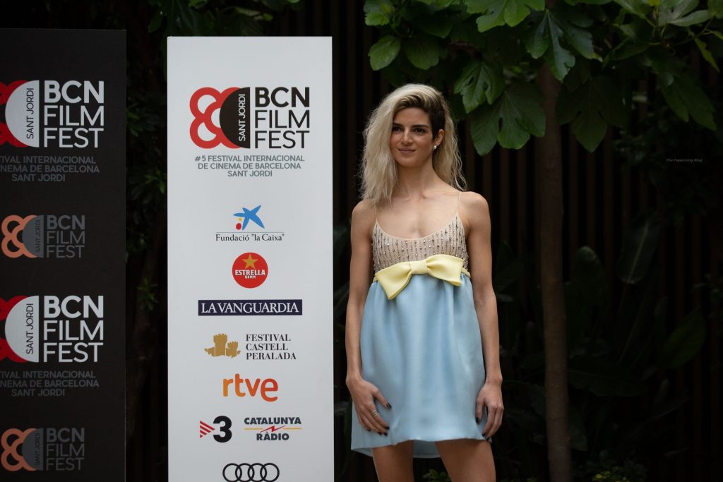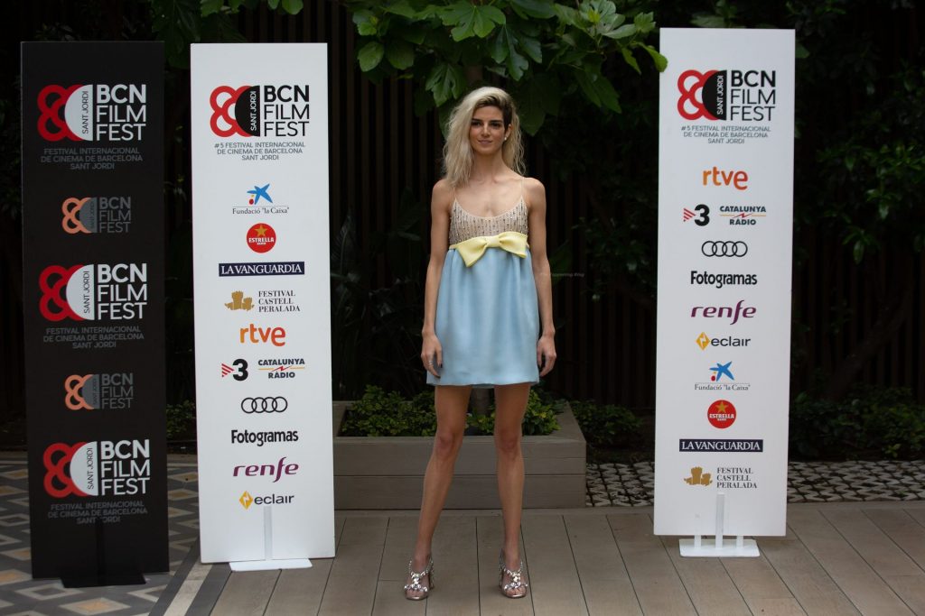 Длинноногая актриса Клара Лаго позирует без бюстгальтера на фотоколле фильма Crónica de una tormenta на BCN Film Fest в Барселоне, 22.04.2021. Премьера фильма в кинотеатрах состоится 30 апреля.