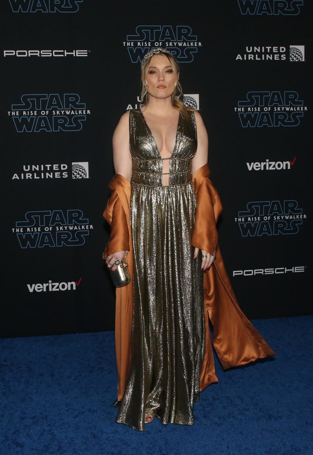 Американская актриса, певица и продюсер Клэр Грант продемонстрировала свою большую грудь на мировой премьере фильма Disney «Звёздные войны: Скайуокер. Восход», которая состоялась в Dolby Theatre в Голливуде, 16.12.2019.