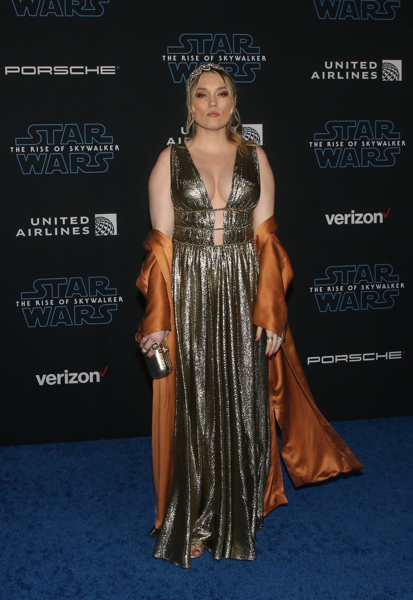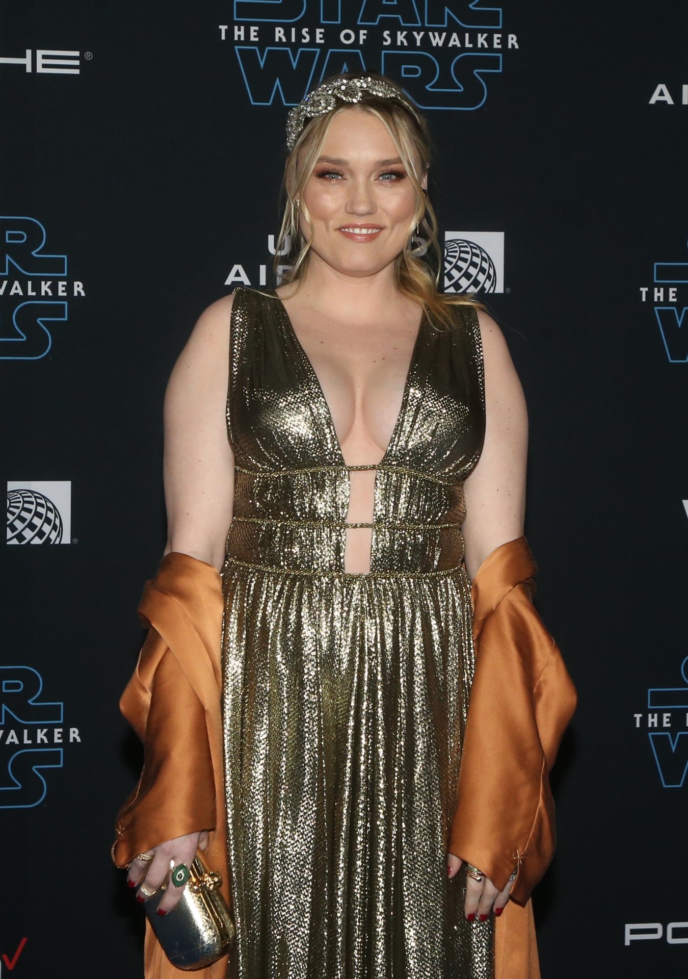 Американская актриса, певица и продюсер Клэр Грант продемонстрировала свою большую грудь на мировой премьере фильма Disney «Звёздные войны: Скайуокер. Восход», которая состоялась в Dolby Theatre в Голливуде, 16.12.2019.