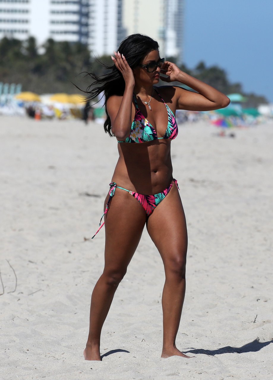 Клаудия Джордан демонстрирует свои изгибы в ярком бикини на пляже в Майами, 14.02.2018. Клаудия Джордан — американская актриса, модель, звезда реалити-шоу. Родилась – 12 апреля 1973 года.
