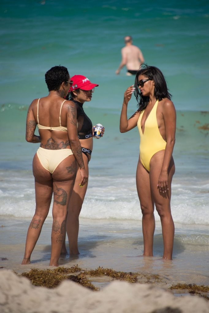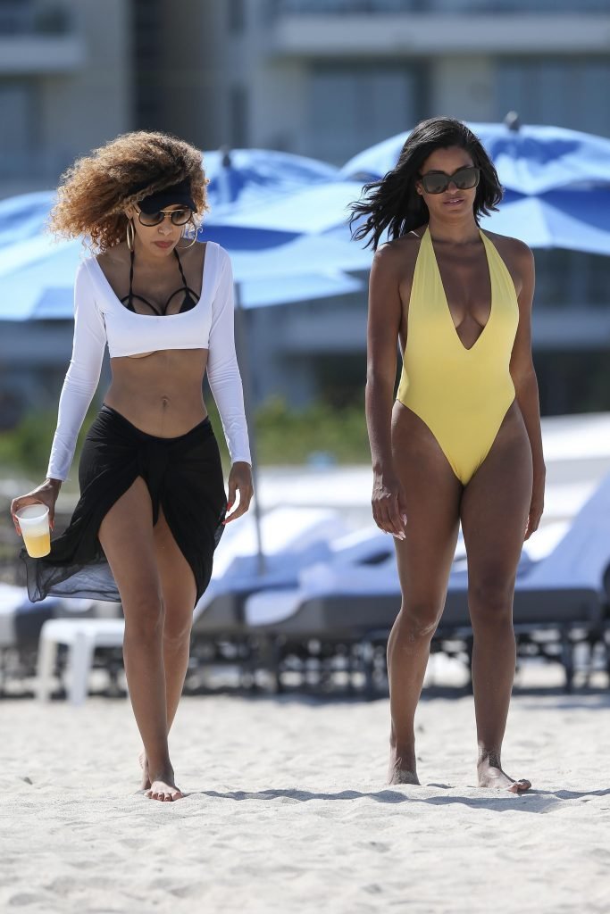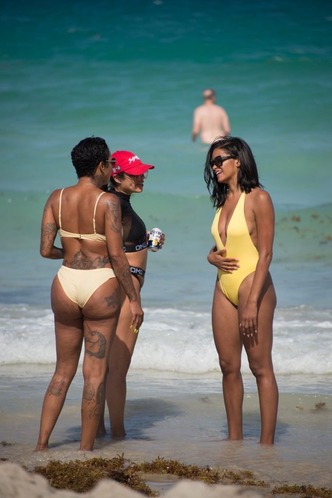 Клаудия Джордан (Реальные домохозяйки Атланты) отмечает свой день рождения с друзьями на пляже в Майами-Бич, 13.04.2018. Клаудия Джордан — американская актриса, модель, звезда реалити-шоу. Возраст — 45 лет. Родилась — 12 апреля 1973 года.
