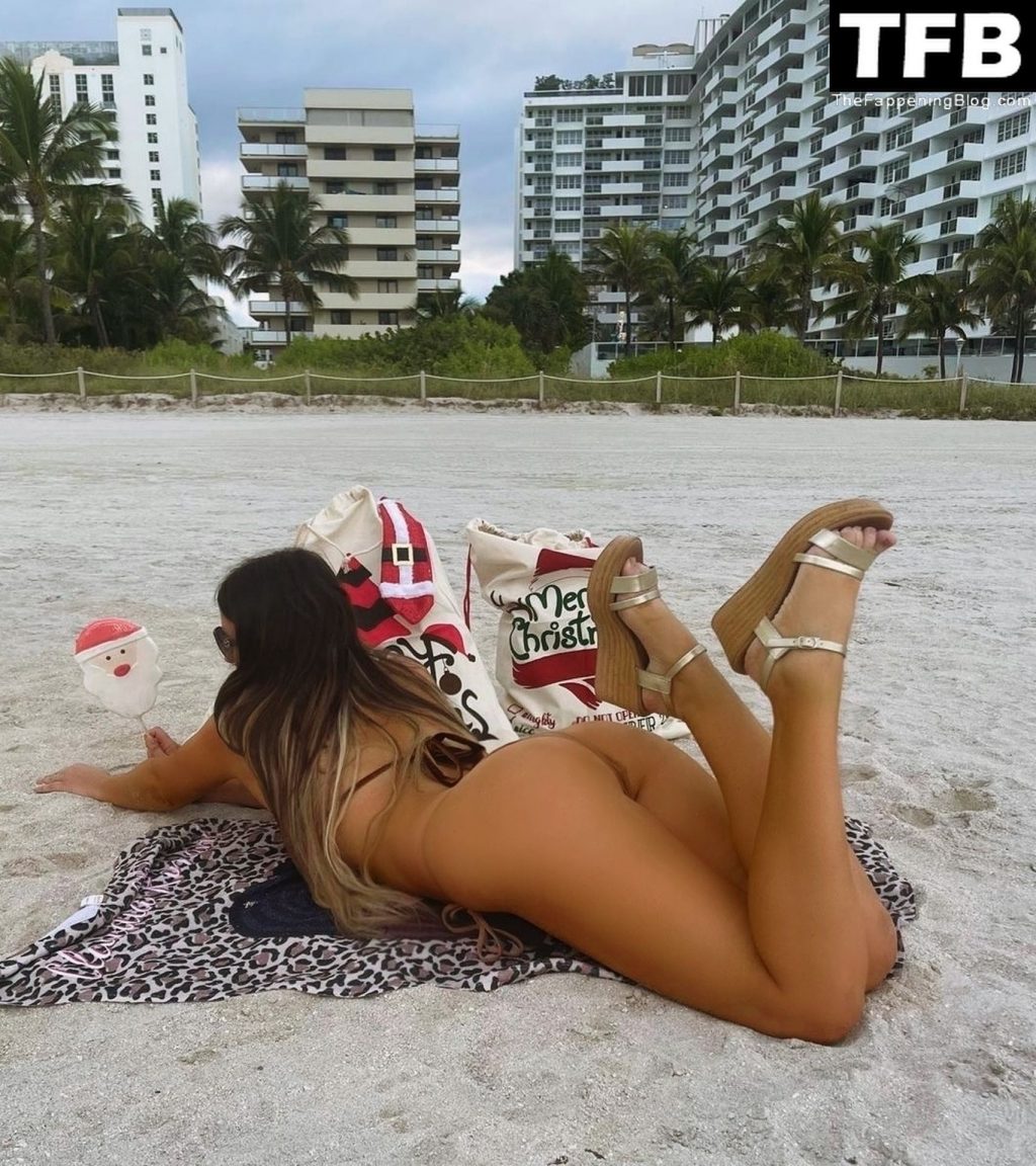 Международная модель и инфлюенсер Клаудия Романи, без сомнения, была готова к Рождеству, открывая подарки на пляже и позируя для канадского бренда купальников Formula Sea Swim – Майами, 23.12.2021.