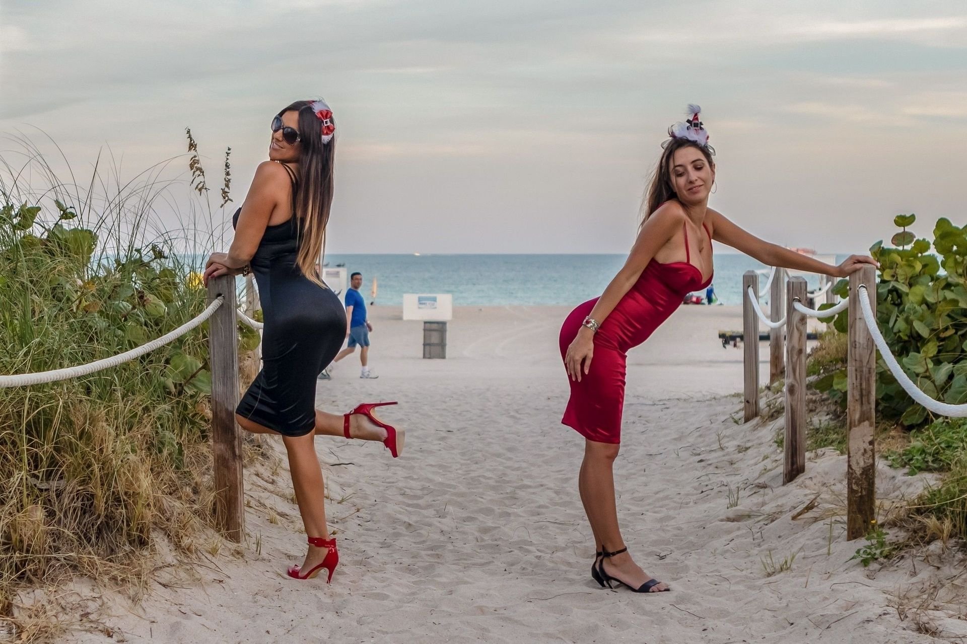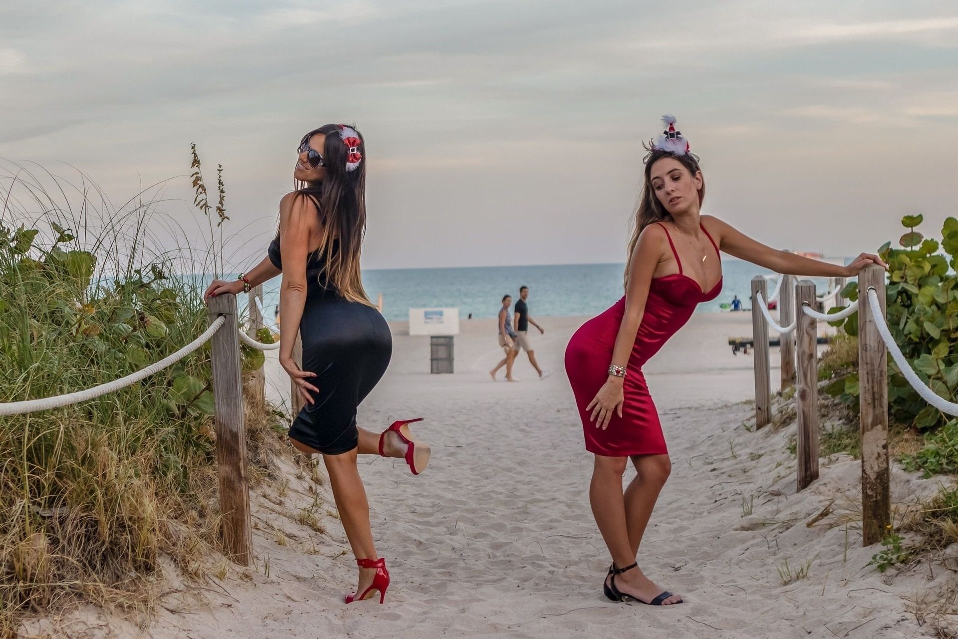 Модель и звезда реалити-шоу Клаудия Романи была наряжена и готова выйти в свет с лос-анджелесской ютубершей Лорен Франческа, 29.11.2018. Они были на Саут-Бич, недалеко от набережной, делали селфи и снимали видео. На них были рождественские цвета и головные уборы.