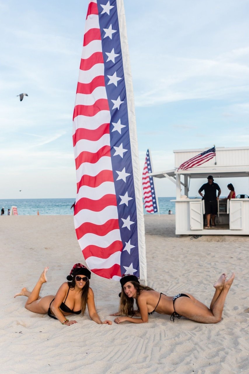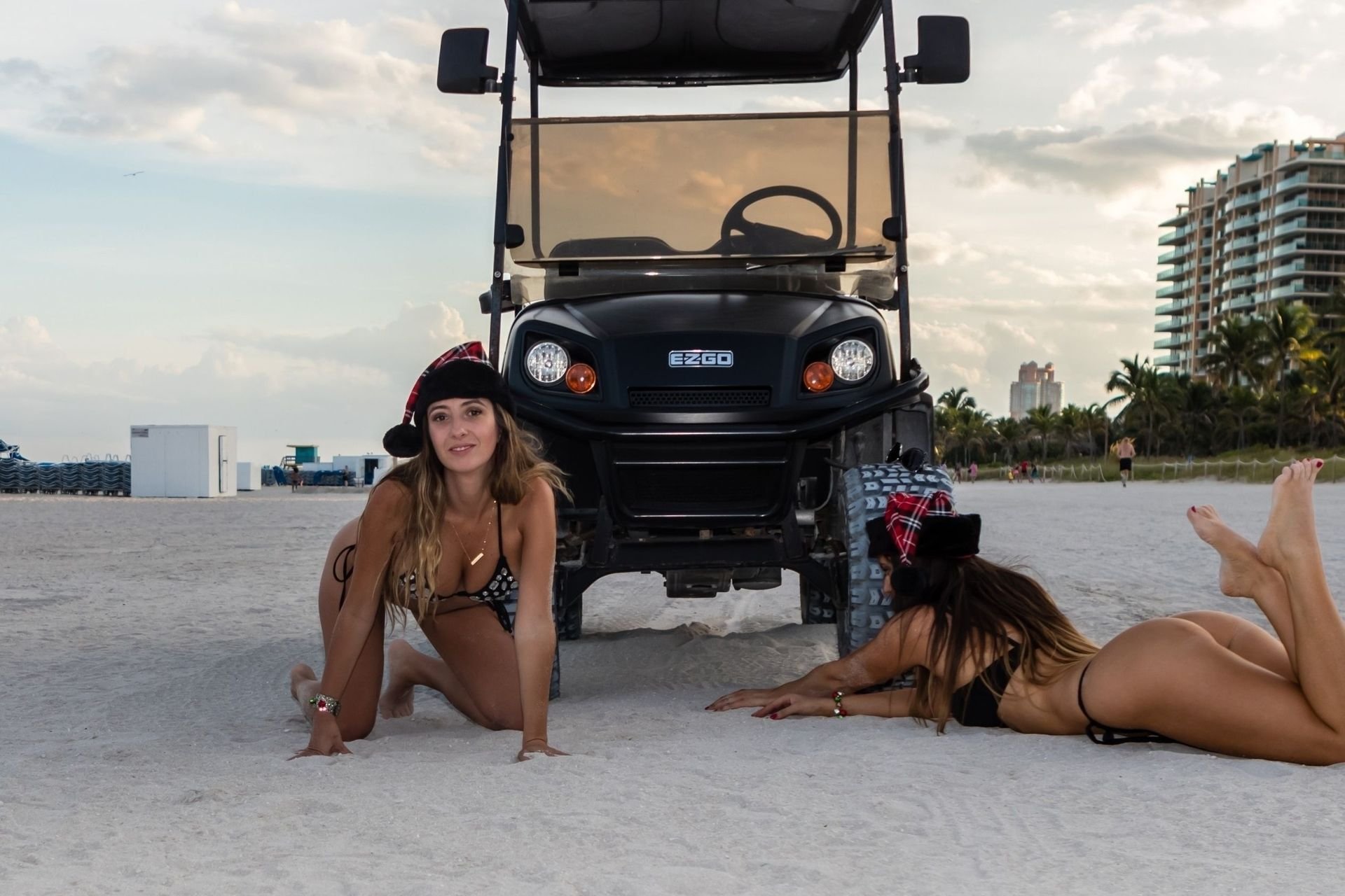 Итальянская модель и звезда реалити-шоу Клаудия Романи и американская звезда Youtube Лорен Франческа позируют на Саут-Бич незадолго до Рождества, 23.12.2018. Подруги были в сексуальных черных бикини и шапках Санты. Хо Хо Хо.