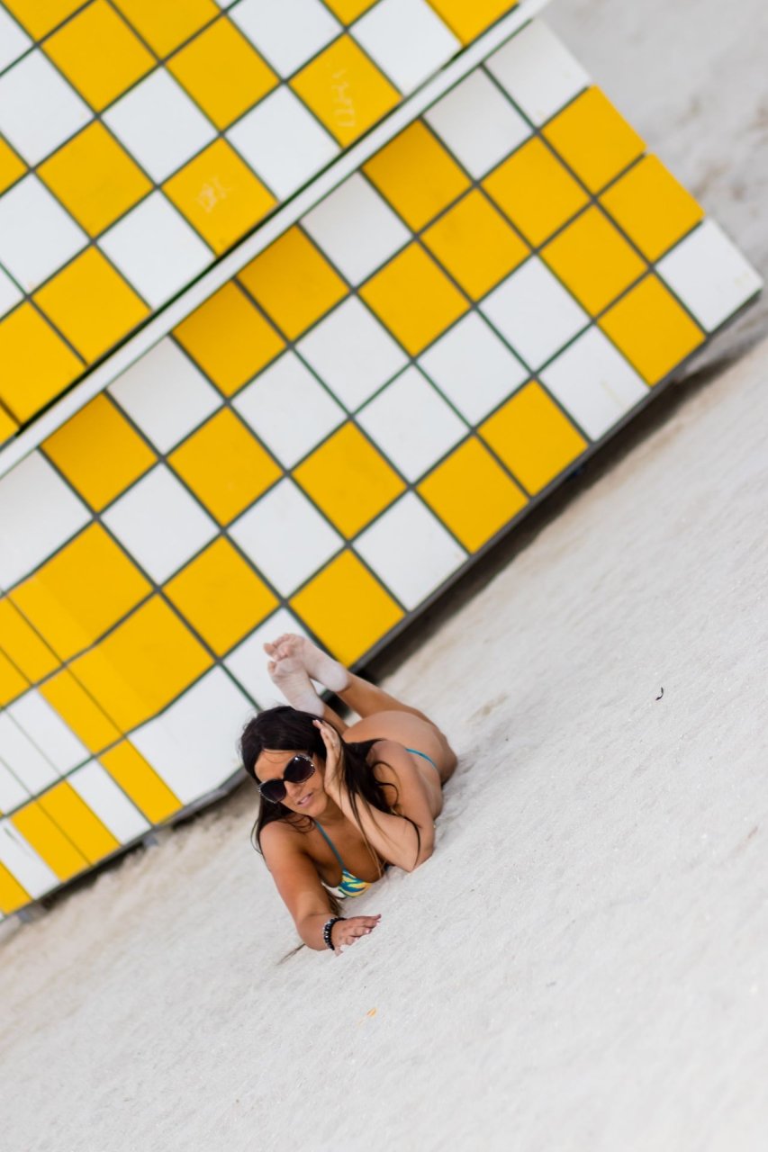 Итальянско-американская модель и звезда реалити-шоу на Южном Биче наслаждается песком во время перерыва в дожде, 17.06.2019. Клаудия была в ультра маленьких микро-тангах от купальника Shelby Swimwear и демонстрировала некоторые навыки йоги зрителям.