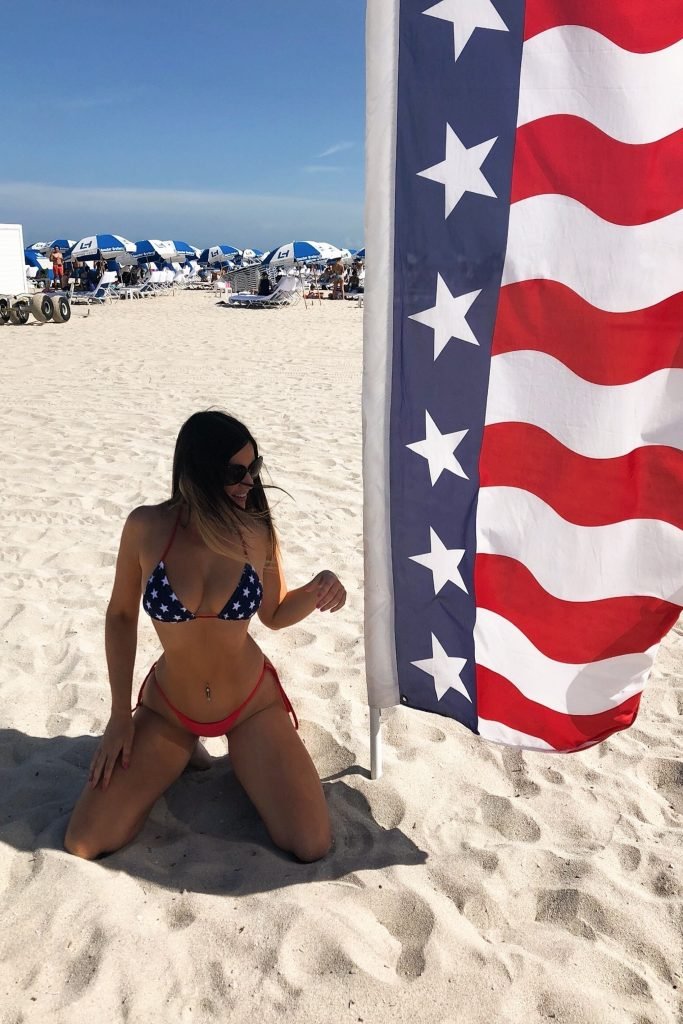 Итальянская модель и телезвезда Клаудия Романи готовится к 4 июля на Саут-Бич, 02.07.2018. 36-летняя модель позировала и улыбалась, демонстрируя свои формы в бикини в звезды и полосы. Романи итальянка, но празднует свою новую родину; она переехала в США в 2009 году.