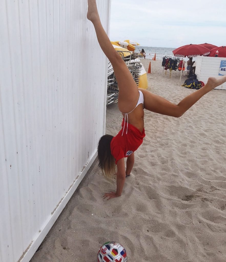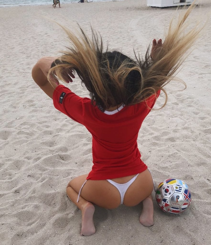 Итальянская модель и звезда реалити-шоу «Secret Story 9» Клаудия Романи (36) была замечена в воскресенье днем на пляже Майами в майке сборной Англии, играя с официальным мячом чемпионата мира в Майами, 18.06.2018. Модель и футбольный судья — большая поклонница футбола, и поскольку Италия не прошла на чемпионат мира, Клаудия решила болеть за Англию, прожив много лет в Лондоне.