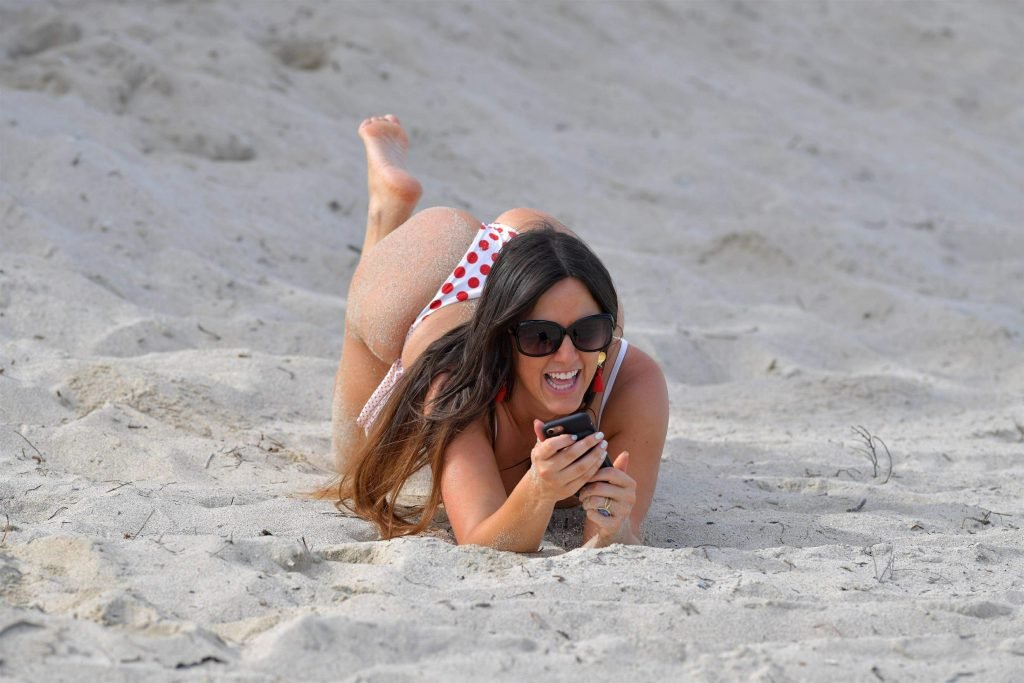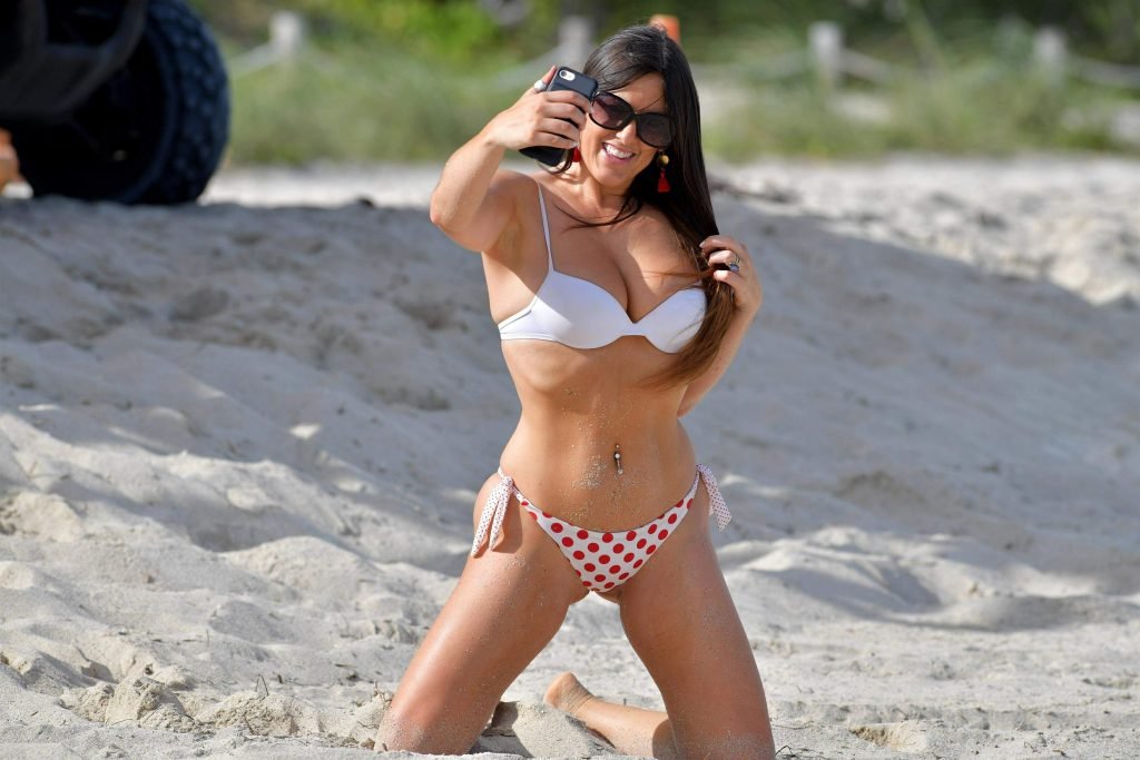 Модель и звезда реалити-шоу Клаудия Романи, 35 лет, позирует в бикини для фотосессии ко Дню святого Валентина на пляже в Майами, 14.02.2018.