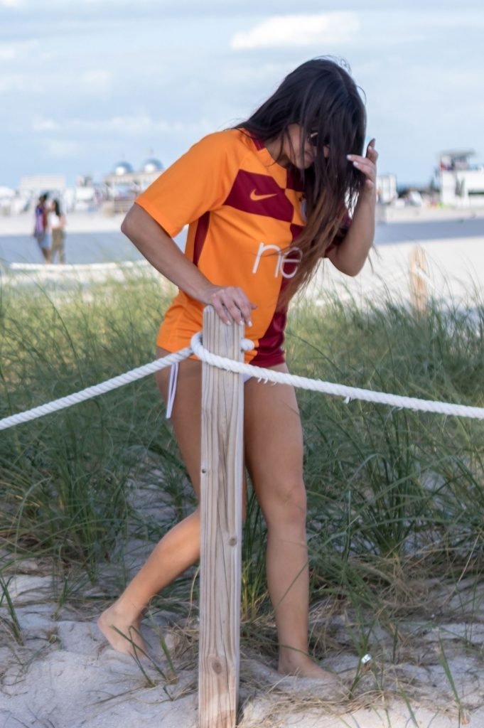 Итальянский судья, футбольный фанат, звезда реалити-шоу и модель Клаудия Романи, 36 лет, была замечена позирующей в одних стрингах и футболке Галатасарая в Майами, 29.04.2018. Она выражала поддержку турецкому клубу по просьбе своих подписчиков.