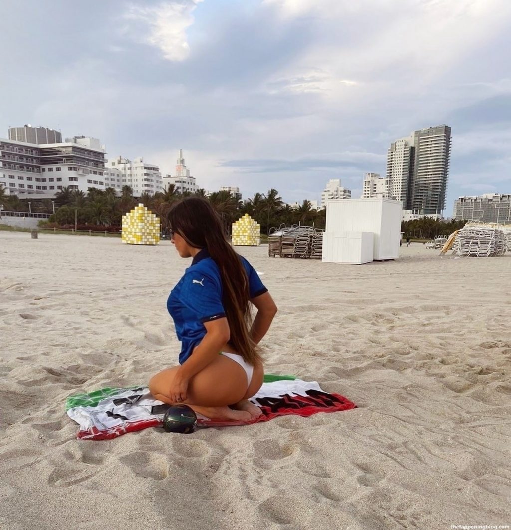 Клаудия продемонстрировала свои формы и загар на пляже, надев официальную футболку перед матчем Евро 2020 Италия – Швейцария.