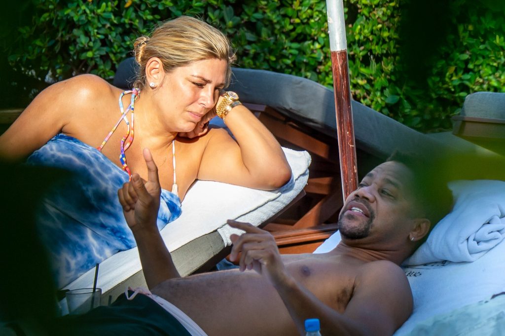 Куба Гудинг-младший отдыхает у бассейна в Майами со своей девушкой Клодин Де Ниро после того, как она пришла в ярость во время уикендовой ссоры в баре.