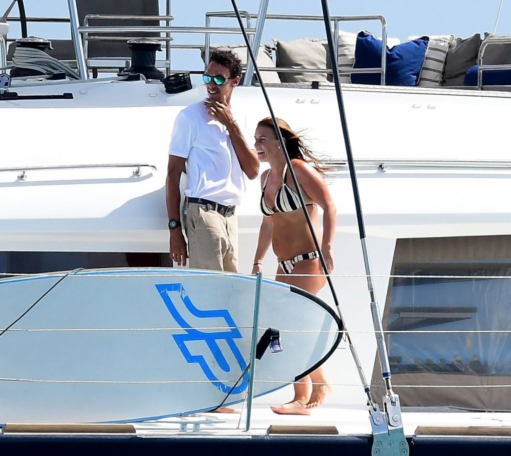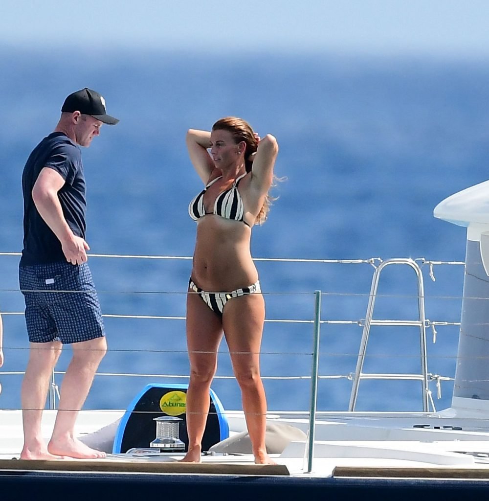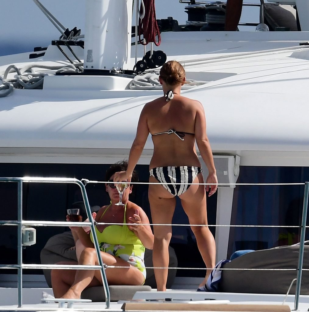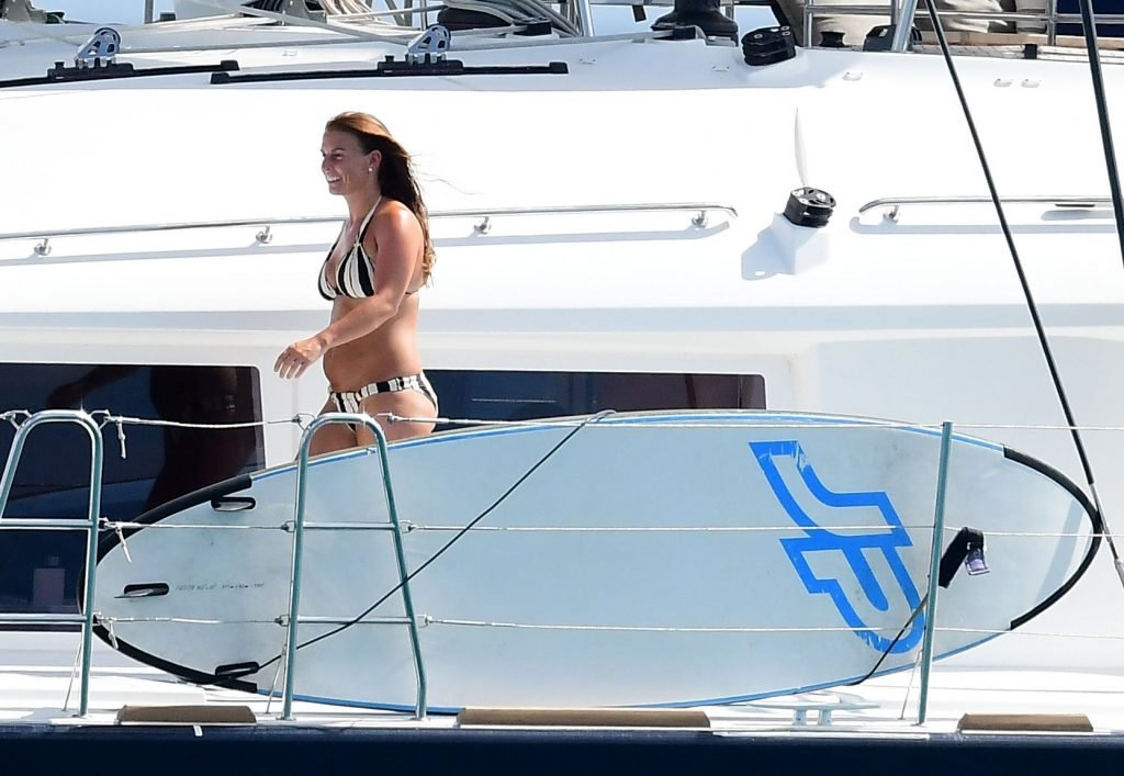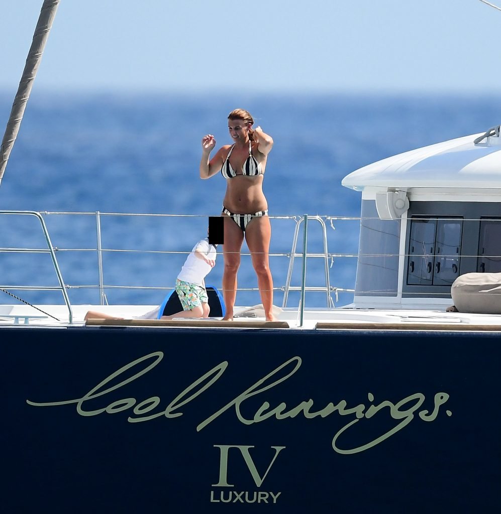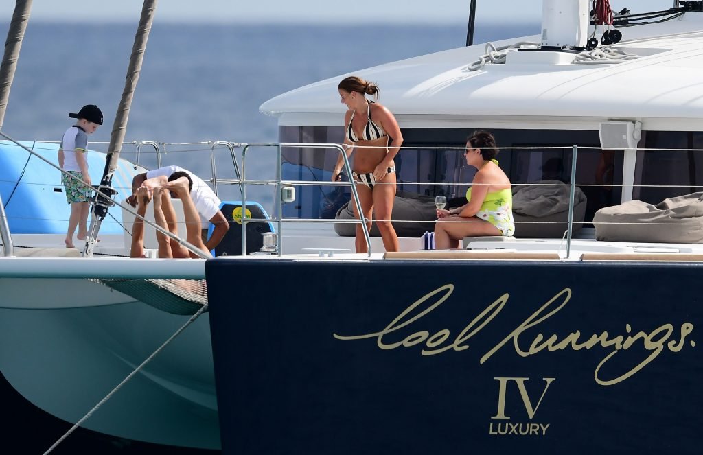 Коулин Руни и её семья продолжают отдых на Барбадосе, 28.05.2018. 32-летняя журналистка была в черно-белом бикини на яхте вместе с известным мужем, матерью и детьми.