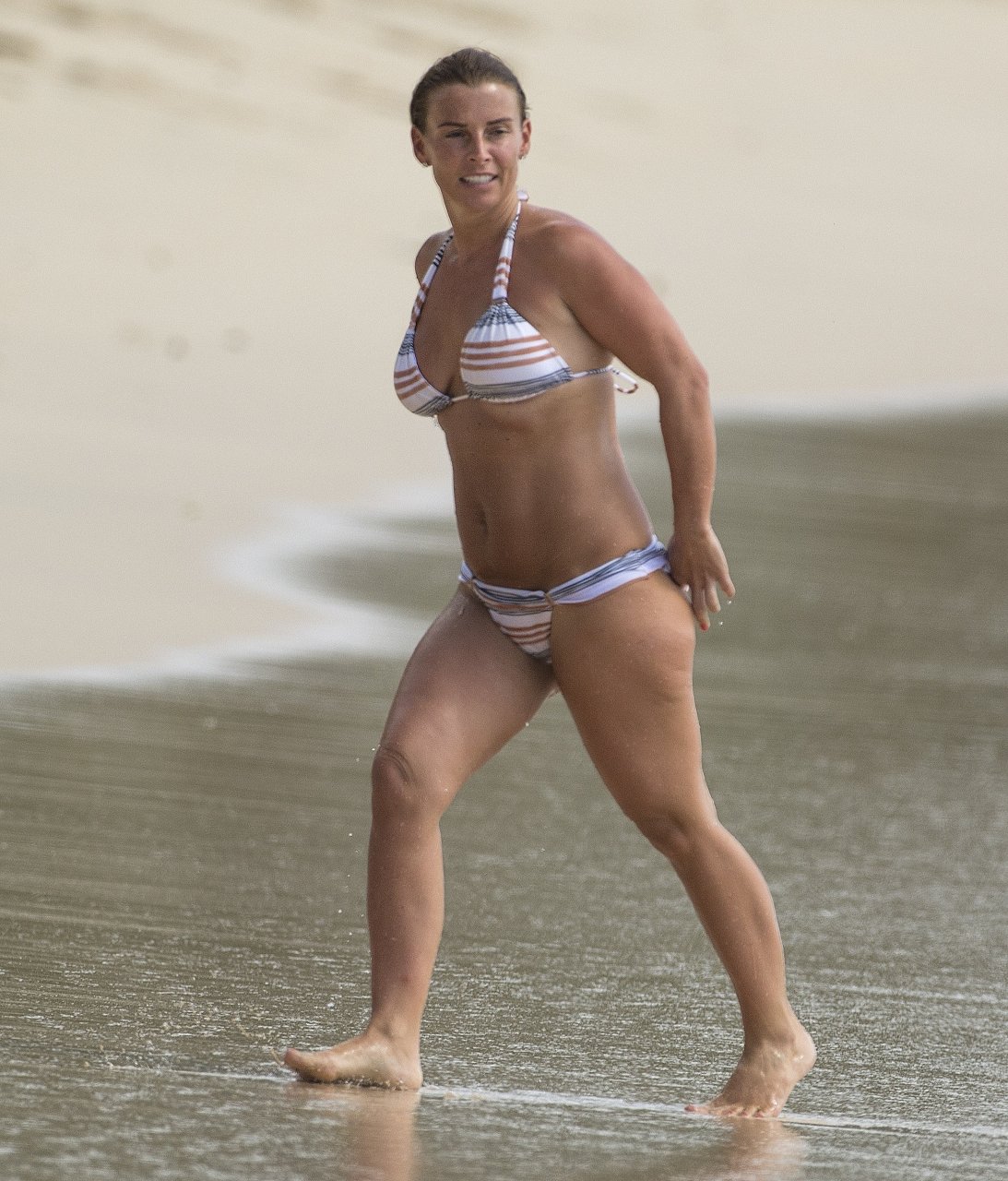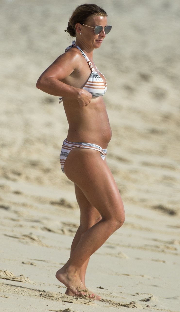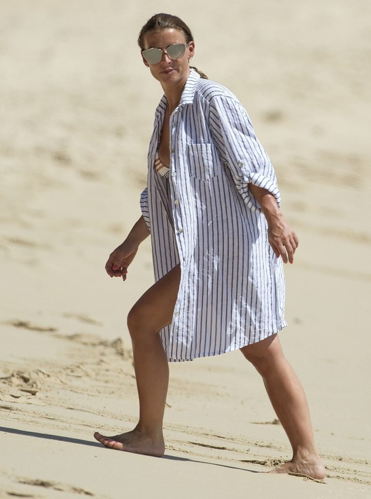 Коулин Руни и её семья наслаждаются тёплым солнцем у океана во время отпуска в Бриджтауне, 24.05.2018. 32-летняя WAG продемонстрировала свои изгибы в купальнике с узором, плескаясь в воде.