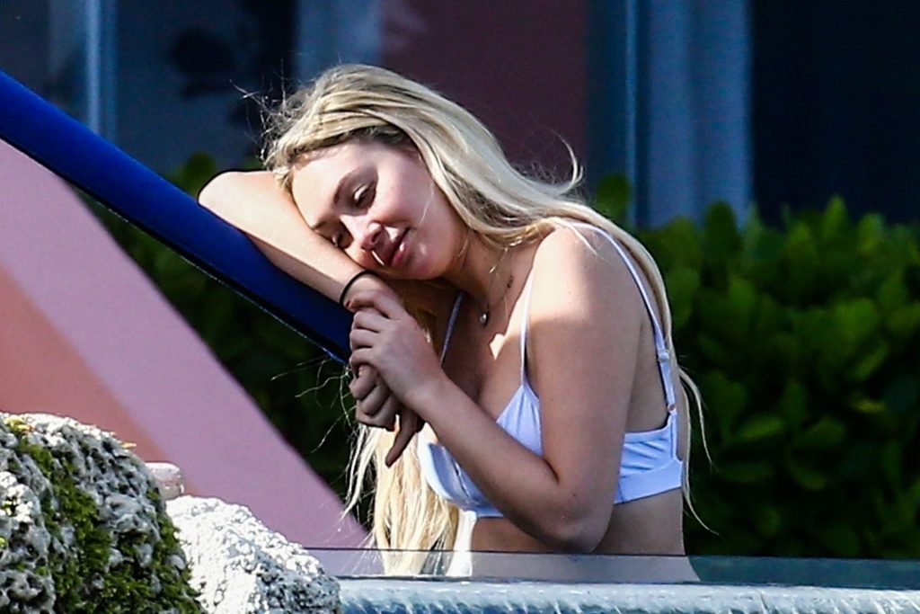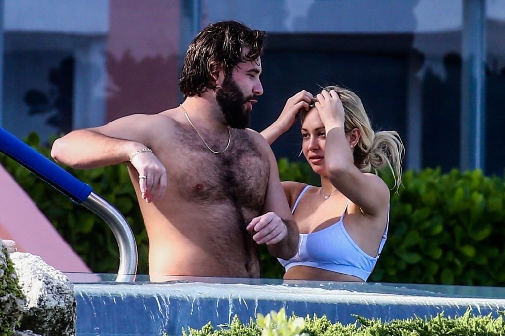 Трое — это компания! Коринн Олимпиос и её парень Джон Юнгер проводят Рождество в тёплом тропическом раю Майами-Бич вместе с гонщиком Заком Вичем, 25.12.2018. 26-летняя участница шоу “Холостяк в раю” продемонстрировала свою фигуру в светло-голубом бикини и показала пару пятен, похожих на синяки на ягодицах.