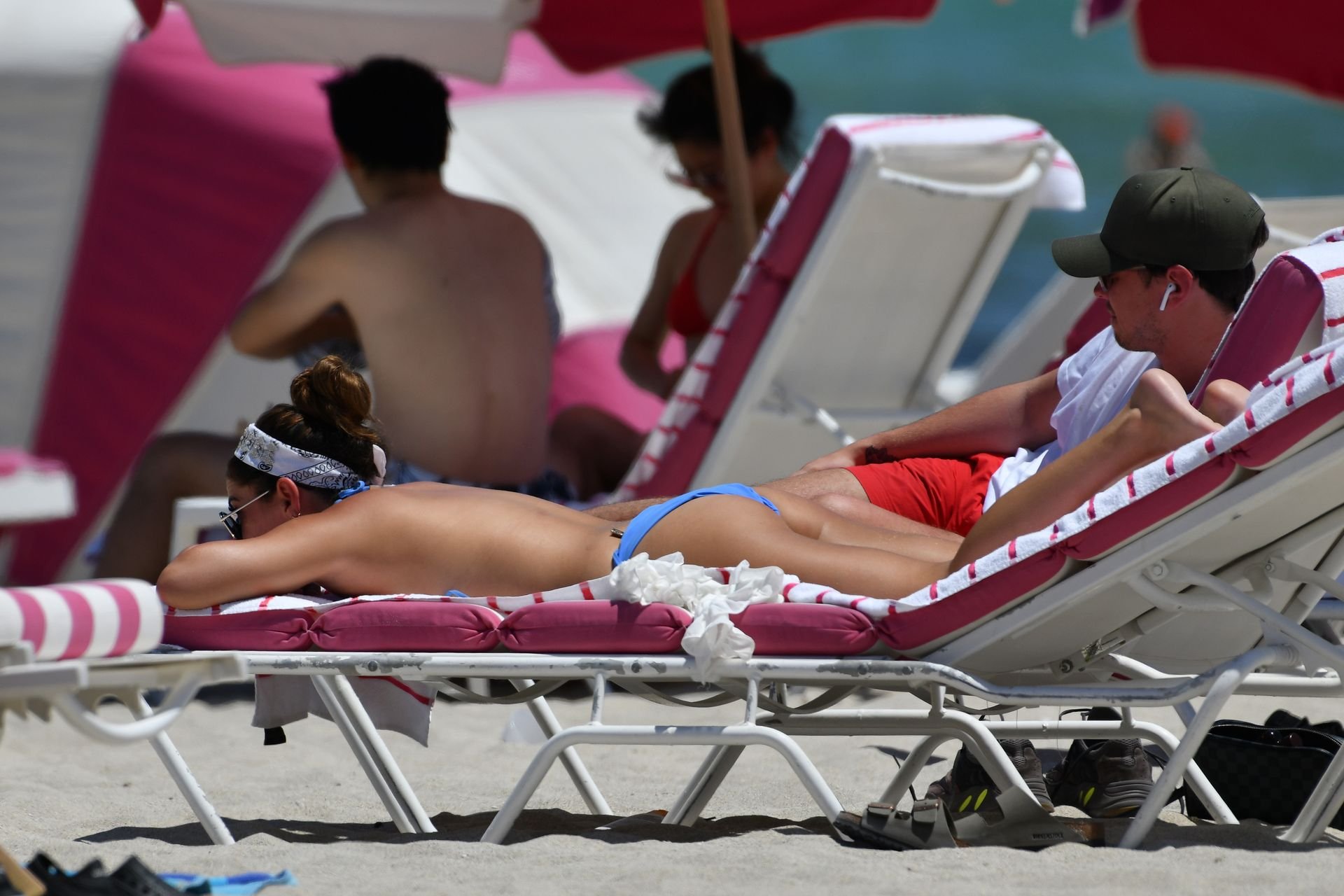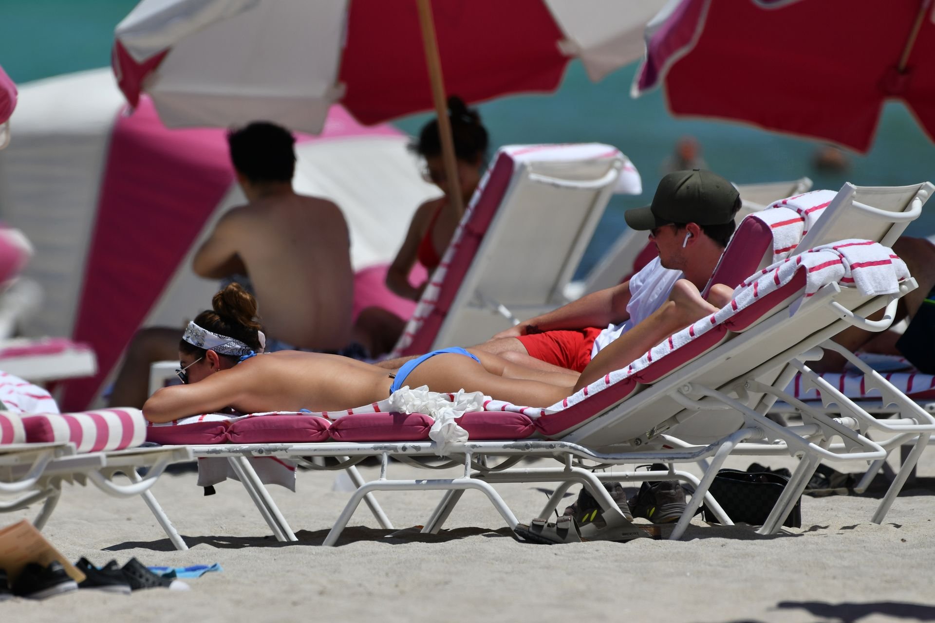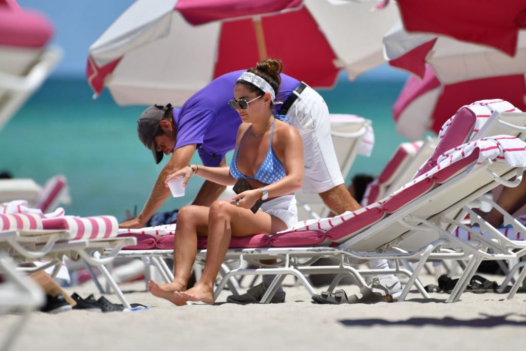 Звезда шоу TOWIE Кортни Грин и её парень Каллум Бушби демонстрируют свои пляжные фигуры на Майами-Бич, 06.06.2019.