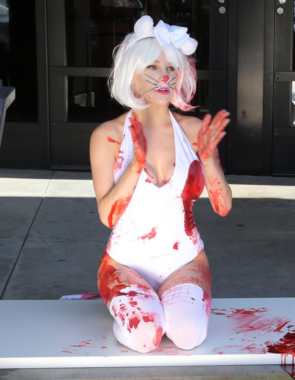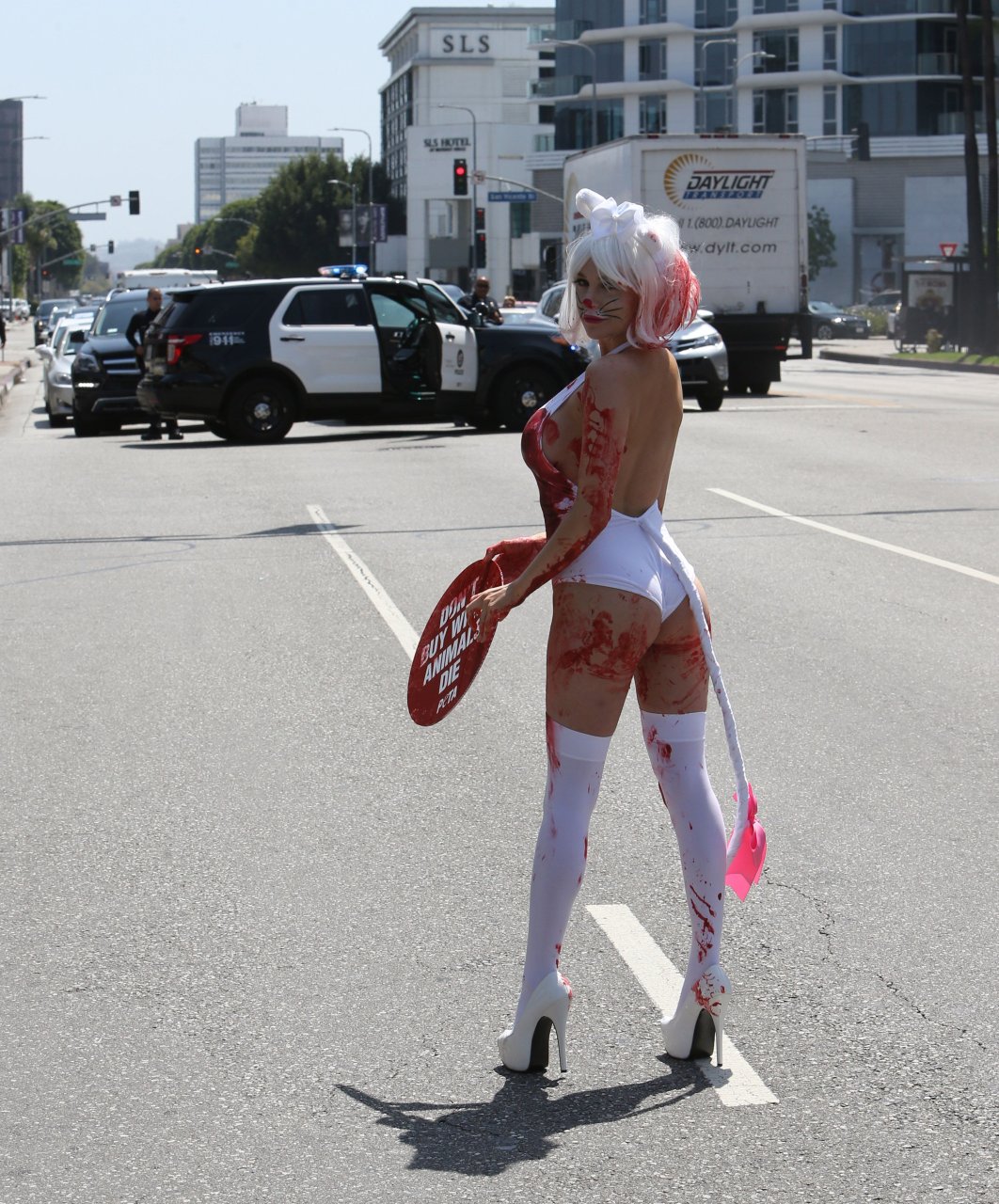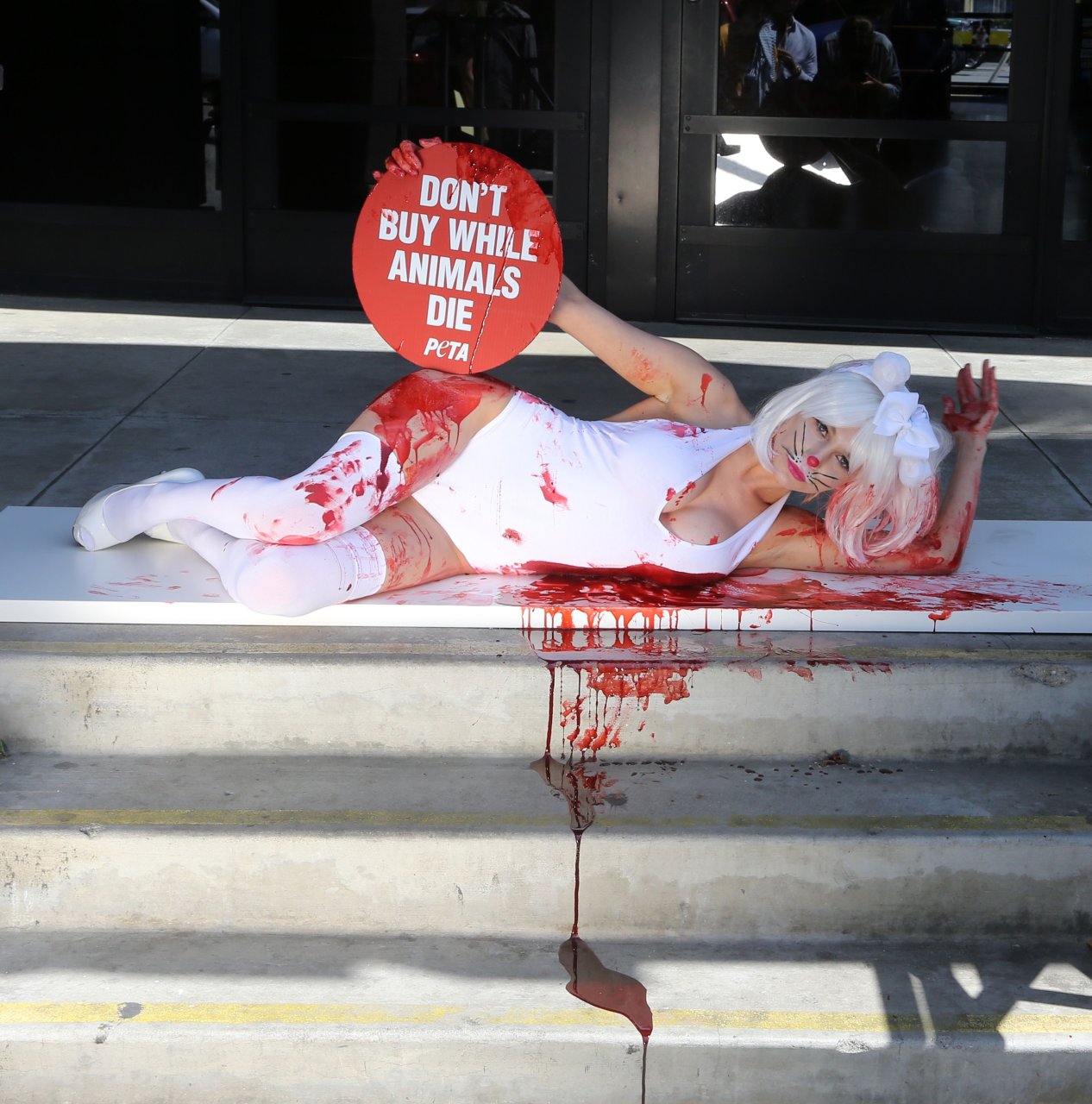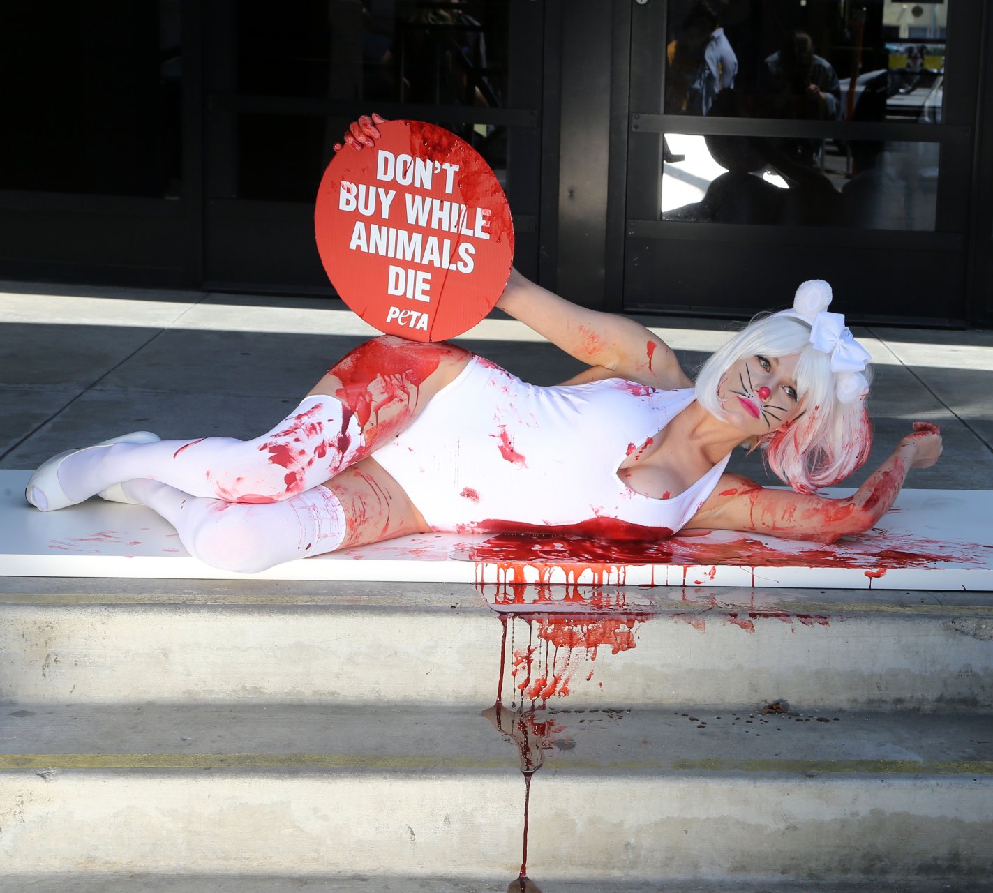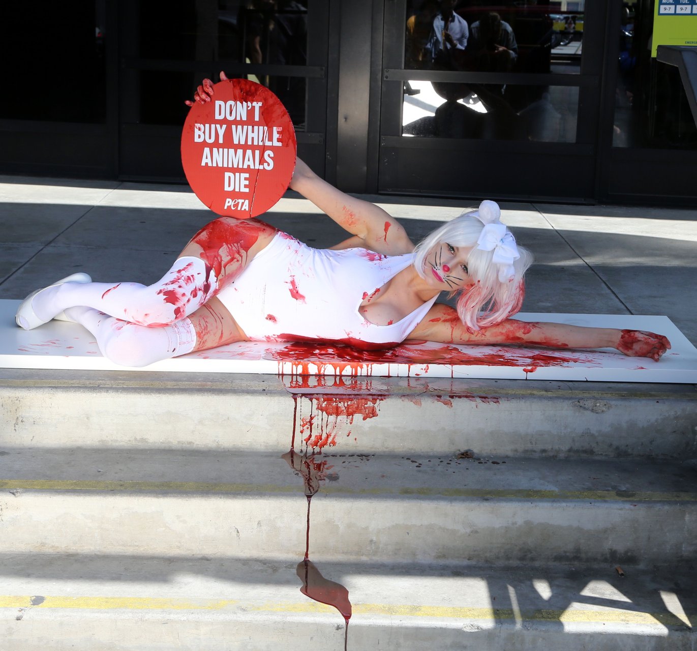Courtney Stodden протестует у ‘Petsmart’ в Лос-Анджелесе, 14.04.2016. Еще одна грязная кампания Peta… Кортни Стодден — американская участница реалити-шоу. Возраст 21 год (29 августа 1994). Рост 160 см.