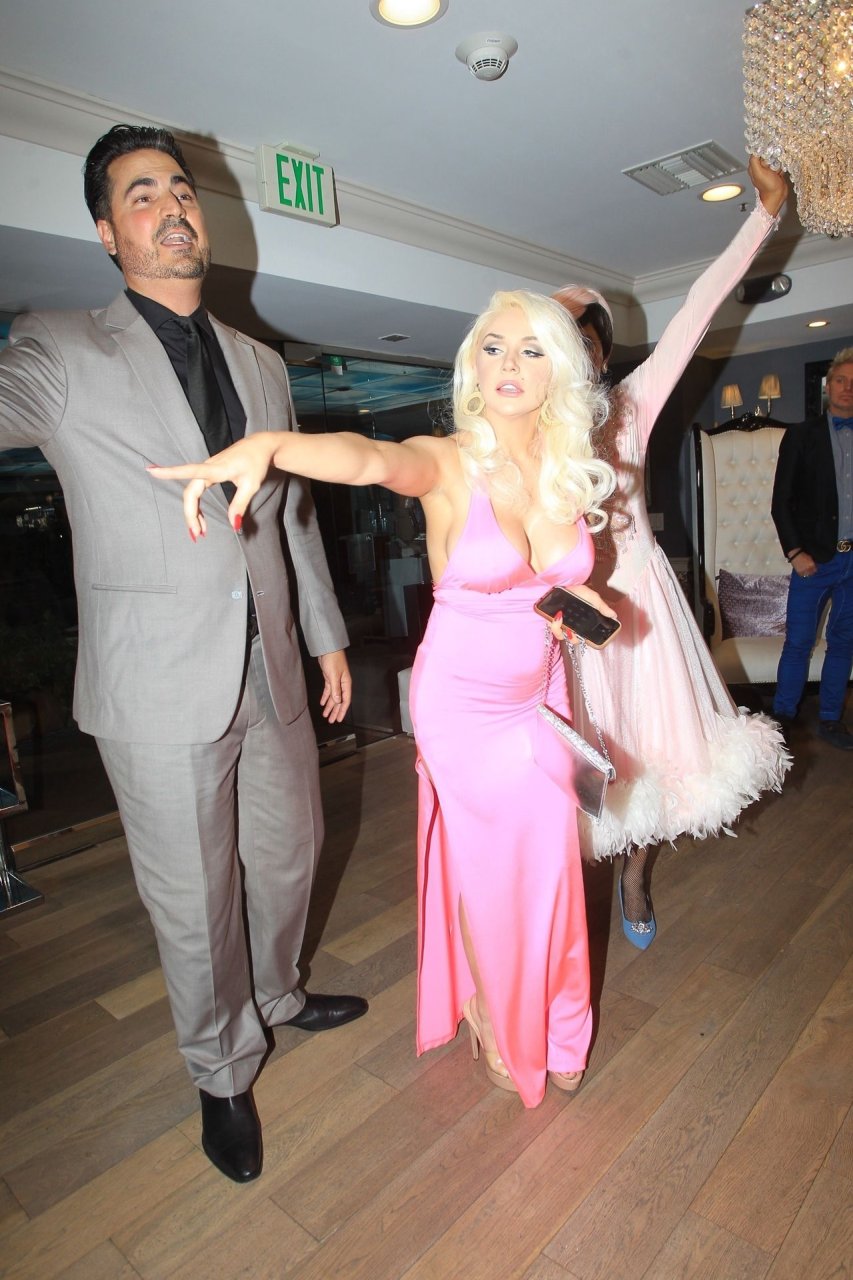 Модель и медийная персона Кортни Стодден и её подруга попали в забавную ситуацию в ванной на её телевизионной премьере в Беверли-Хиллз, 03.09.2019. Мама Кортни и её парень присутствовали на мероприятии.