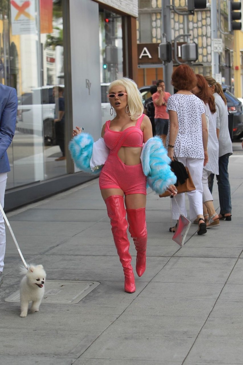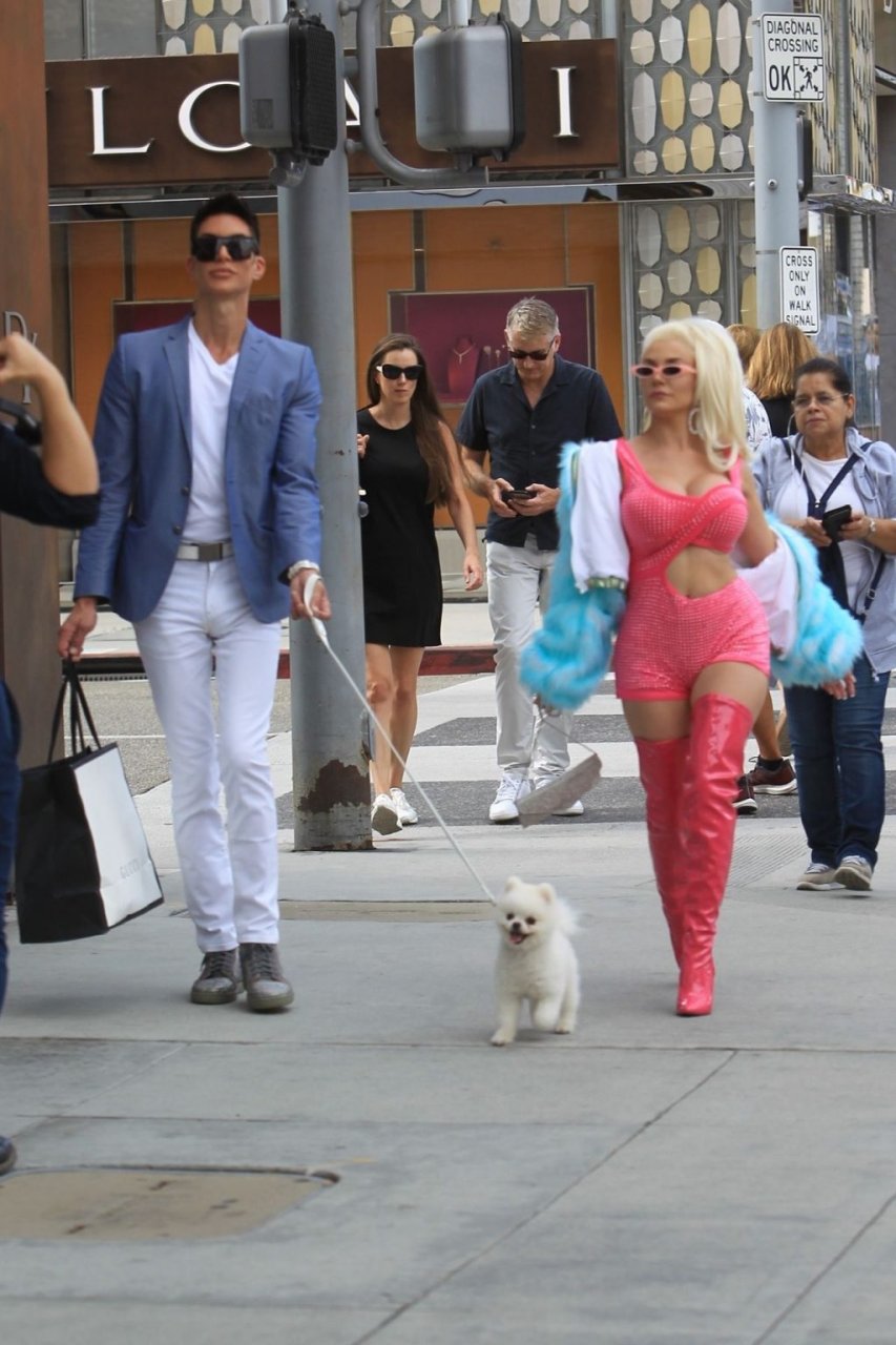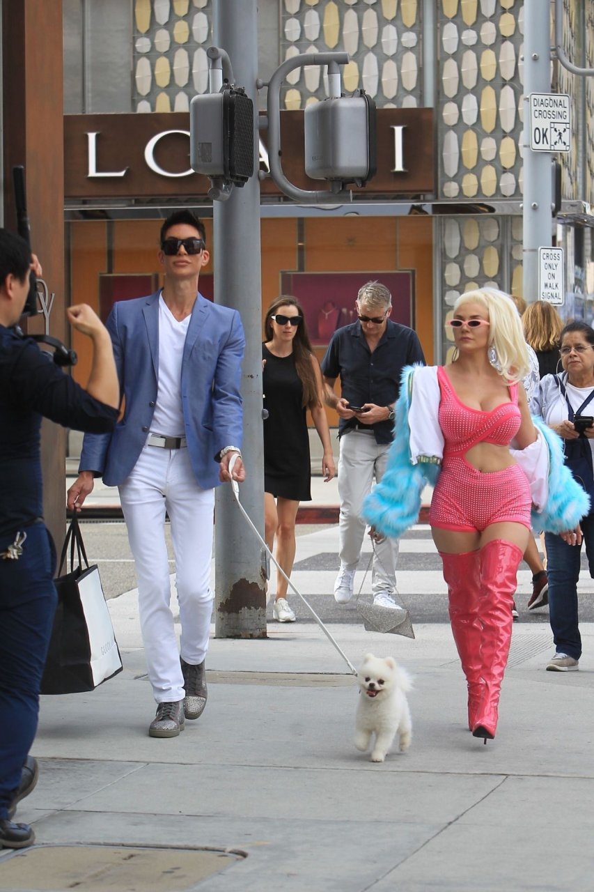 Модель/певица Кортни Стодден берет своего щенка и друзей, чтобы снять музыкальное видео на Родео Драйв в Беверли-Хиллз, 26.09.2019.