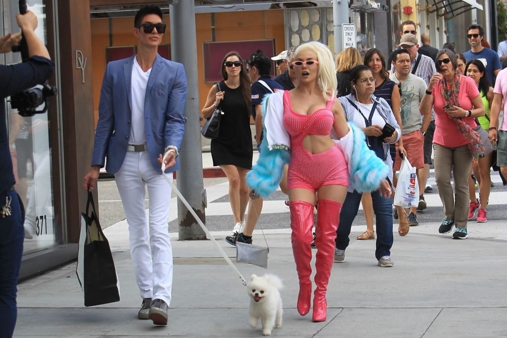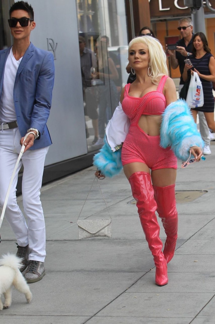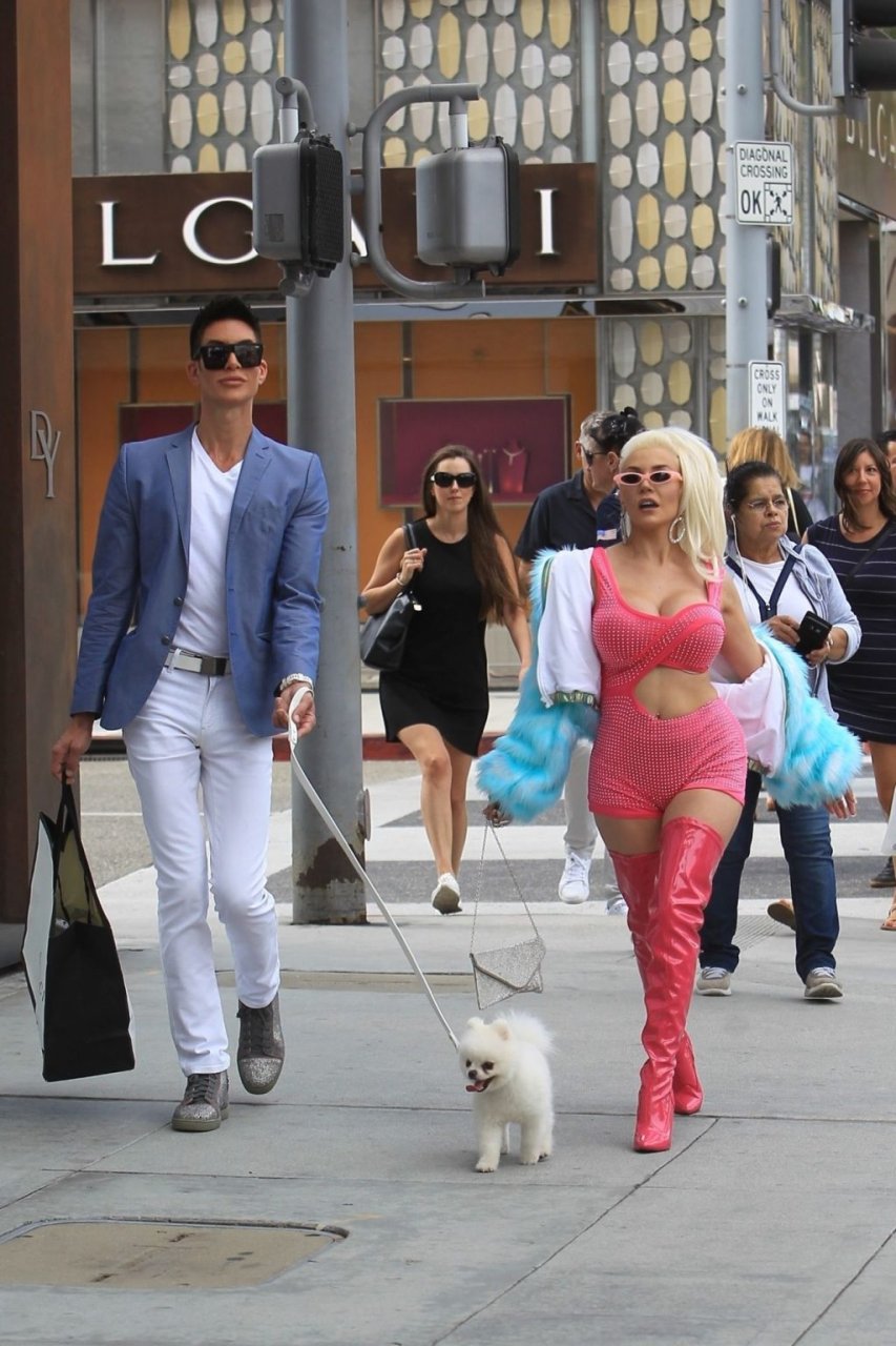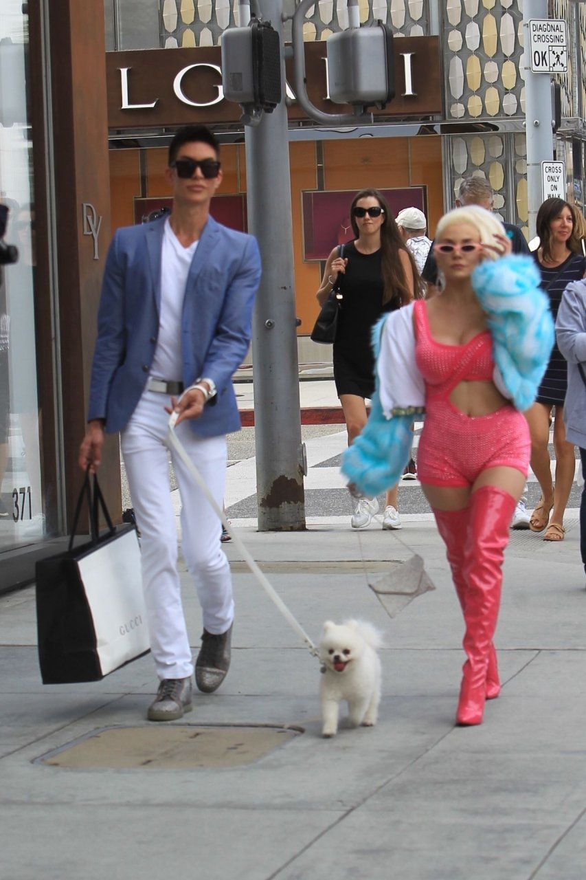 Модель/певица Кортни Стодден берет своего щенка и друзей, чтобы снять музыкальное видео на Родео Драйв в Беверли-Хиллз, 26.09.2019.