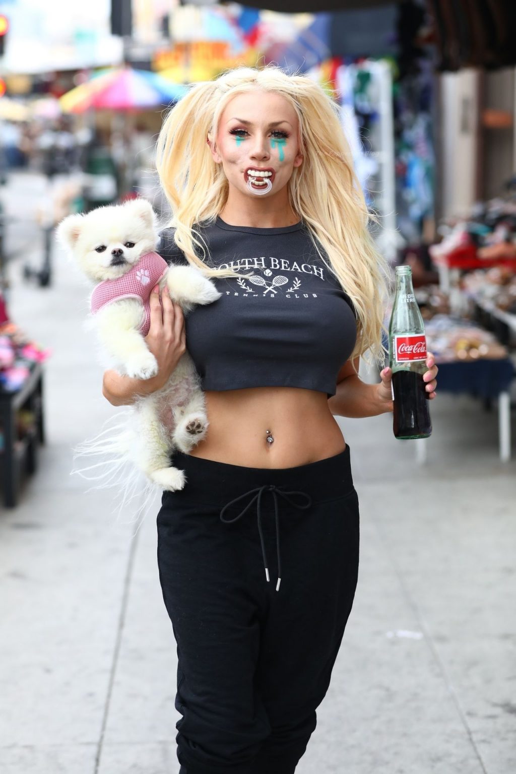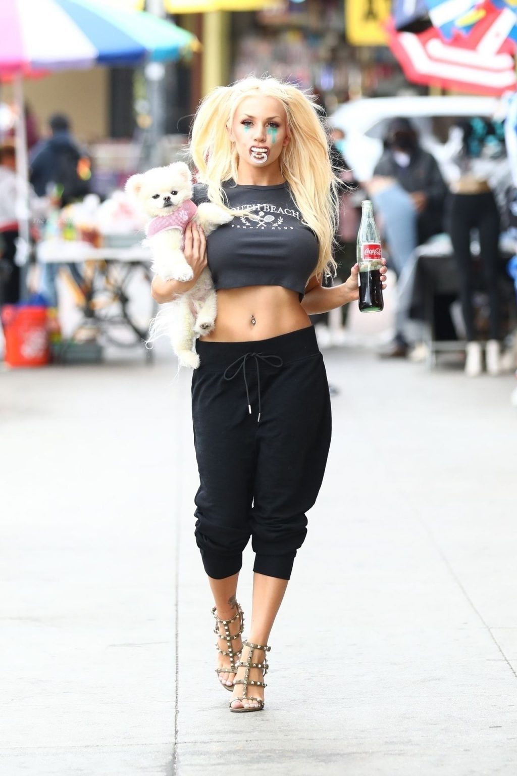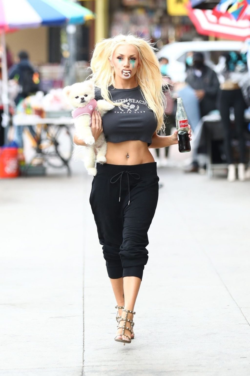 Кортни Стодден привлекает внимание, выходя с щенком Картье и соской во рту – Лос-Анджелес, 23.04.2021.