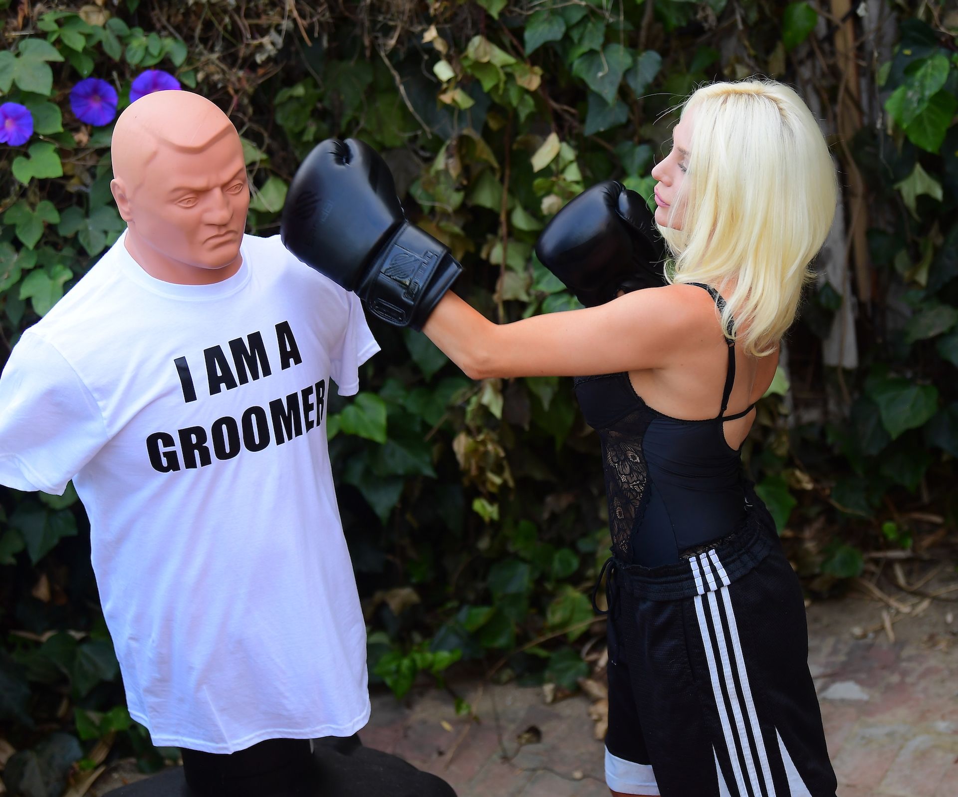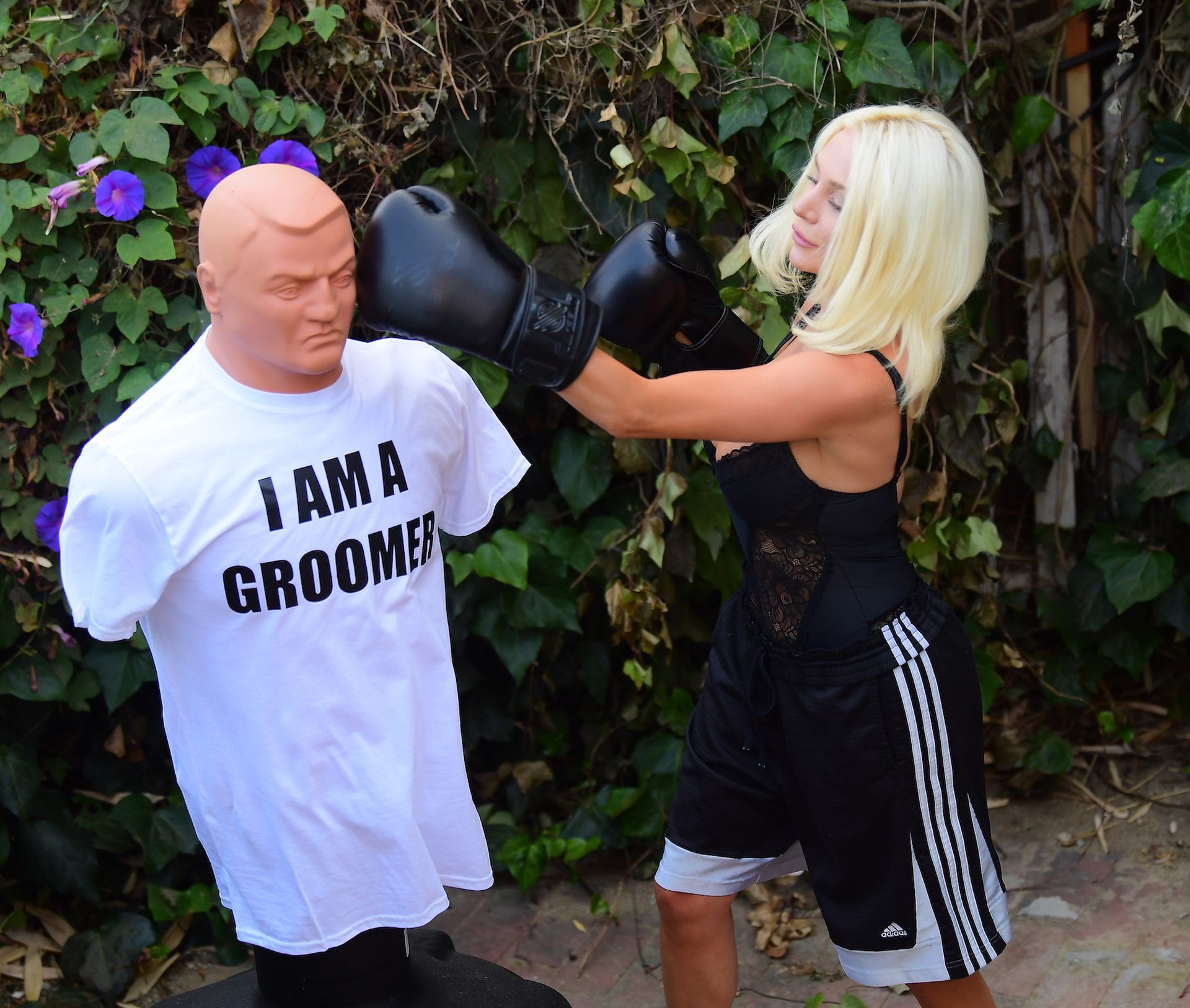 Кортни надела боксерское снаряжение и сильно ударила манекен. Она известна тем, что называла своего бывшего мужа грумером, а также сообщается, что ее роман с Брайаном Остином Грином не лучше.