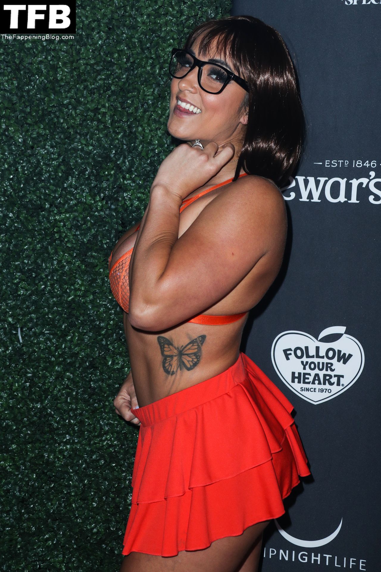 Звезда OF Кортни Тиллия демонстрирует свои слегка обнажённые искусственные груди, надев прозрачный бюстгальтер на вечеринке Maxim Halloween 2021, организованной MADE Special, которая прошла в Hyde Sunset Kitchen + Cocktails в Вест-Голливуде, 31.10.2021.