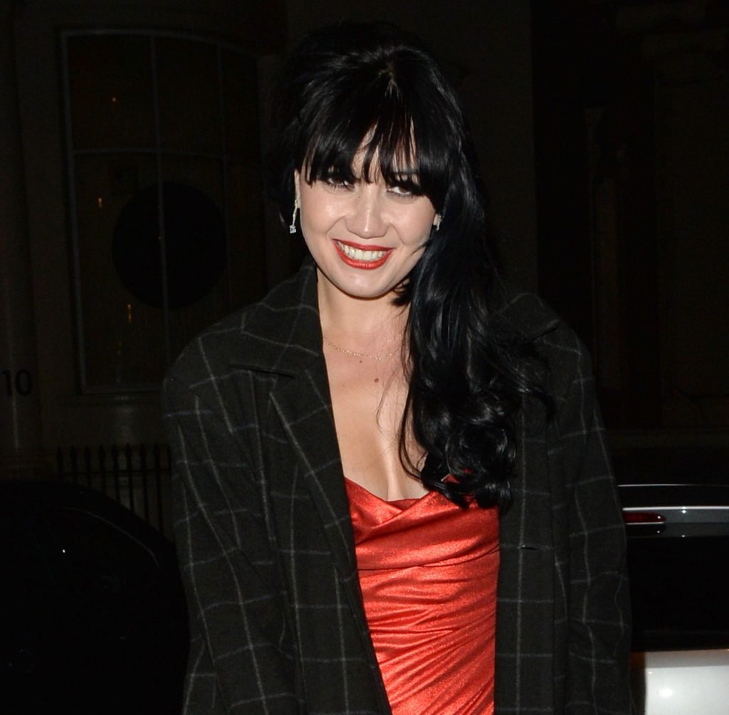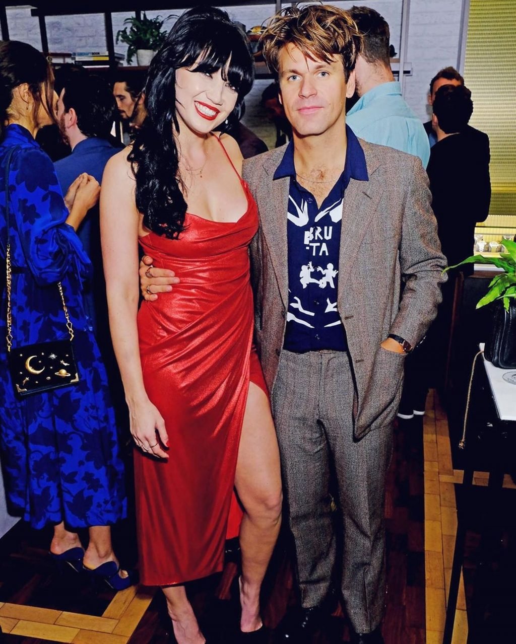Звезда The Fappening Дейзи Лоу демонстрирует свои ноги в красном платье с разрезом до бедра, покидая мероприятие по запуску Esquire Townhouse в Мэйфэре, 17.10.2019.