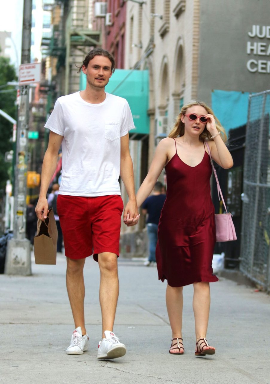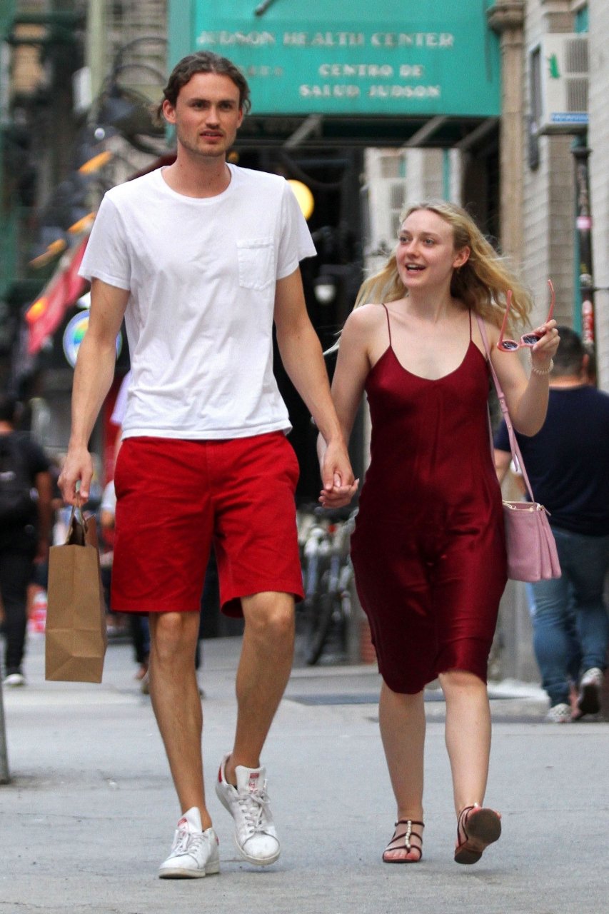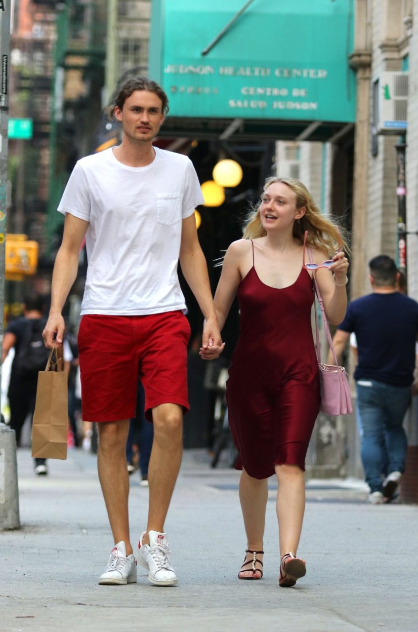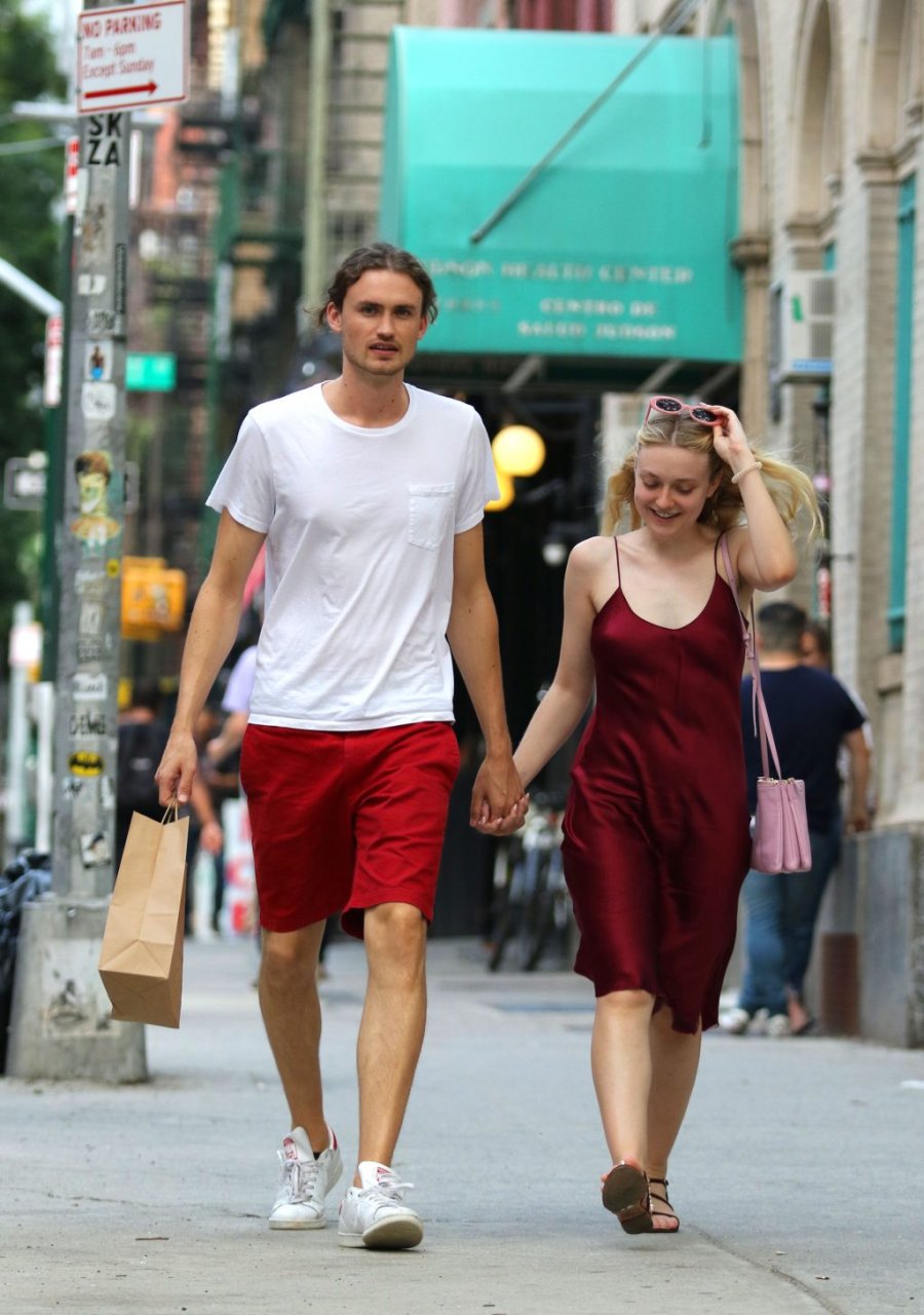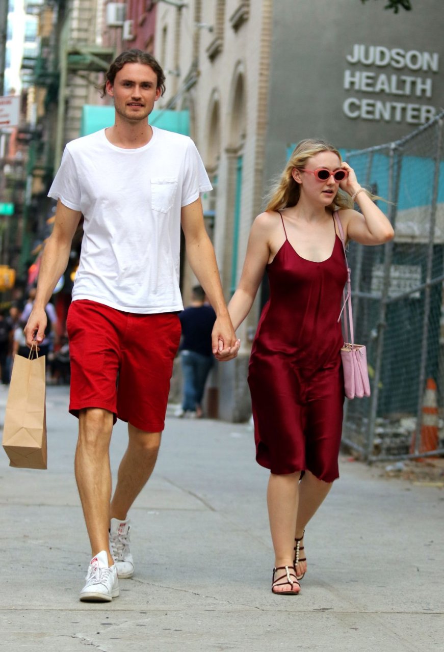 Актриса Дакота Фаннинг и её парень Генри Фрай держатся за руки во время романтической прогулки после ужина в районе Сохо в Манхэттене, 27.08.2018.