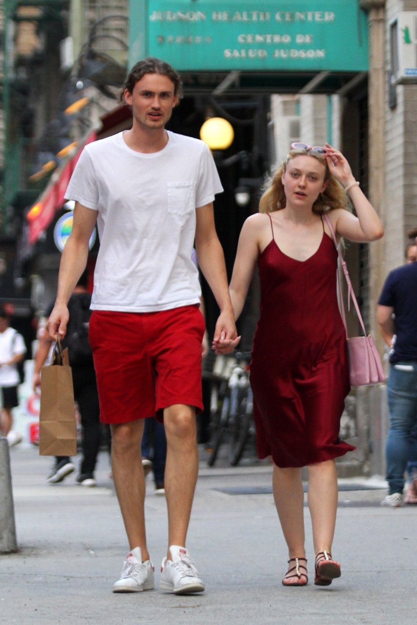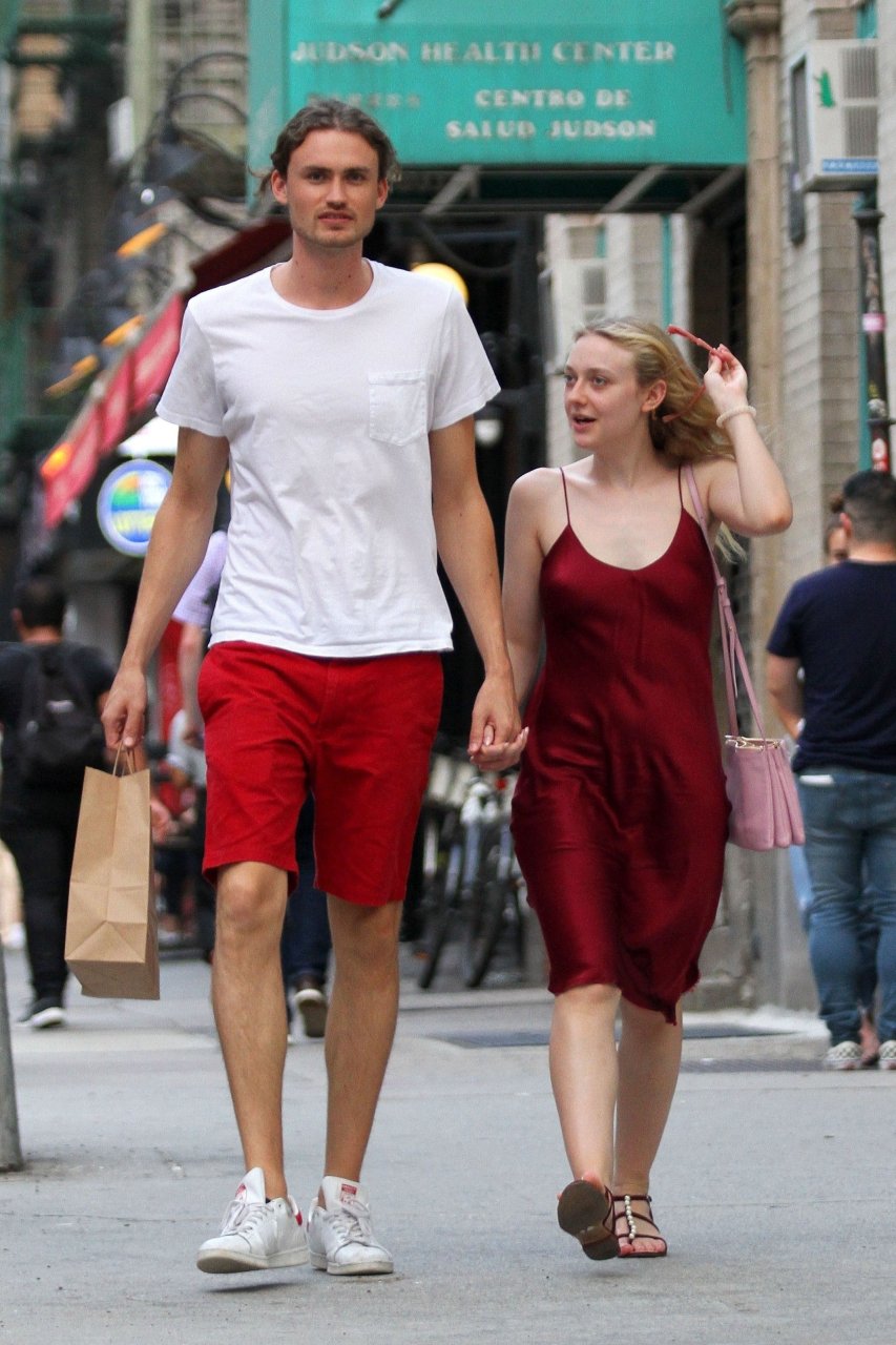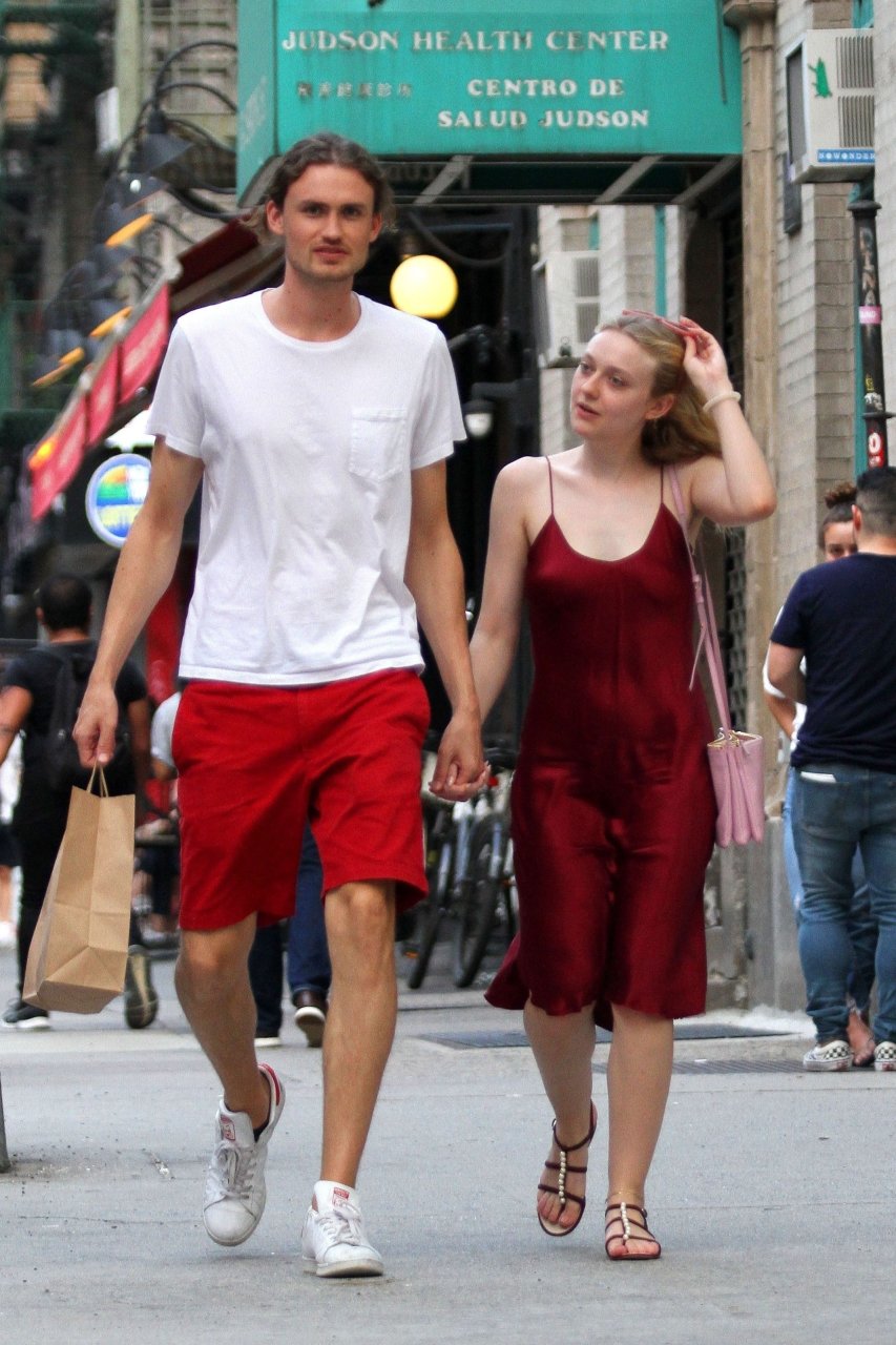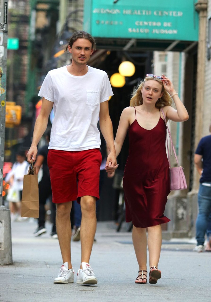 Актриса Дакота Фаннинг и её парень Генри Фрай держатся за руки во время романтической прогулки после ужина в районе Сохо в Манхэттене, 27.08.2018.