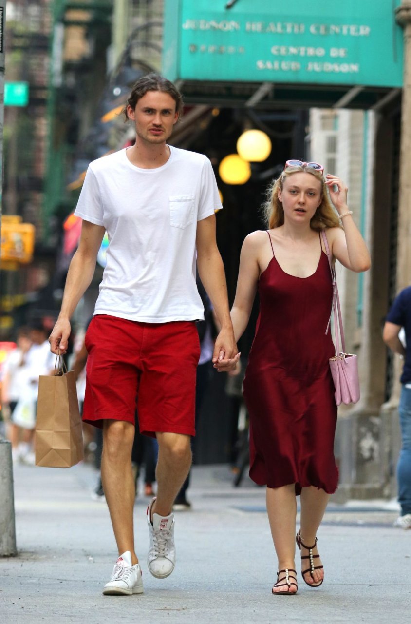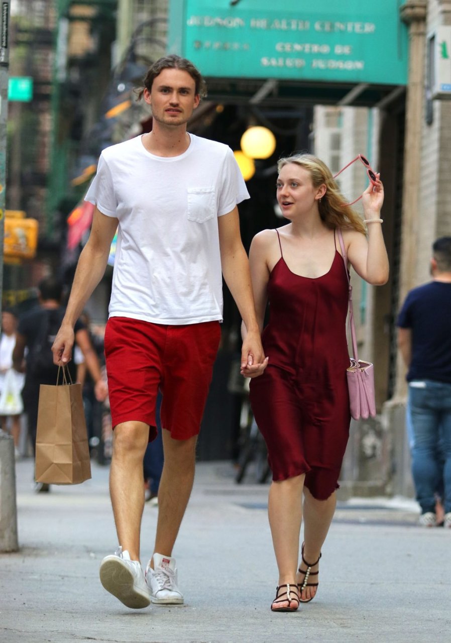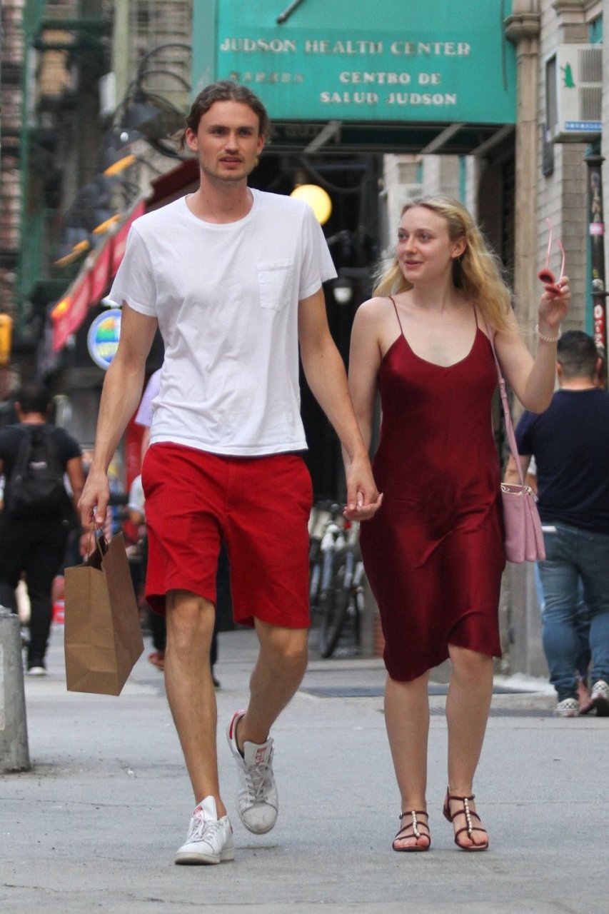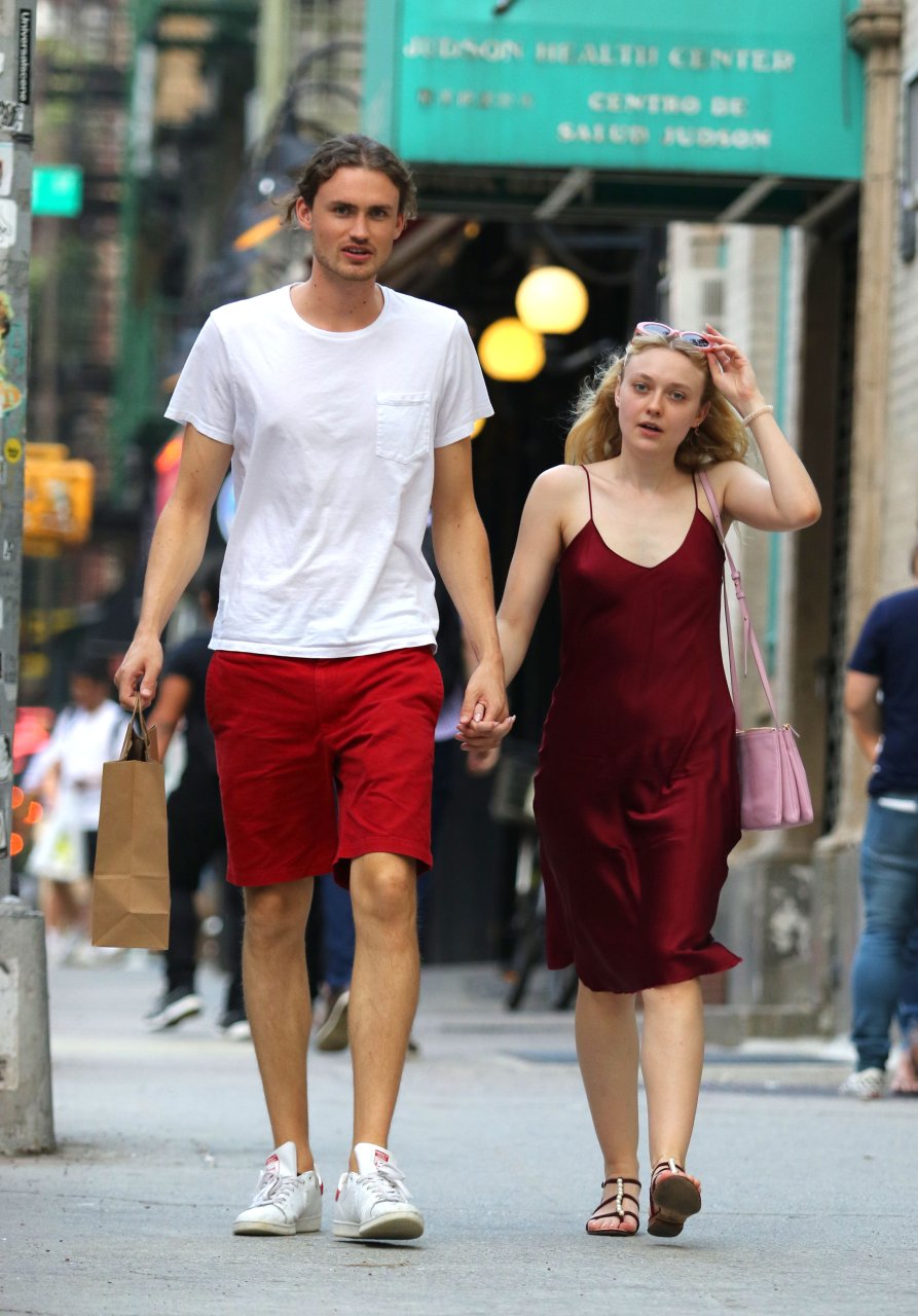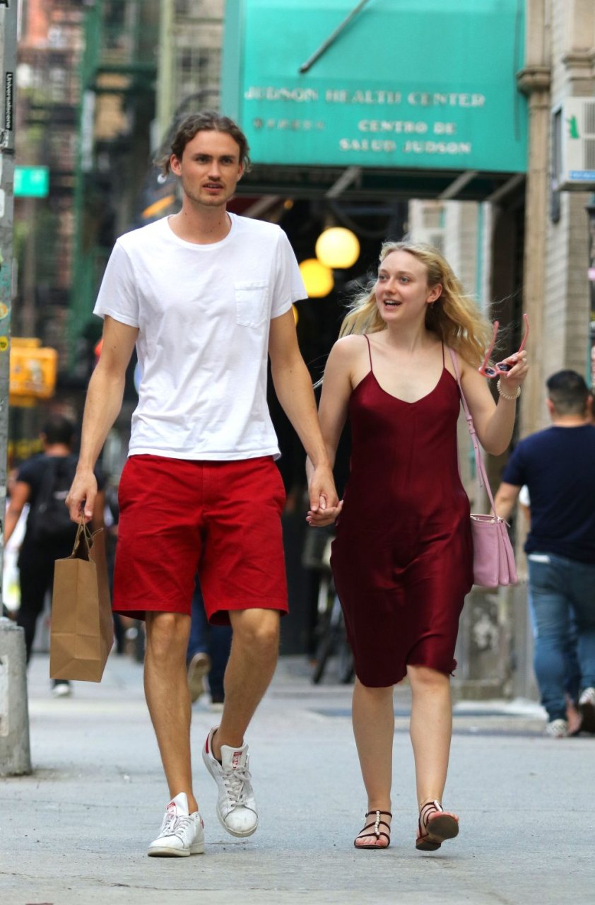 Актриса Дакота Фаннинг и её парень Генри Фрай держатся за руки во время романтической прогулки после ужина в районе Сохо в Манхэттене, 27.08.2018.