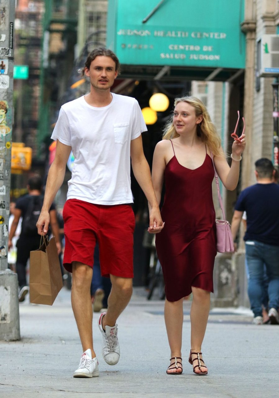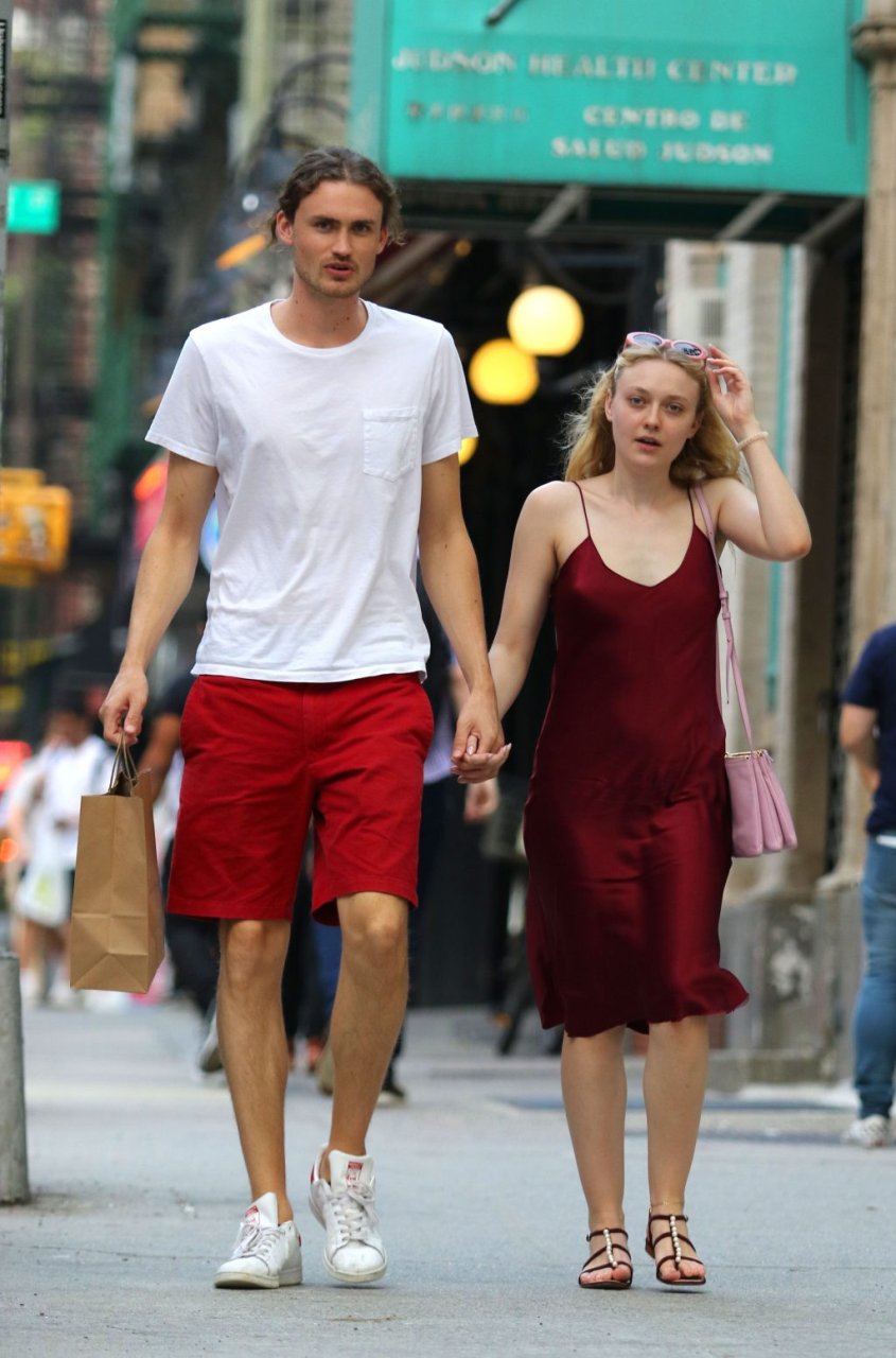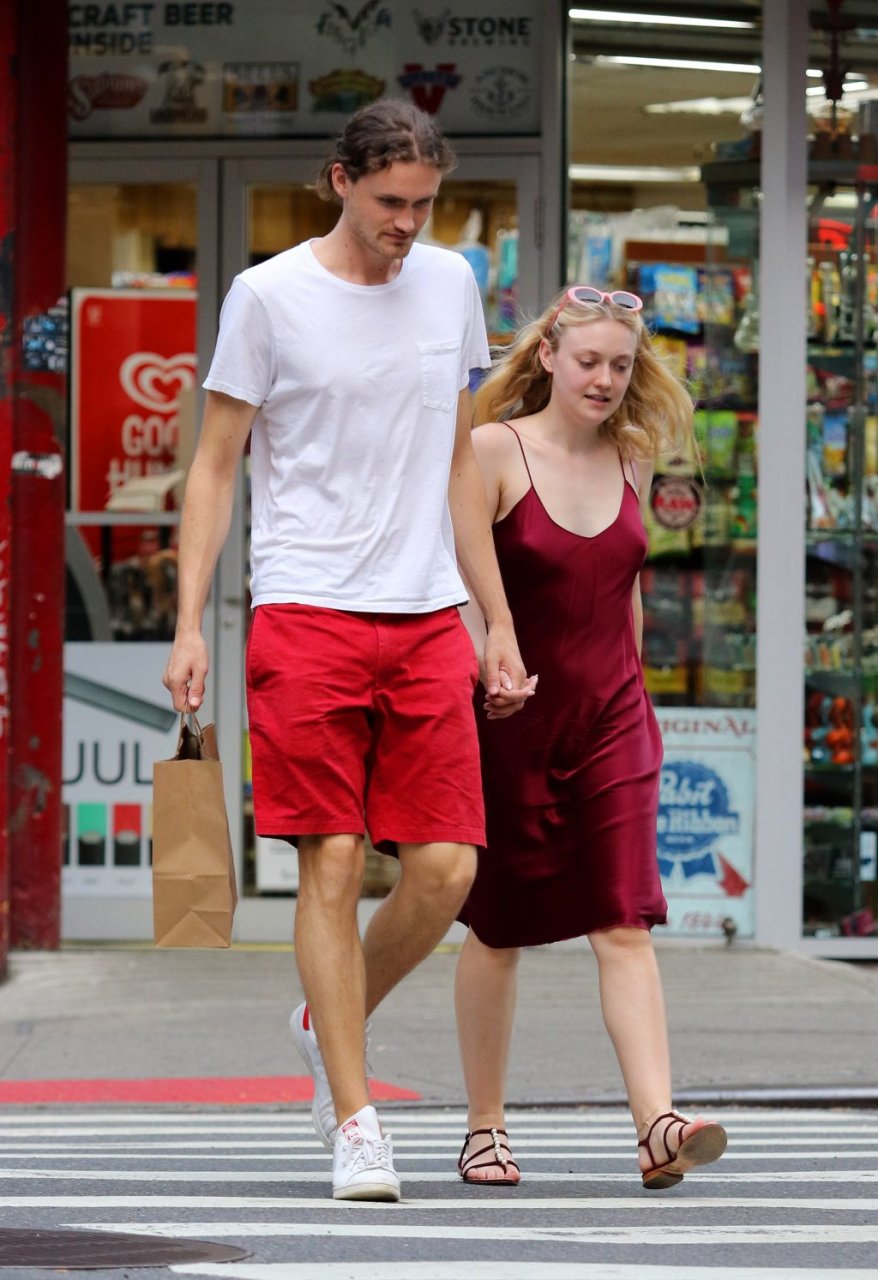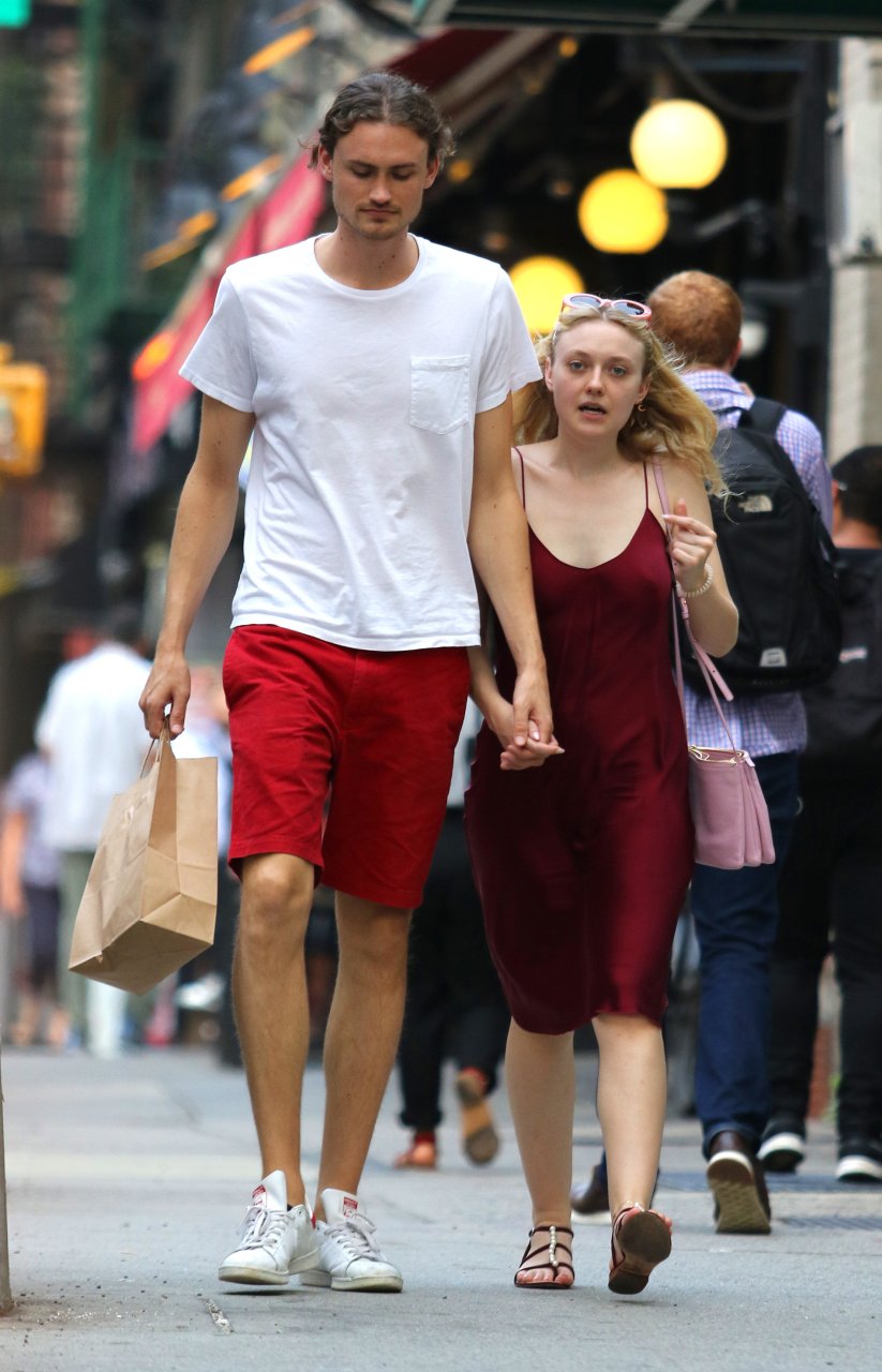 Актриса Дакота Фаннинг и её парень Генри Фрай держатся за руки во время романтической прогулки после ужина в районе Сохо в Манхэттене, 27.08.2018.